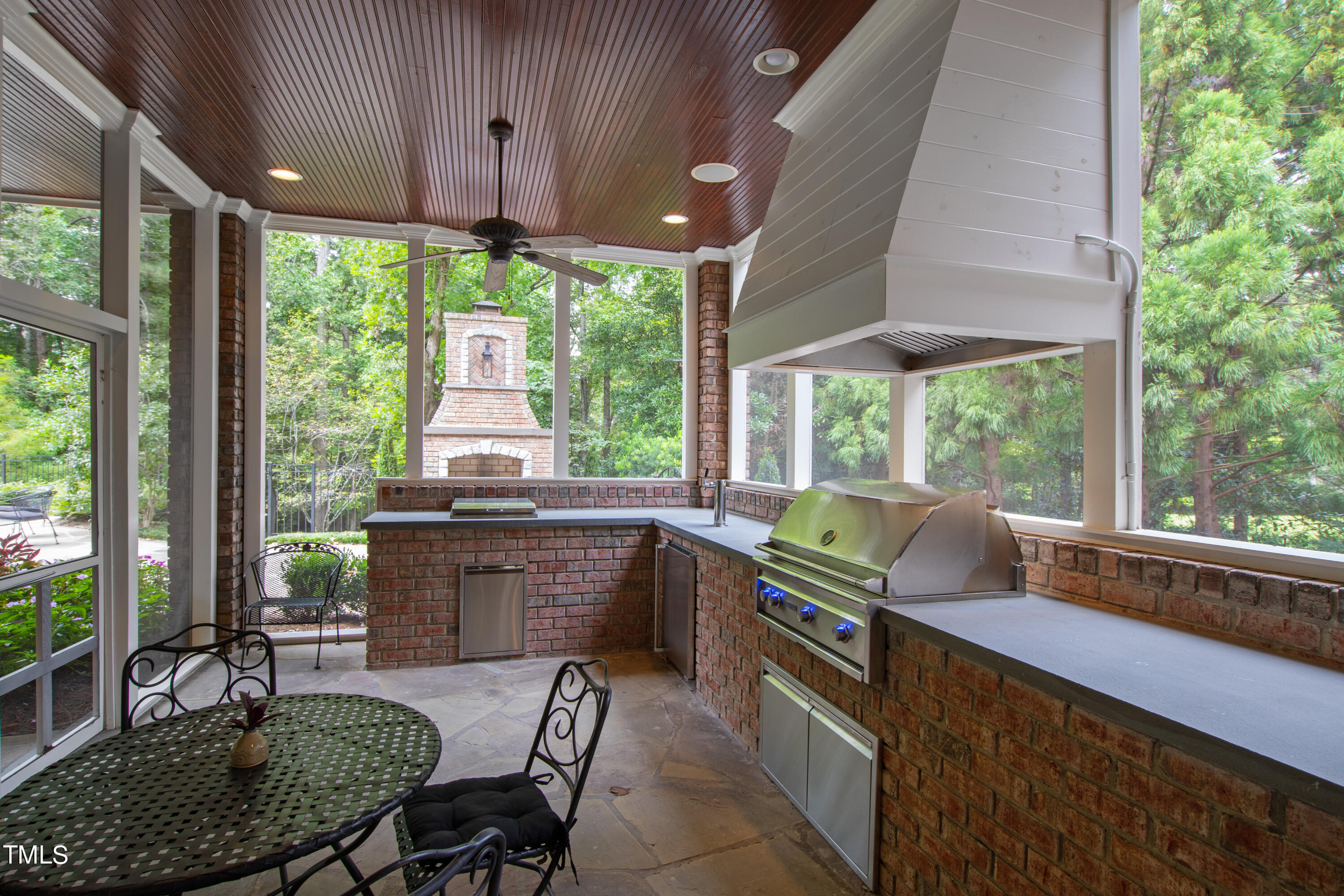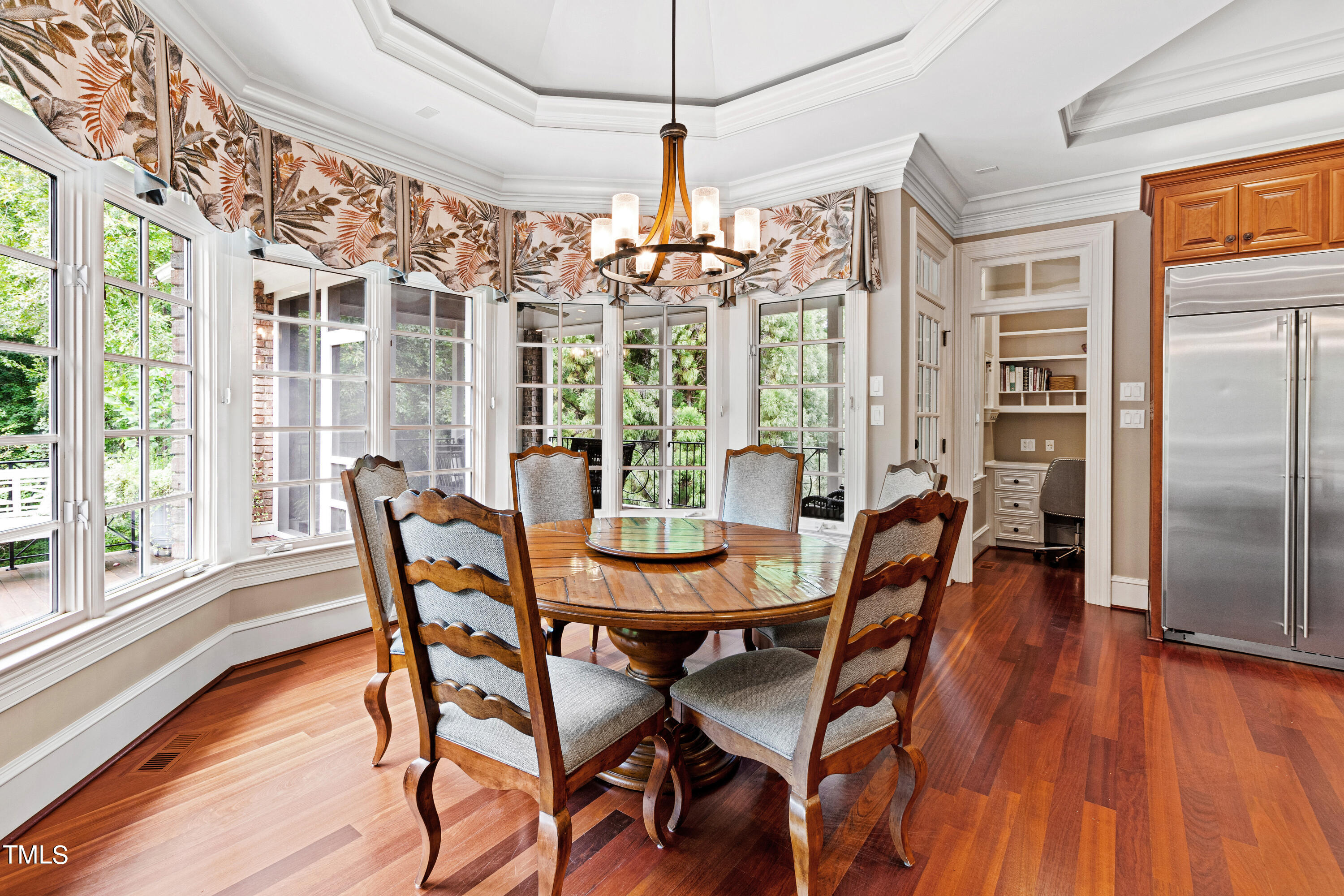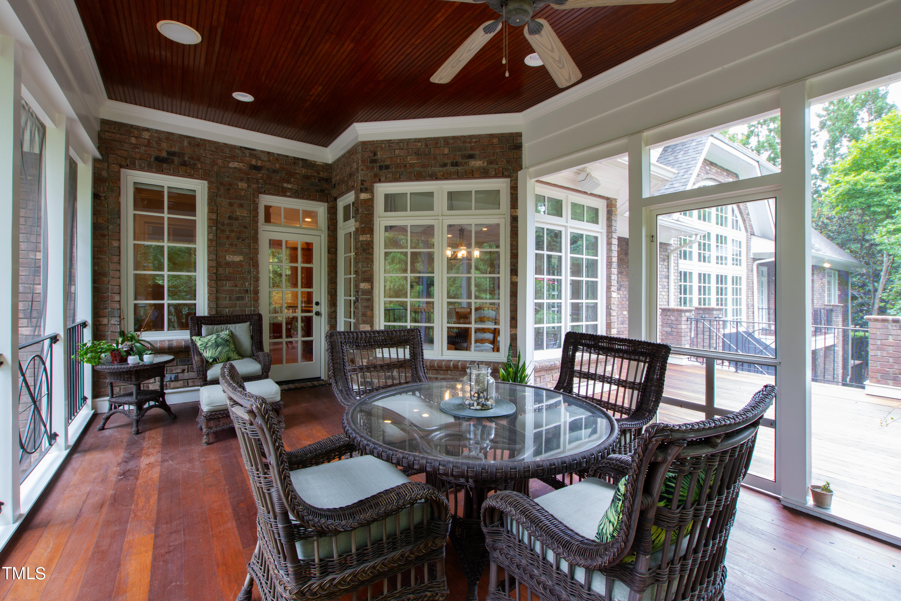 ceilinged dining bay lined with windows. Outdoor access to a screened porch and