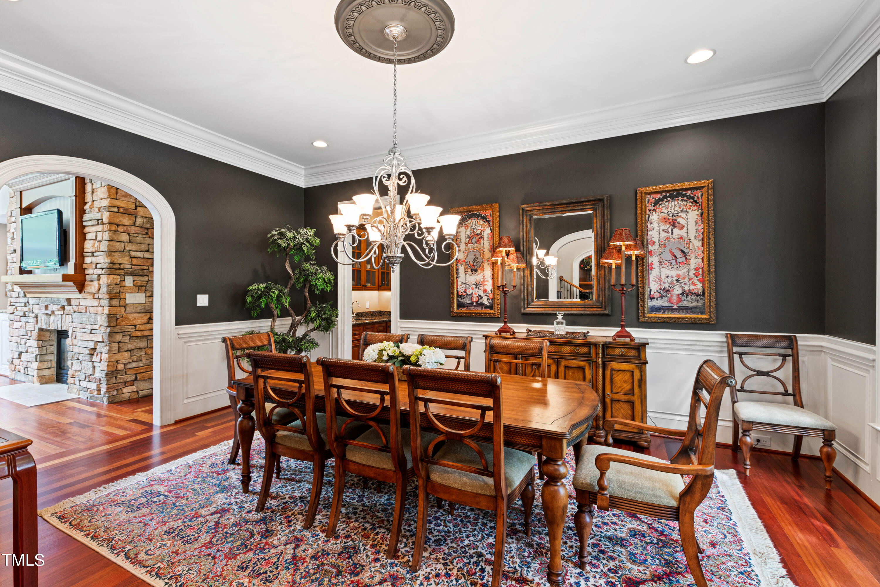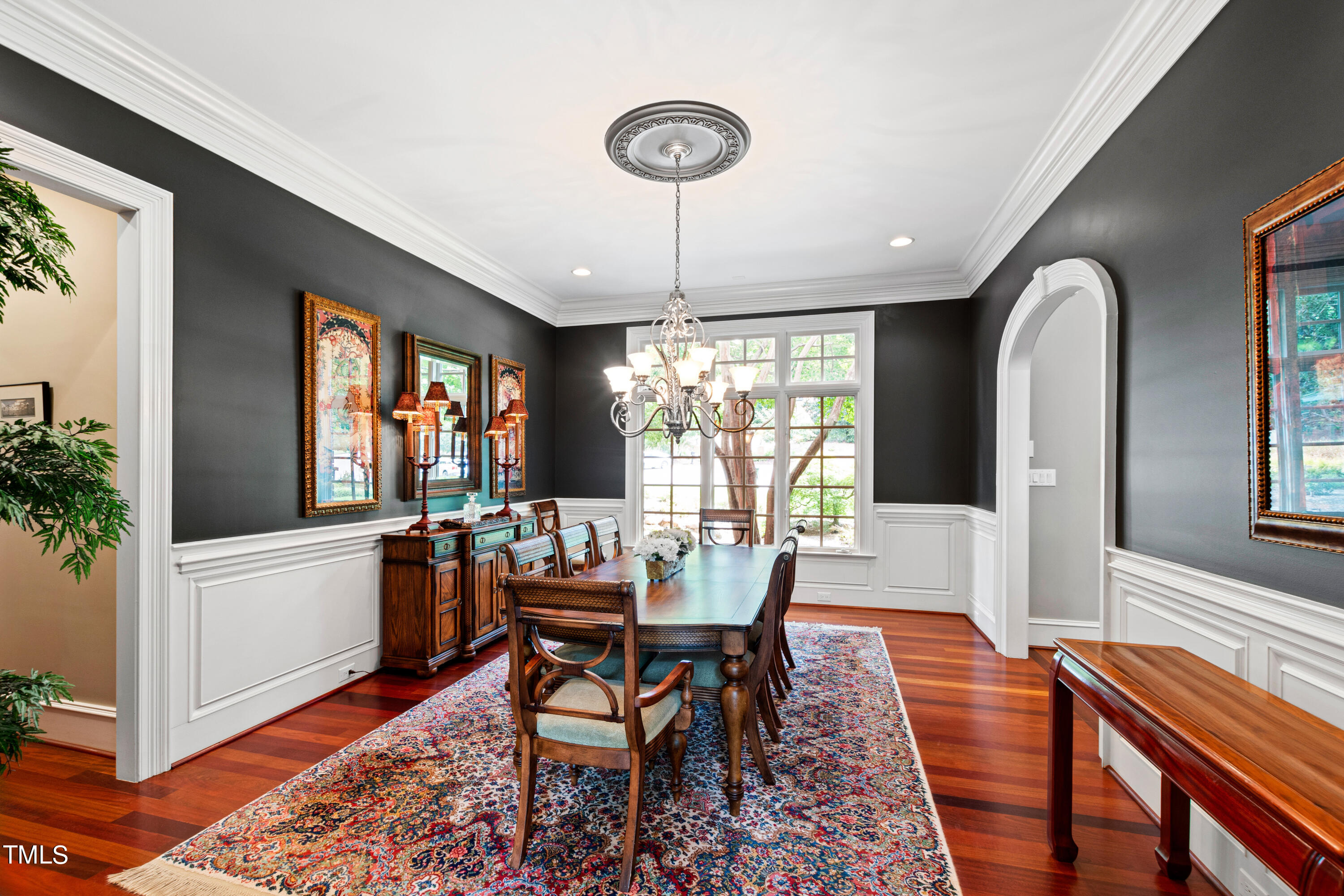 Off the foyer, the formal dining room awaits guests and memorable repasts with its