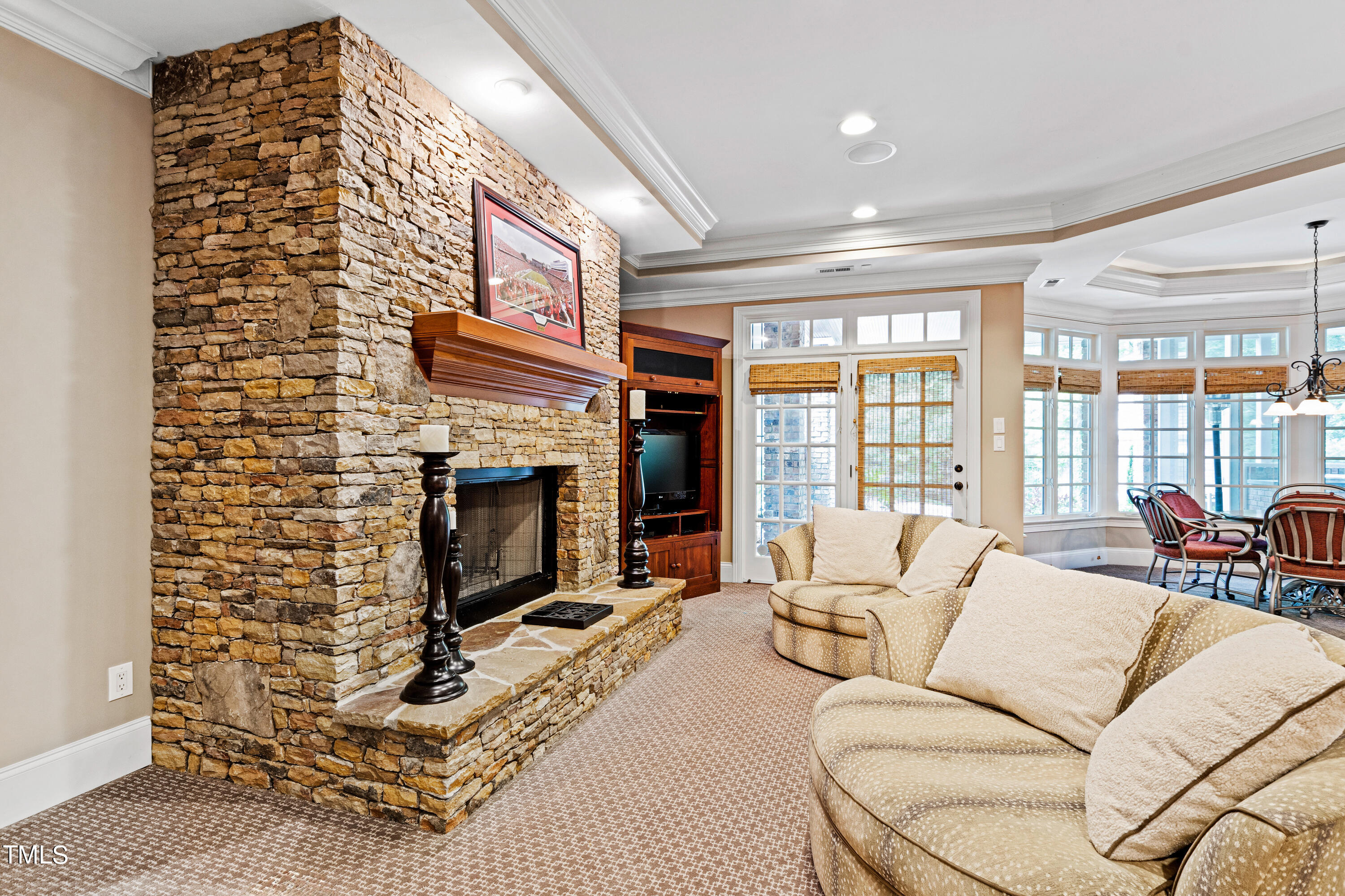 the stone fireplace or watching TV, to enjoying a snack or libation at the bar, or a glass