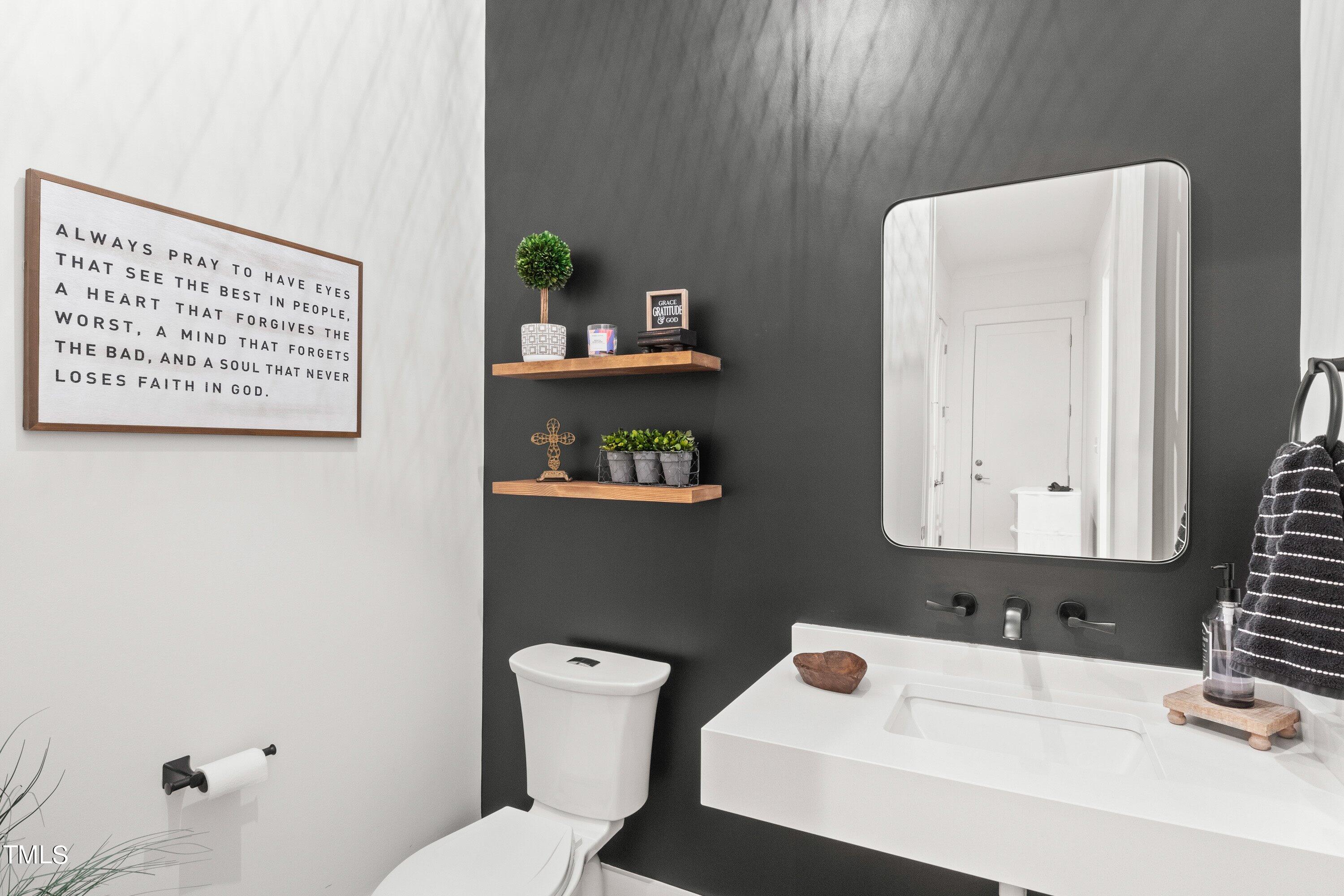 As you explore further, the main-level primary suite features a bedroom closet that surpasses expectations, along with a gracious guest room positioned at the front of the house for convenient access and enjoyable privacy.