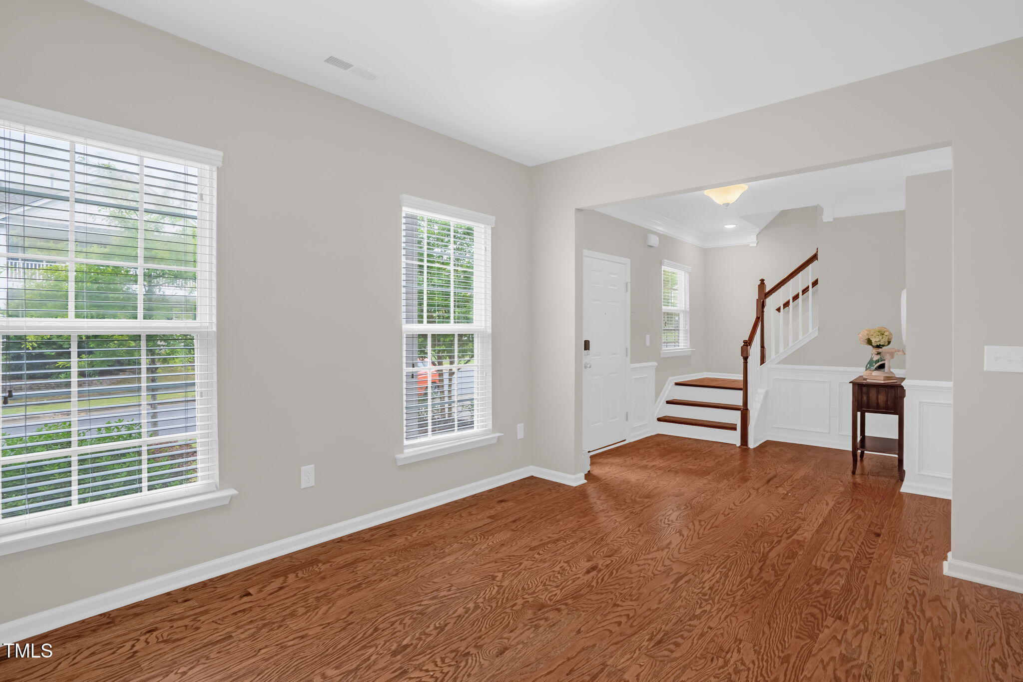 Upstairs, the luxurious owner's suite offers a tray ceiling, walk-in closet, a tiled shower, and a soaking tub. Three additional bedrooms include one with a private en-suite, plus a hall bathroom and a generous open loft with access to a private balcony--ideal for a secondary living area or home office. Enjoy outdoor living with a screened porch overlooking a wooded backyard. Additional highlights include pre-wired security camera system, home theater projector and speaker wiring, and safety film on all ground-level windows. Conveniently located near I-540, West Cary, Green Level High School, Beaver Creek Commons, and all the amenities Apex and Cary have to offer.