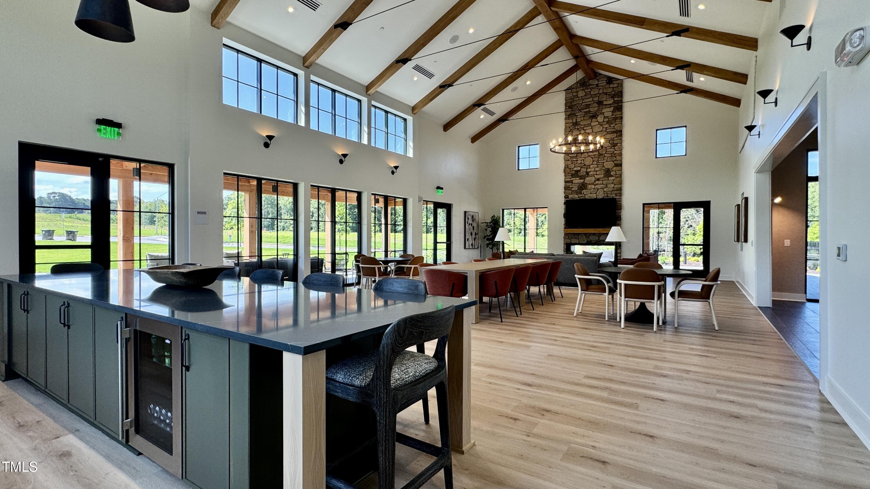 -This home also features interior and exterior fireplaces.