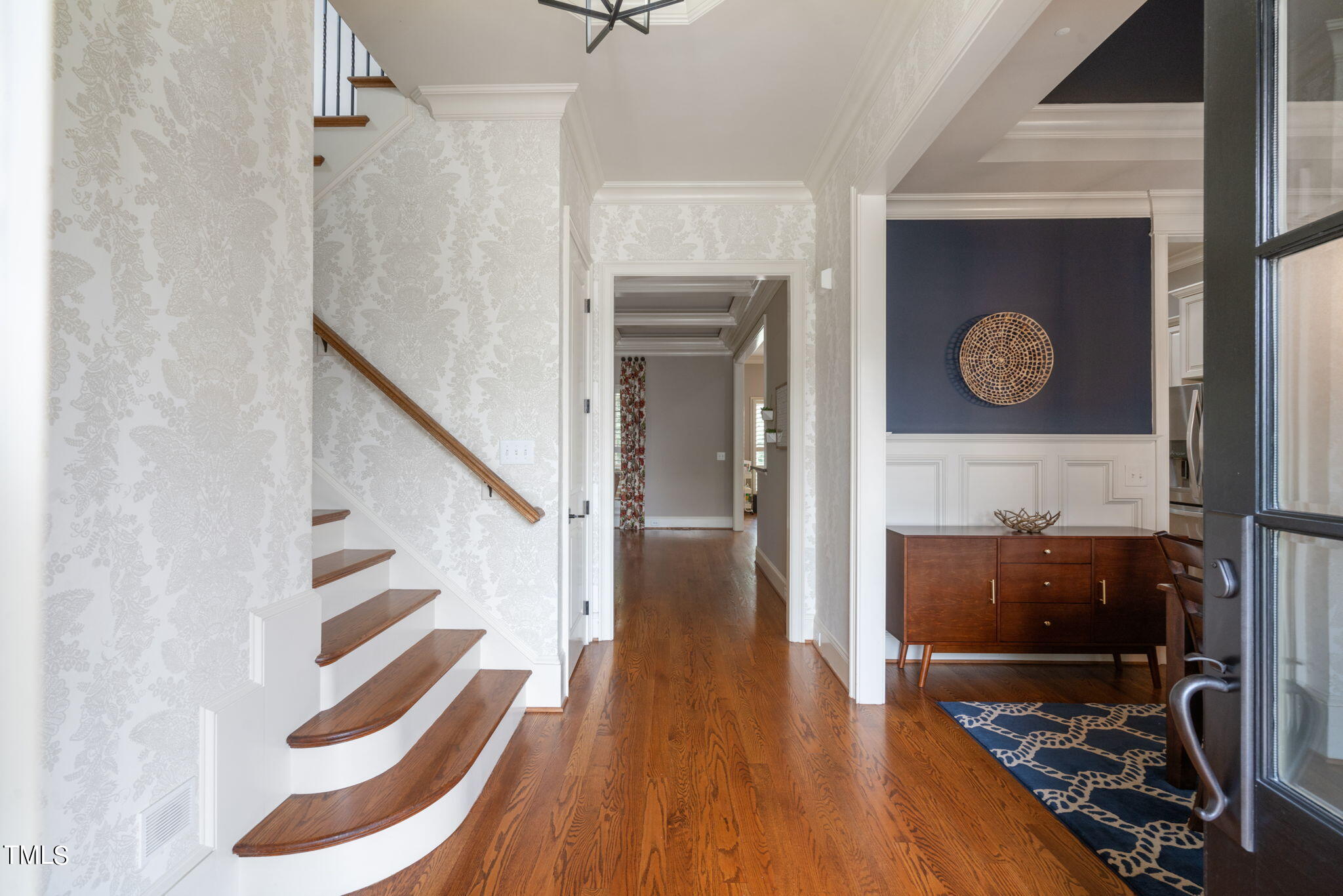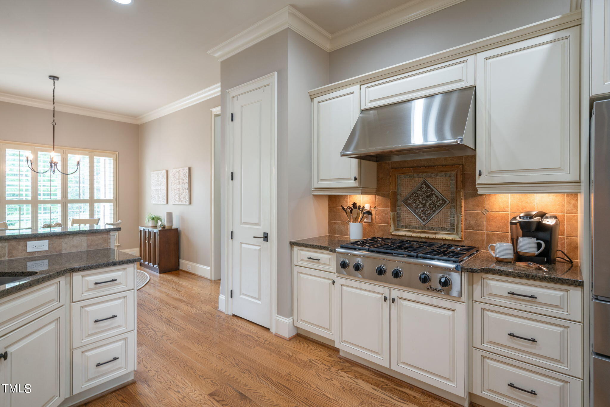 Main Floor Highlights: Gorgeous and real hardwoods throughout most of the main level. The primary bedroom is a serene retreat, featuring a spa-like bath with a large walk-in shower and a custom closet designed for ultimate organization. The heart of the home is the gourmet kitchen, boasting granite countertops a six burner gas stove and stainless steel appliances, perfect for culinary enthusiasts. The dining area is loaded with custom wood trim and a decorative tres ceiling while the family room has a stunning, coffered ceiling.