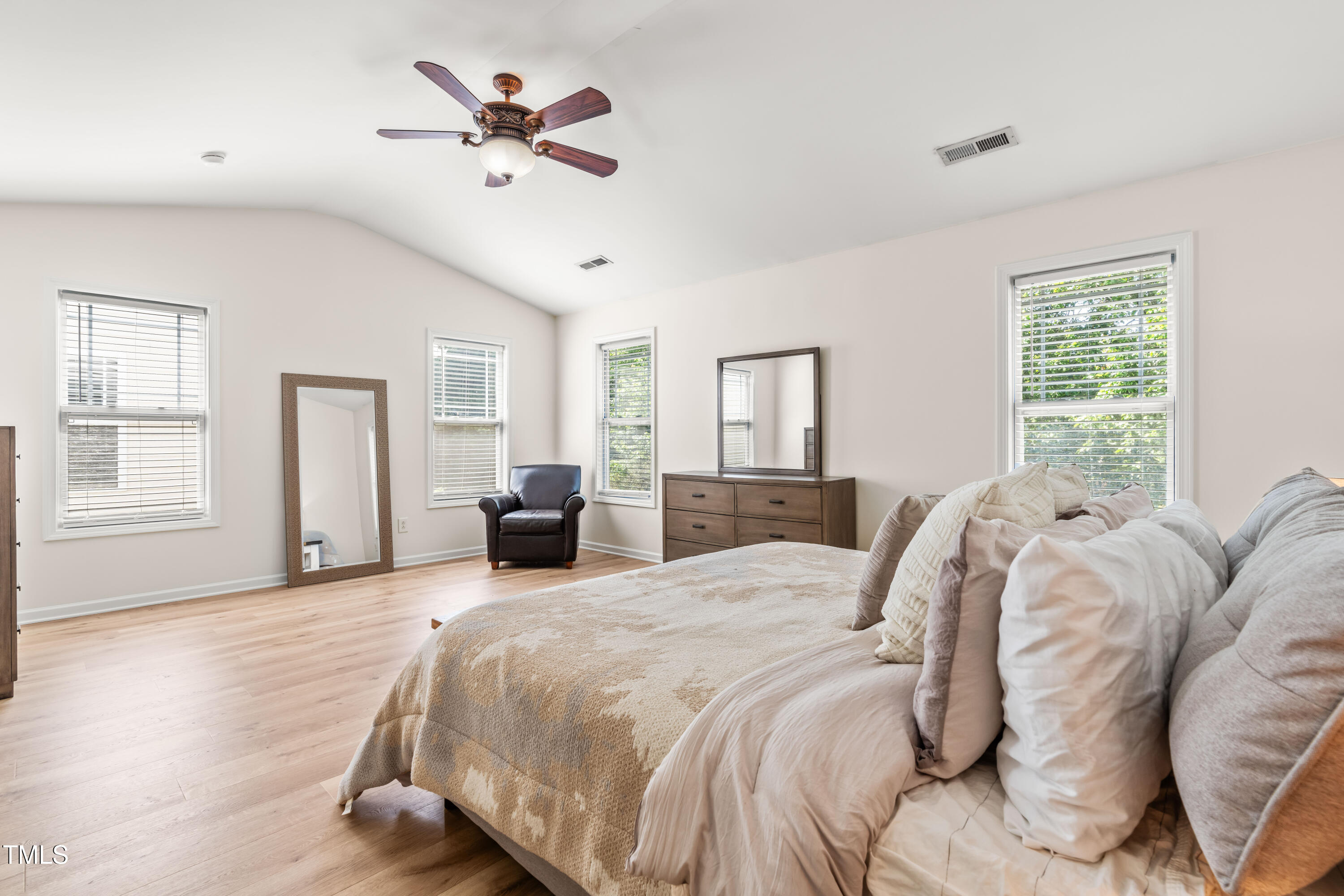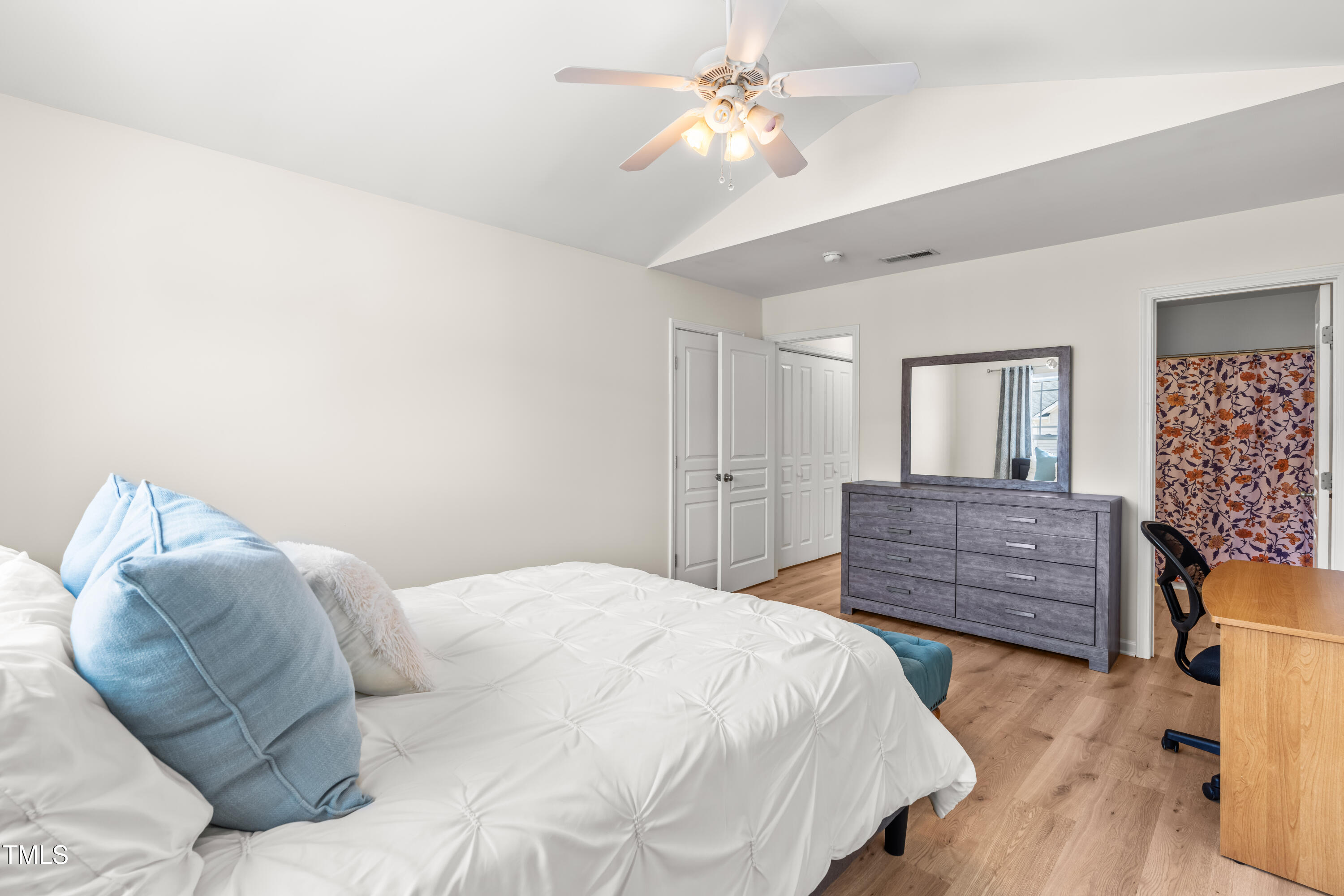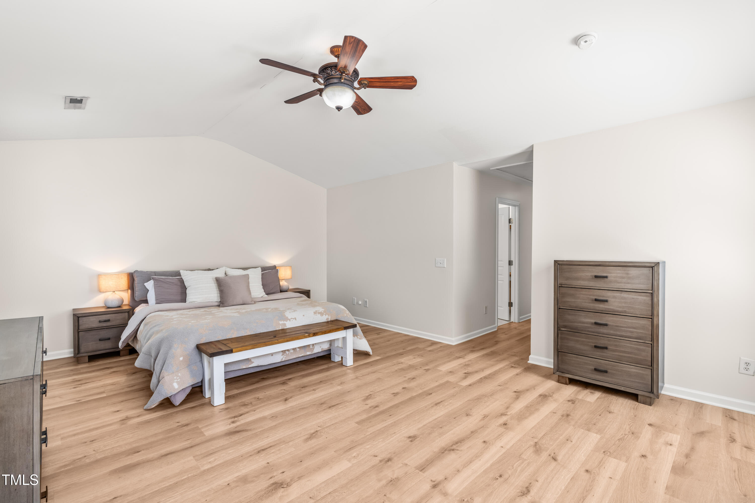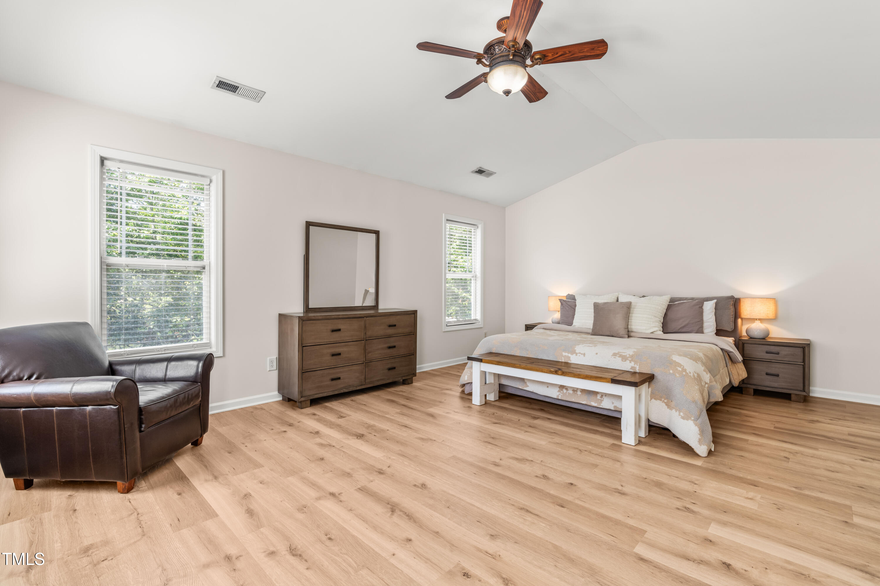 This beautifully updated end unit townhome offers comfort, style, and convenience just 4 miles from both Fenton and NC State. Step inside to find gorgeous hardwood floors throughout the main level, brand-new LVP flooring upstairs, and fresh water resistant carpet on the stairs. The completely renovated bathroom in the primary bedroom features a custom tile shower and vanity, adding a luxurious touch. Each spacious bedroom includes its own private bathroom - perfect for a roommate or guests. With its thoughtful upgrades and unbeatable location, this home checks all the boxes!