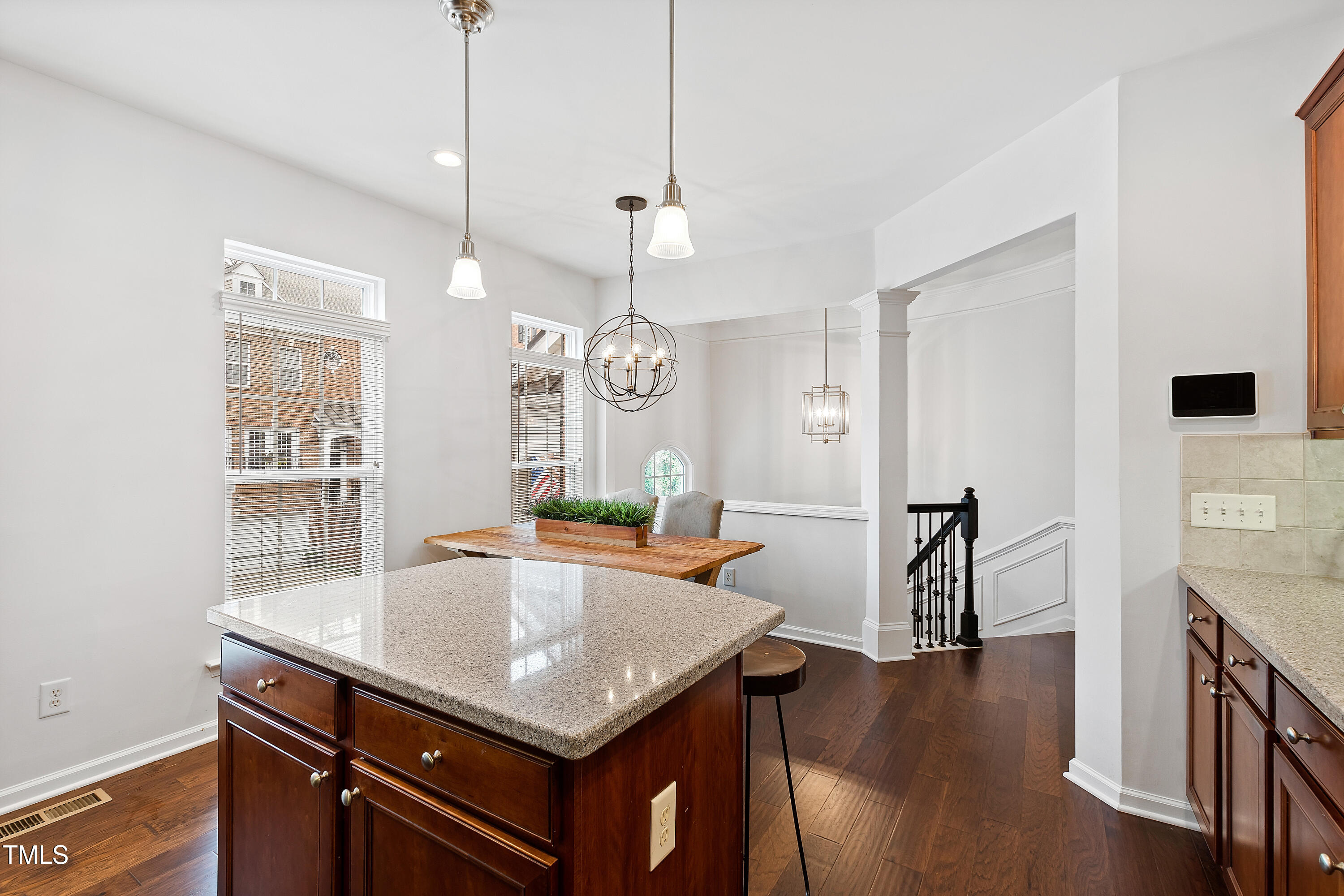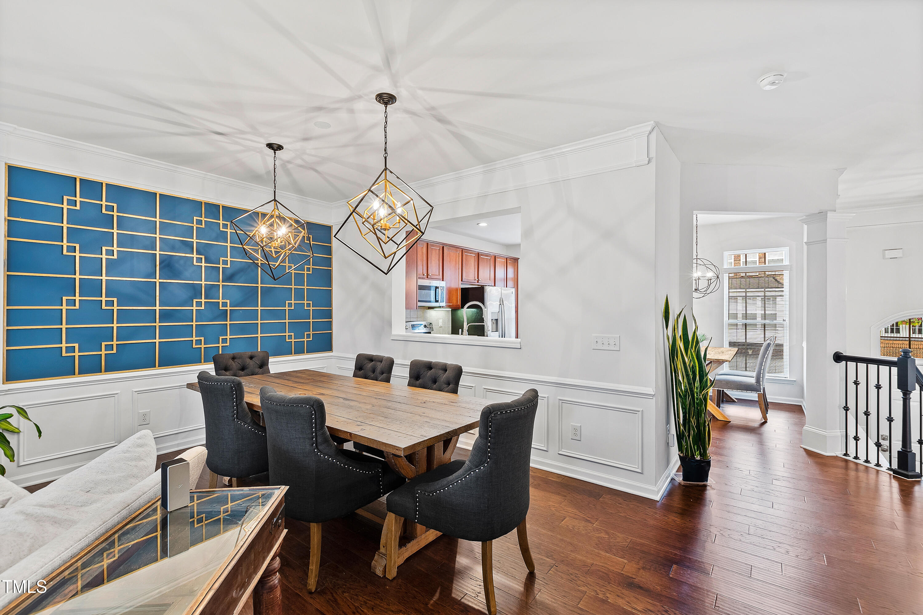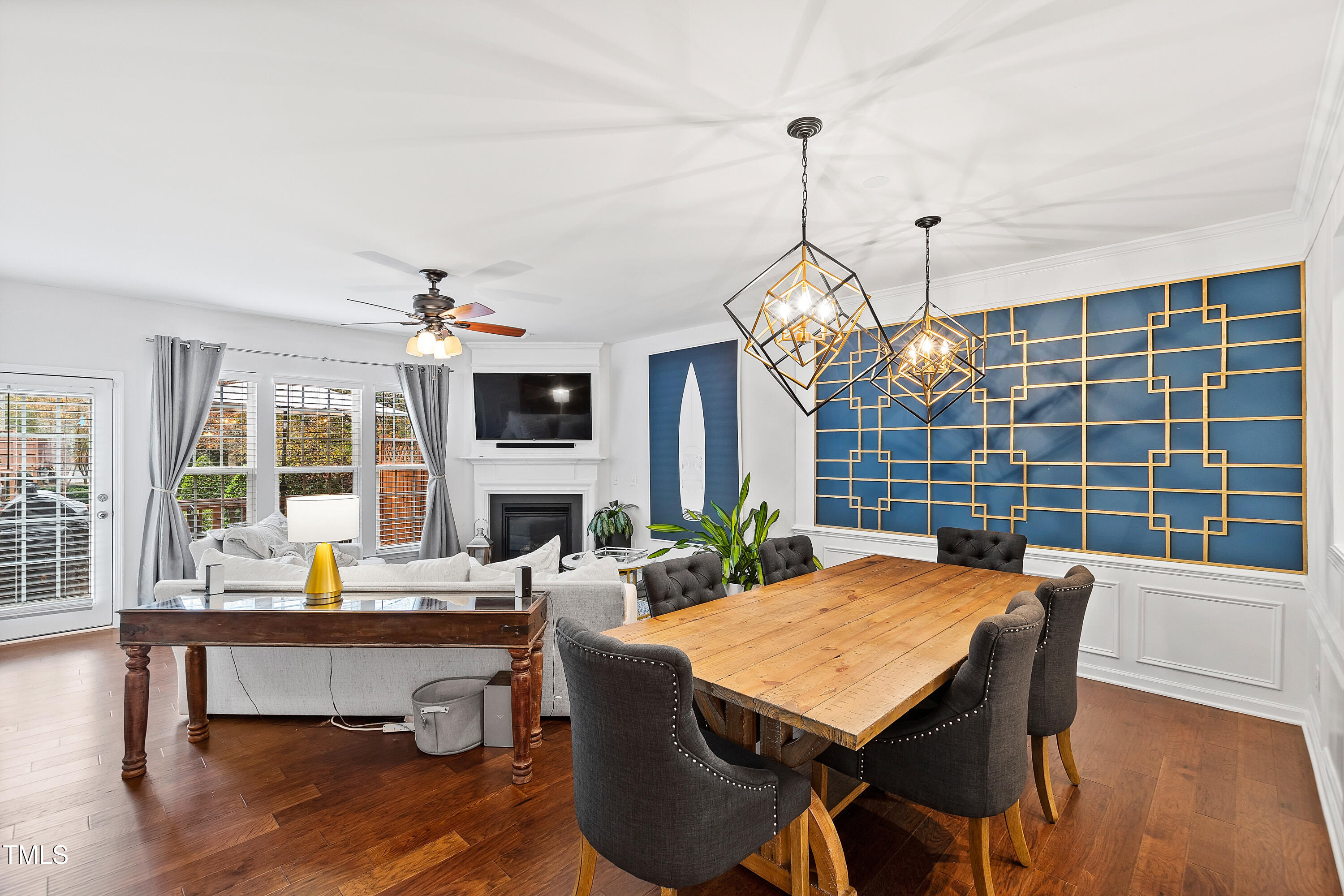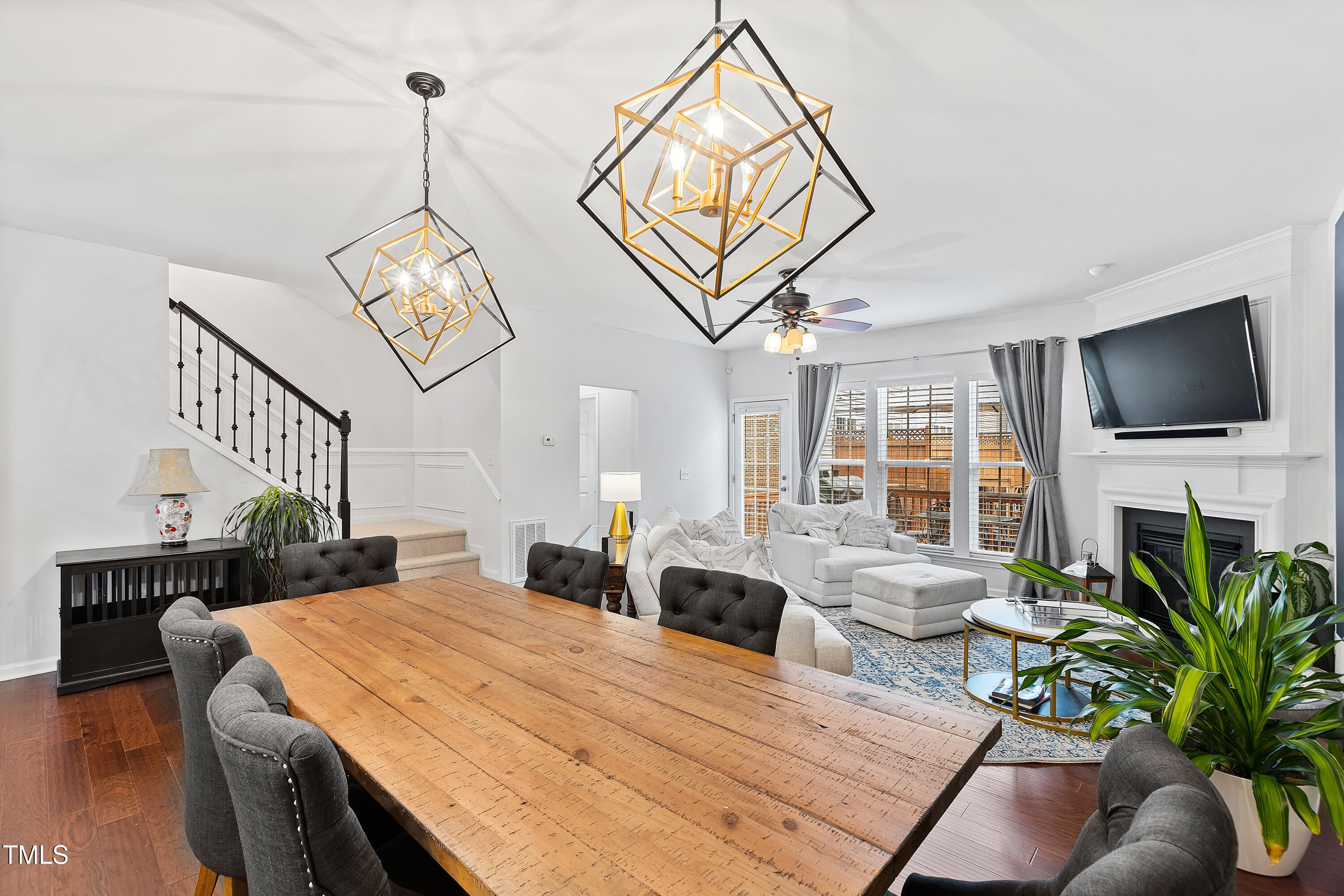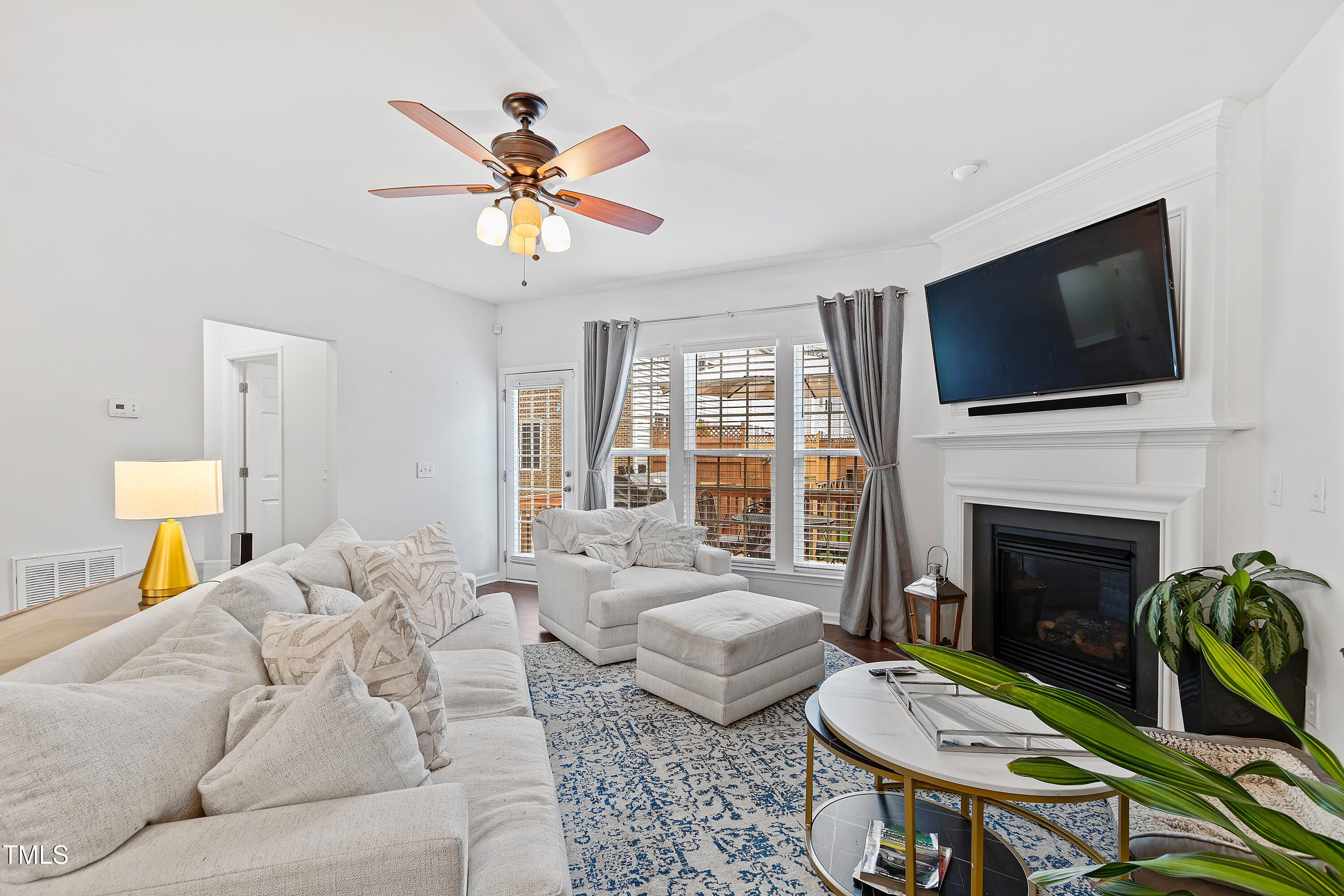 This stunning three-story townhome offers both elegance and practicality, nestled in a fantastic location. The unit backs up to a peaceful neighborhood common area, giving the backyard a sense of extra space and privacy. With a charming brick front and a two-car garage, the home makes a great first impression. Inside, you'll find an entry foyer that leads into a bright, open living area with abundant natural light and gleaming hardwood floors.