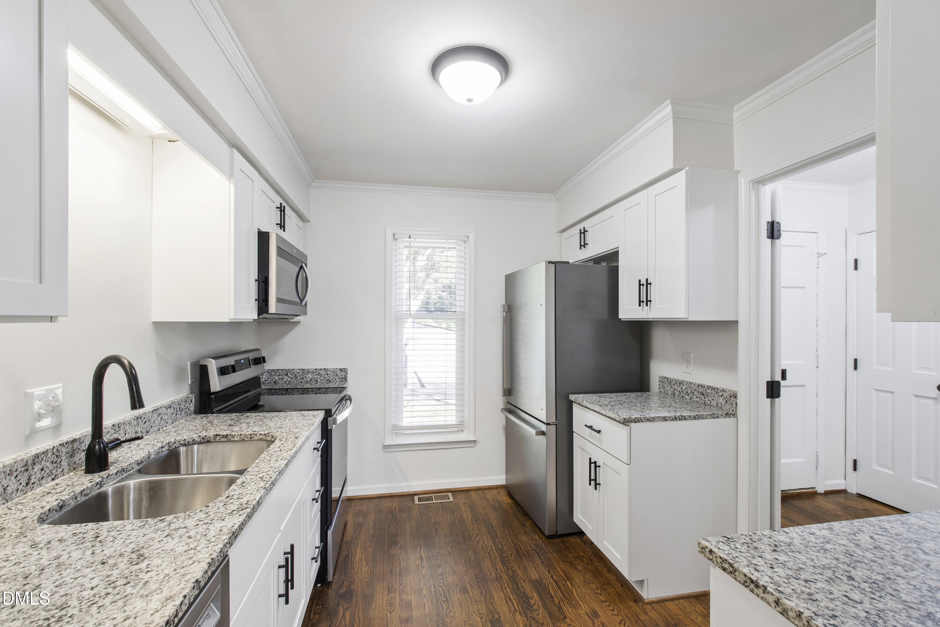 Tucked away in a quiet enclave within the desirable Wayland Heights subdivision, this charming 2-bedroom, 1.5-bath condo offers the perfect balance of privacy and convenience. With 1,068 square feet of thoughtfully designed space, you'll enjoy comfortable living in a serene setting--just minutes from the city's most vibrant destinations, including The Village District, North Hills, Five Points, Lenovo Center, major universities, top hospitals, shopping, dining, and entertainment. The home features a kitchen outfitted with stainless steel appliances and granite countertops, ideal for preparing meals with ease. Upstairs, you will find two spacious bedrooms and a full bath that includes a modern walk-in shower, while a convenient half bath adds extra functionality for guests. Step outside to a private back porch, perfect for morning coffee or evening relaxation. Recent updates offer peace of mind, including a new water heater (October 2023), garbage disposal (June 2025), and HVAC ducting (September 2025). In February 2025, the HOA also inspected and repaired the roof to extend its life. Ownership is made effortless with a well-managed HOA that covers the roof, lawn care, exterior maintenance, parking lot, and all communal areas. Each unit includes one assigned parking space, plus ample guest and overflow parking available. Whether you're a first-time buyer, downsizer, or investor, this home offers low-maintenance living in one of the most connected and coveted locations in the area.