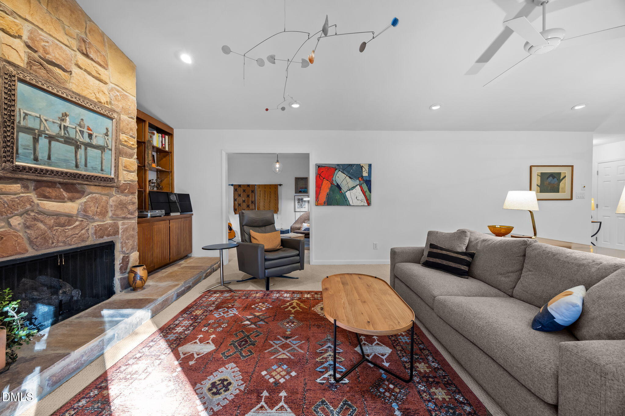 Located in Raleigh's Rue Sans Famille neighborhood, this two bedroom, two bath home offers comfort and convenience in a quiet cul-de-sac setting. The spacious living room features a fireplace and built-in bookshelves, creating a warm and inviting space to relax or entertain. Both bedrooms are generously sized and include walk-in closets. Enjoy side-by-side parking and a private porch that serves as a quiet haven. The location provides easy access to the NC Museum of Art, Rex Hospital, Crabtree Valley Mall, and Lake Boone Shopping Center.