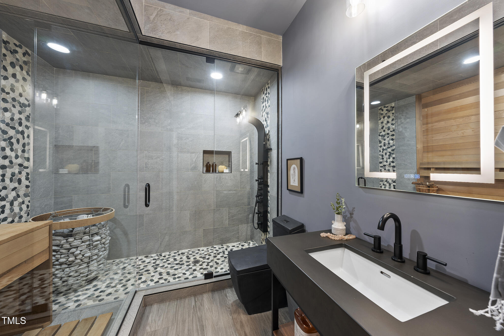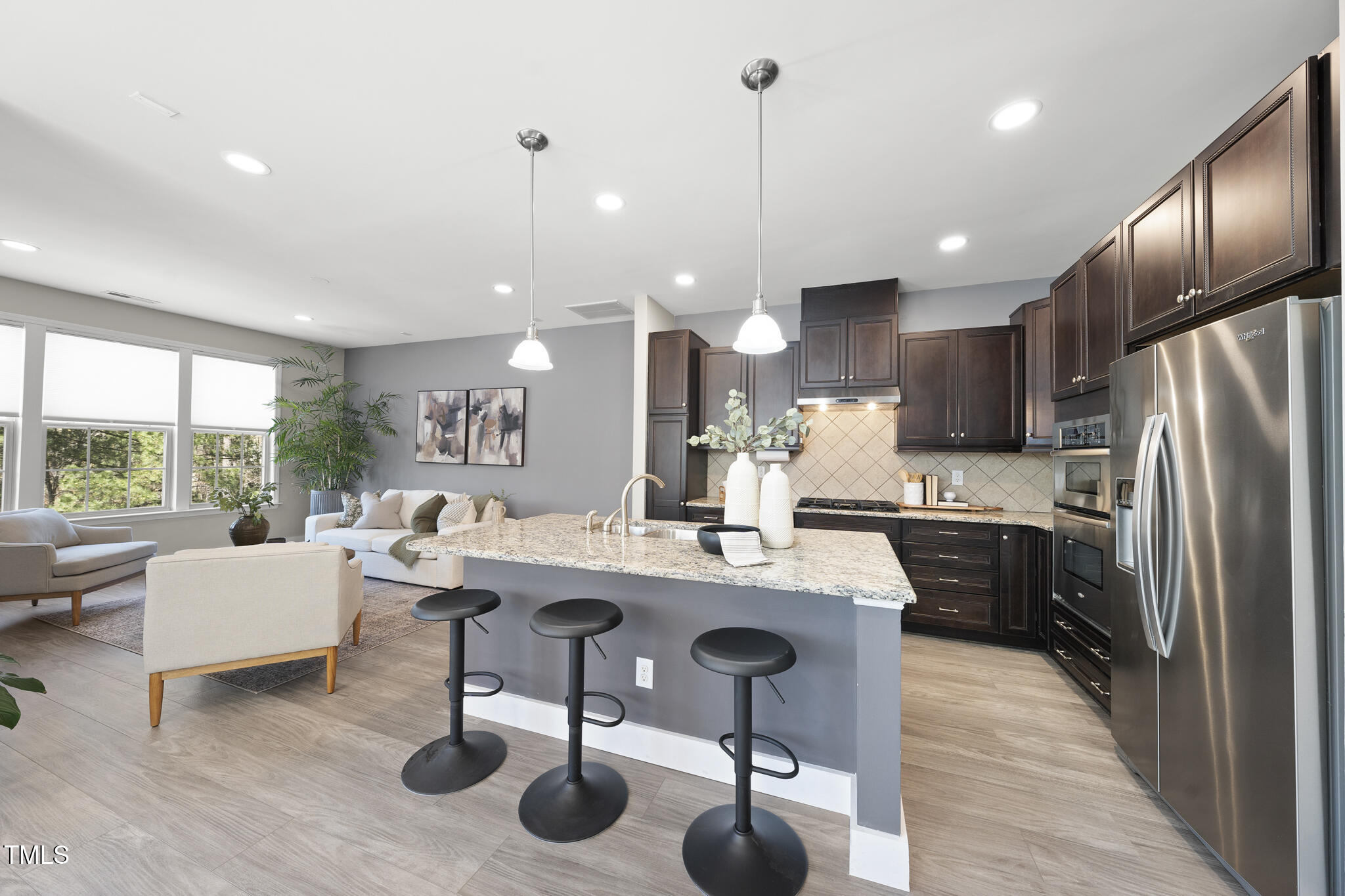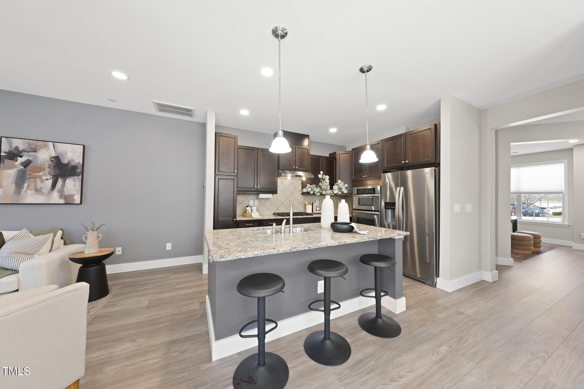Spectacular end-unit townhome with an elevator in the sought-after Enclave at Stone Creek Village. Assumable VA loan with a great rate! Steps from grocery stores, pharmacies, shopping, dining, medical facilities, banks, and other essential services, this home also offers direct access to a Town of Cary Greenway right behind it. With over 2,300 square feet, this 3-story townhouse features 3 bedrooms, 3.5 baths, and a 2-car garage. The home is move-in ready with updates to include custom built-ins, new carpeting and a gorgeous bath with custom sauna in the lower-level bathroom. The light-filled main level boasts engineered hardwoods, office, gourmet kitchen with a large island, granite tops, stainless appliances, gas cooktop with vented hood, and a tile backsplash, family room with fireplace and a screened porch. Primary suite with trey ceilings and en-suite bath.