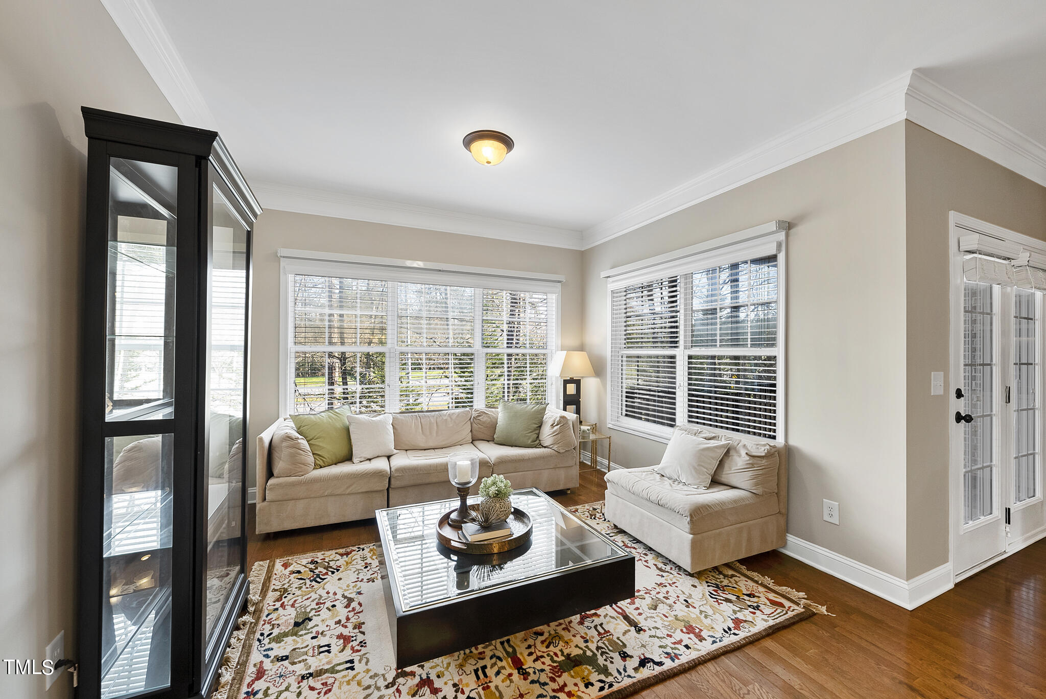 Beautiful, exceptionally well-maintained all-brick townhome in the heart of Northwest Cary. This home boasts 3 levels, 2 screened porches, 2-car garage, 4 bedrooms, 3.5 baths and almost 3400 square feet. Located close to SAS, the Weston Parkway corridor, shopping and I-40. The ground level features a doored-off suite with rec room, bedroom, full bath and access to the lower-level screened porch. On the main level you'll find hardwood floors throughout, a spacious kitchen with stainless-steel appliances, granite countertops and a tile backsplash, dining room with a tray ceiling and picture moldings, a family room with fireplace, breakfast nook, sitting area and access to the second screened porch. The upper level boasts a spacious primary suite with sitting room with French doors opening to an en-suite bath with garden tub, separate shower and large walk-in closet, as well as two additional bedrooms, a full bath and laundry room. Nine-foot ceilings, blinds throughout, garage storage room, community pool.