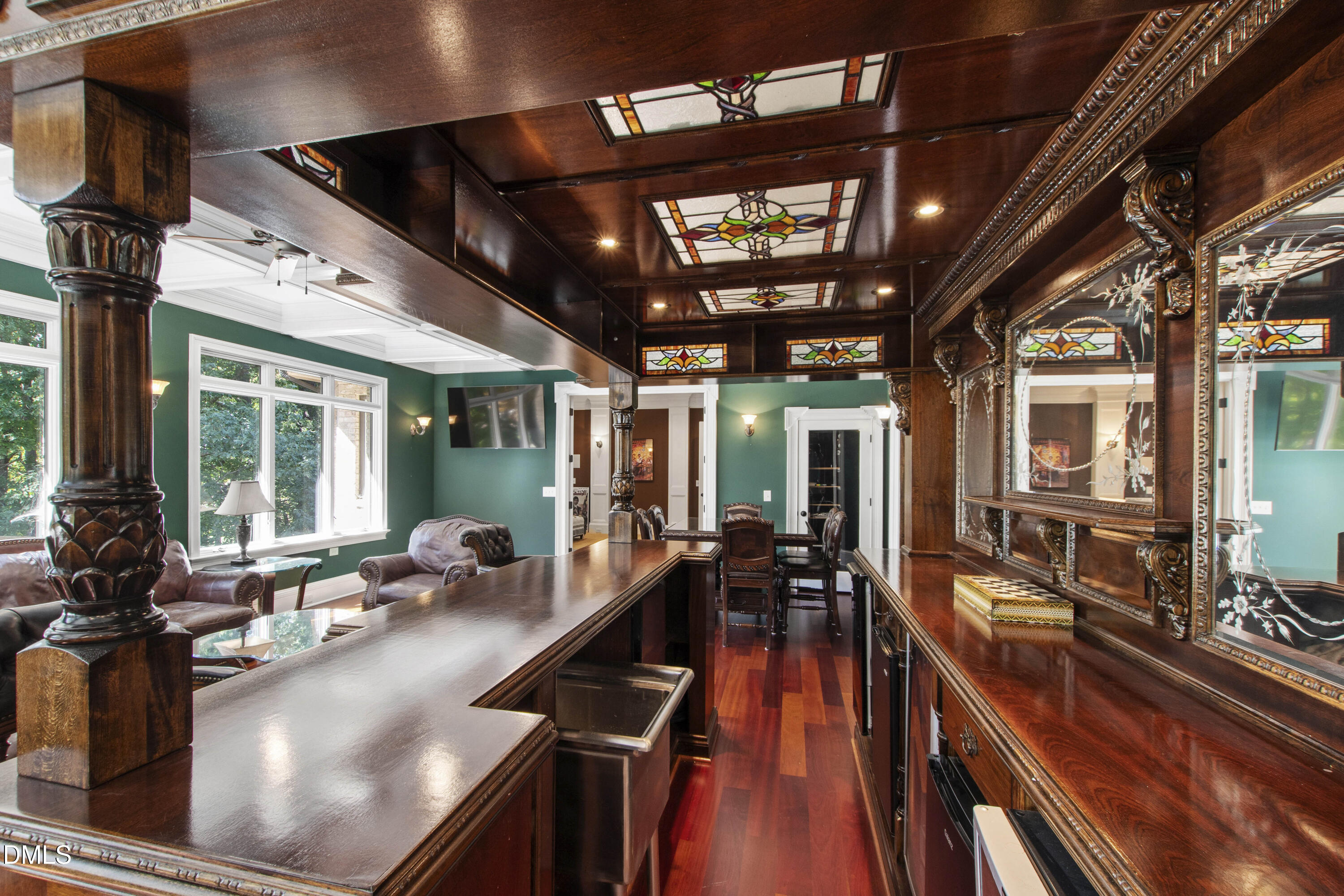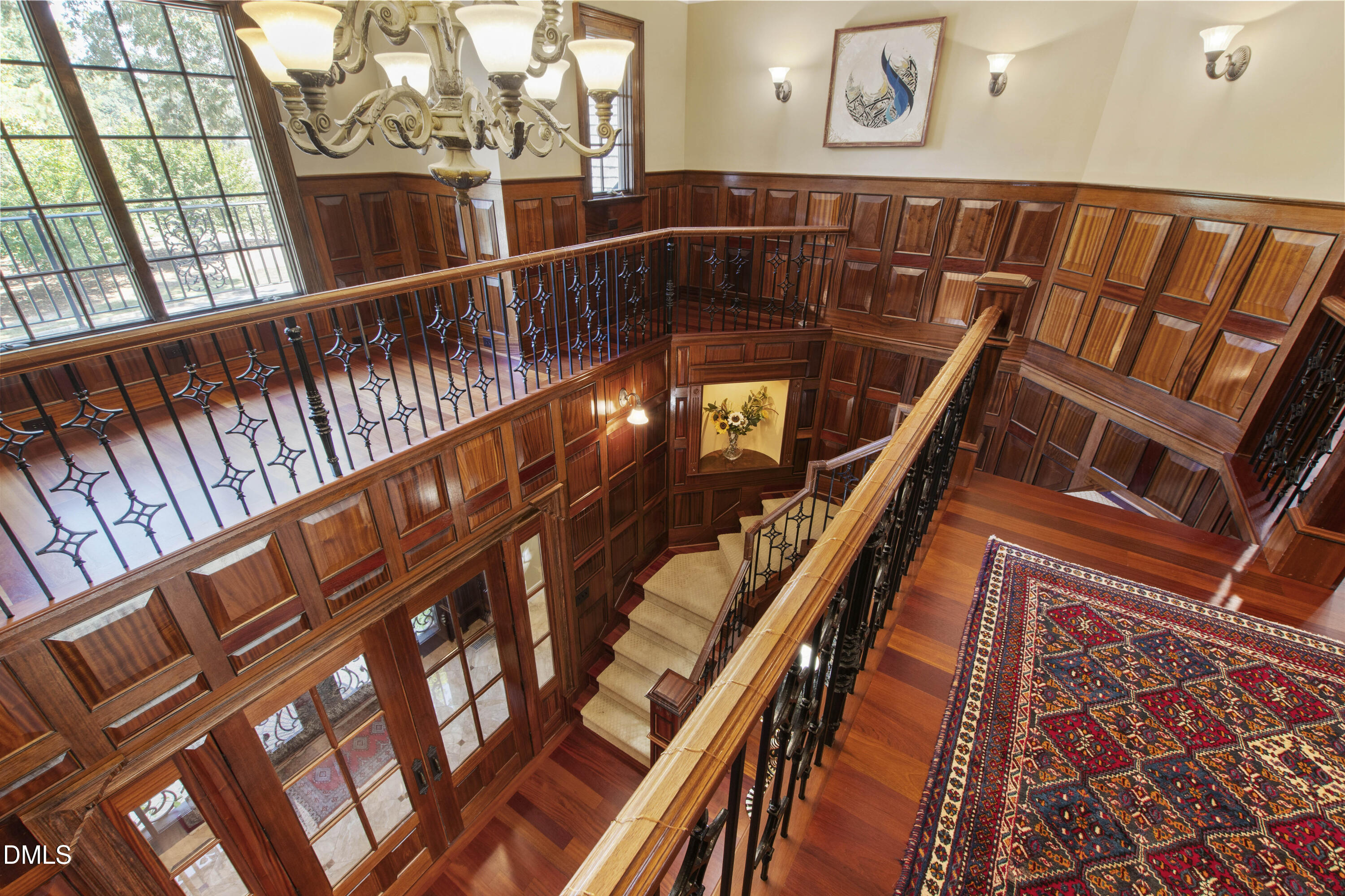 From the moment you arrive, architectural artistry is evident. The custom handcrafted steel front doors open to a dramatic foyer with African mahogany paneling, custom mahogany railings, and cast-iron pickets that were all crafted on-site. Handmade stained glass from Asheville, carved Indiana limestone sourced from the same quarry as the Biltmore Estate, and hand-finished details recall the craftsmanship of the Gilded Age. Every elevation of the home has been intentionally designed, offering beauty from all angles. This estate is truly 1 of 1.