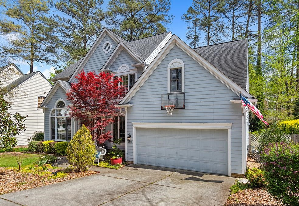 This striking 4-bedroom home with a bonus room is nestled on a quiet tree-lined street in the desirable MacArthur Park. The first floor has high vaulted ceilings filling the home with natural light. The open floor plan includes a family room, living room, eat-in kitchen, breakfast area and separate dining room. First floor primary bedroom suite includes a spacious primary bath and walk-in closet. Conveniently located near retail, parks, and other amenities, within walking distance to nearby schools, Bond Park, bike trails and with easy access to Research Triangle Park and Raleigh-Durham International Airport. Private, fenced backyard includes two spacious decks and a separate fire pit area.