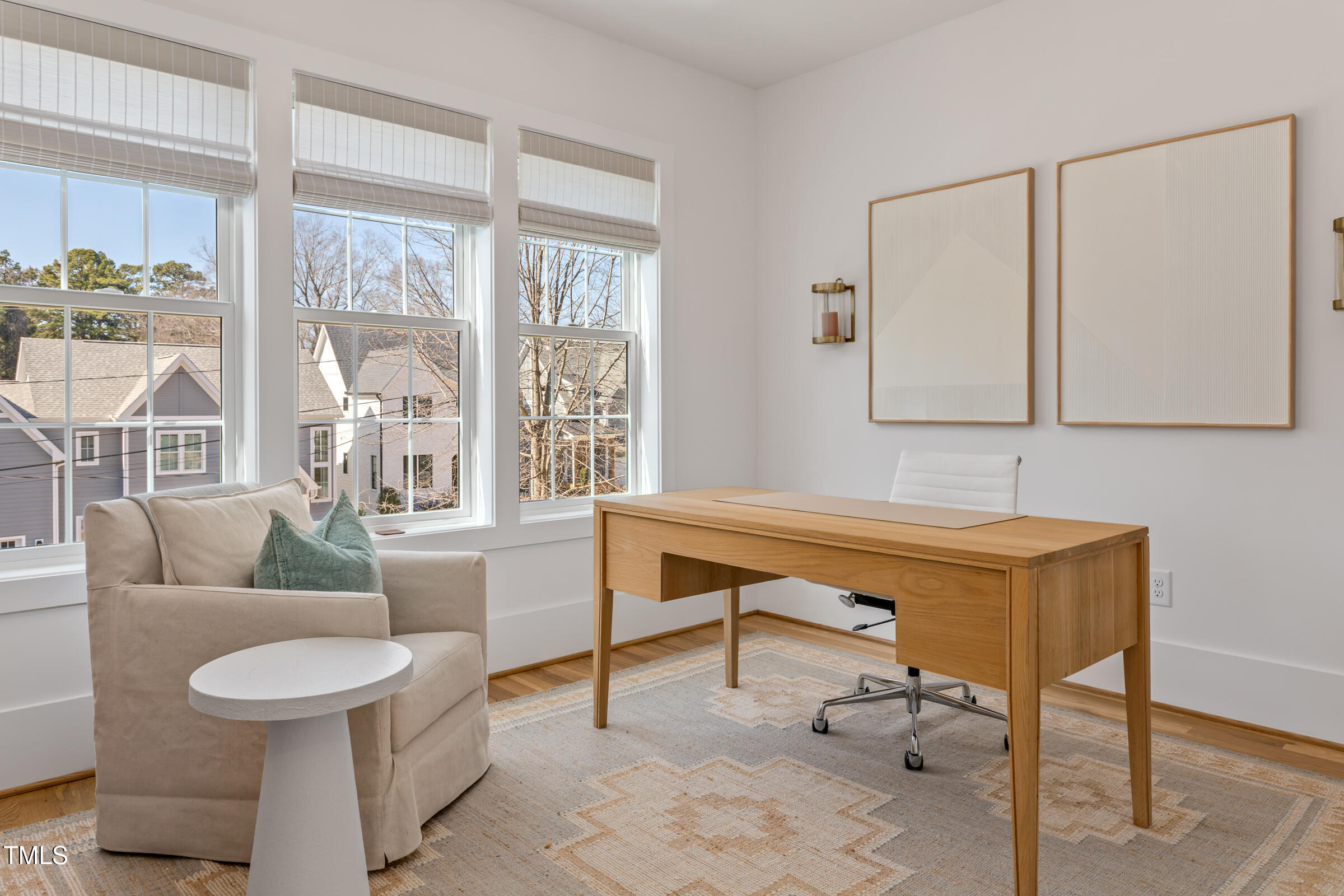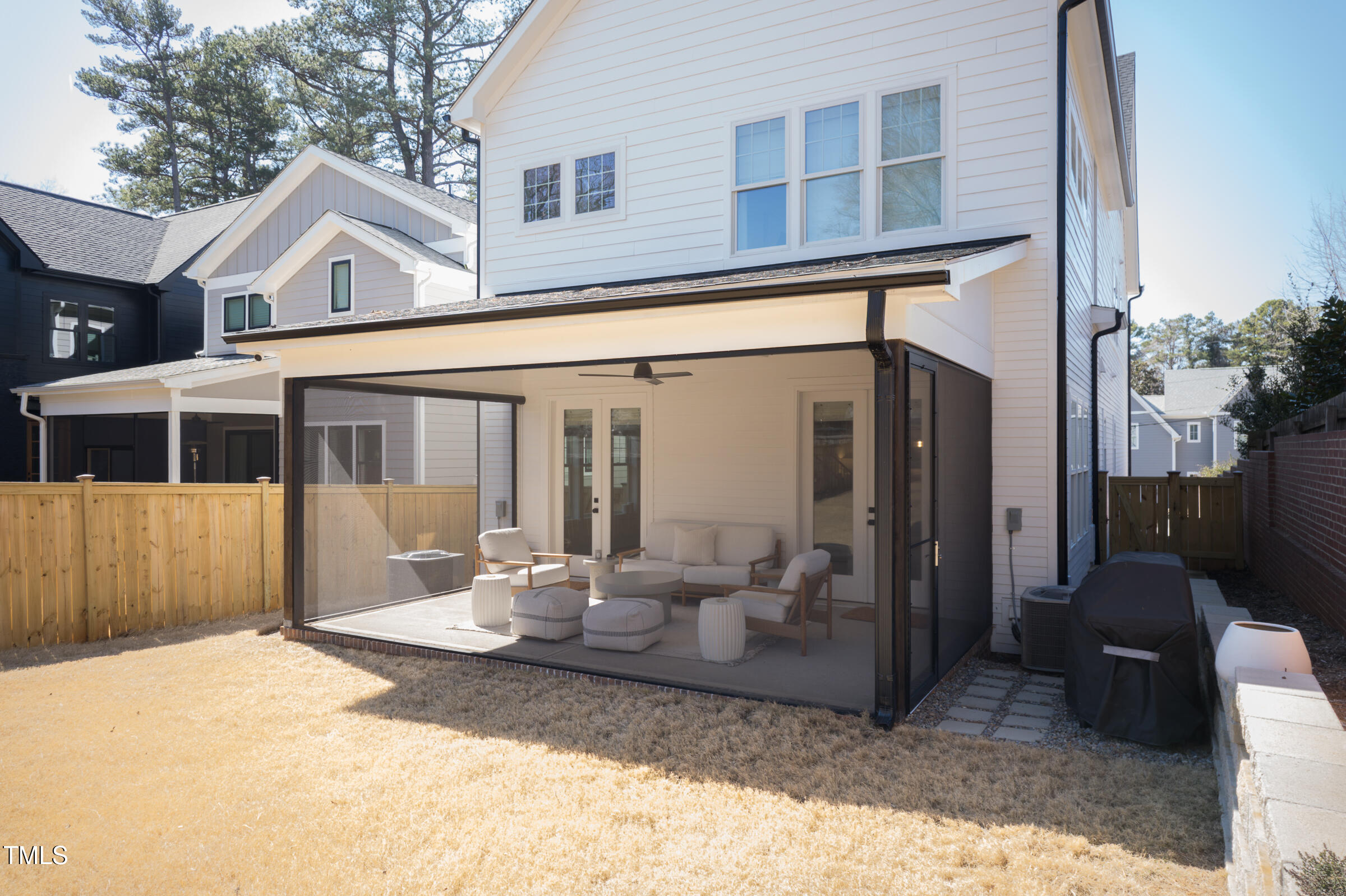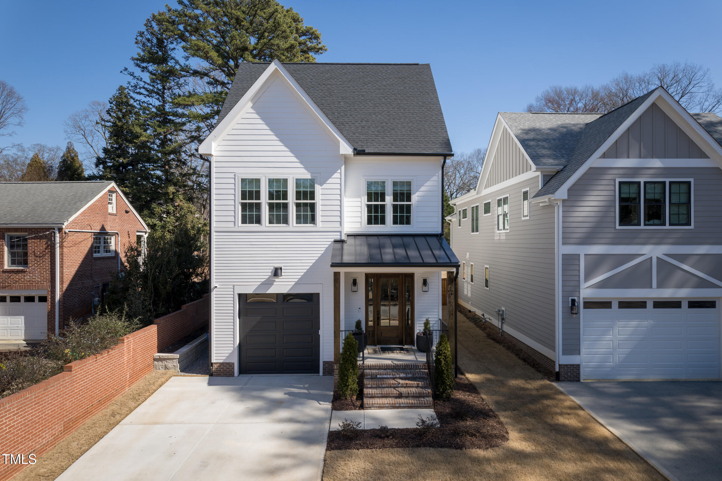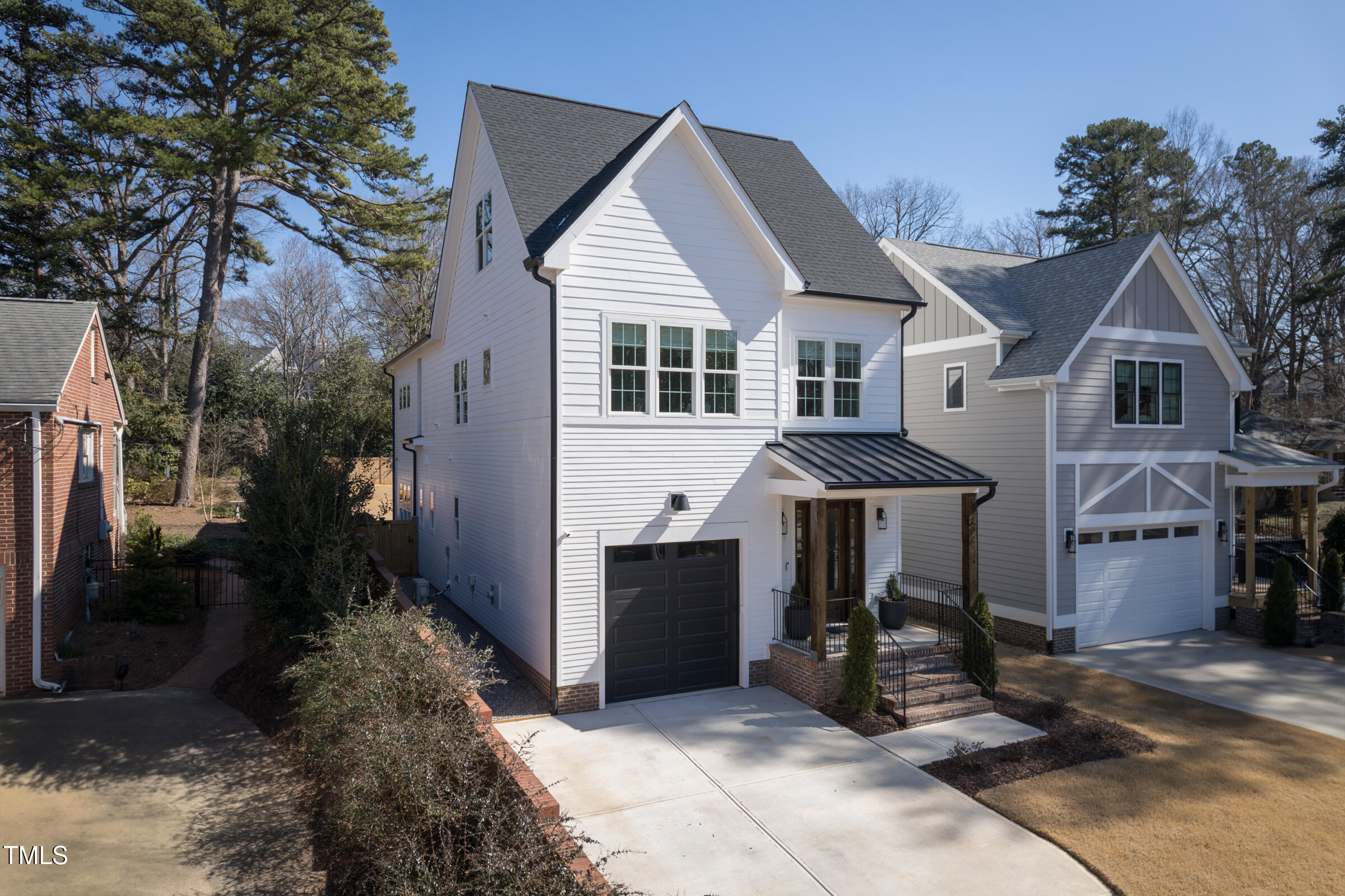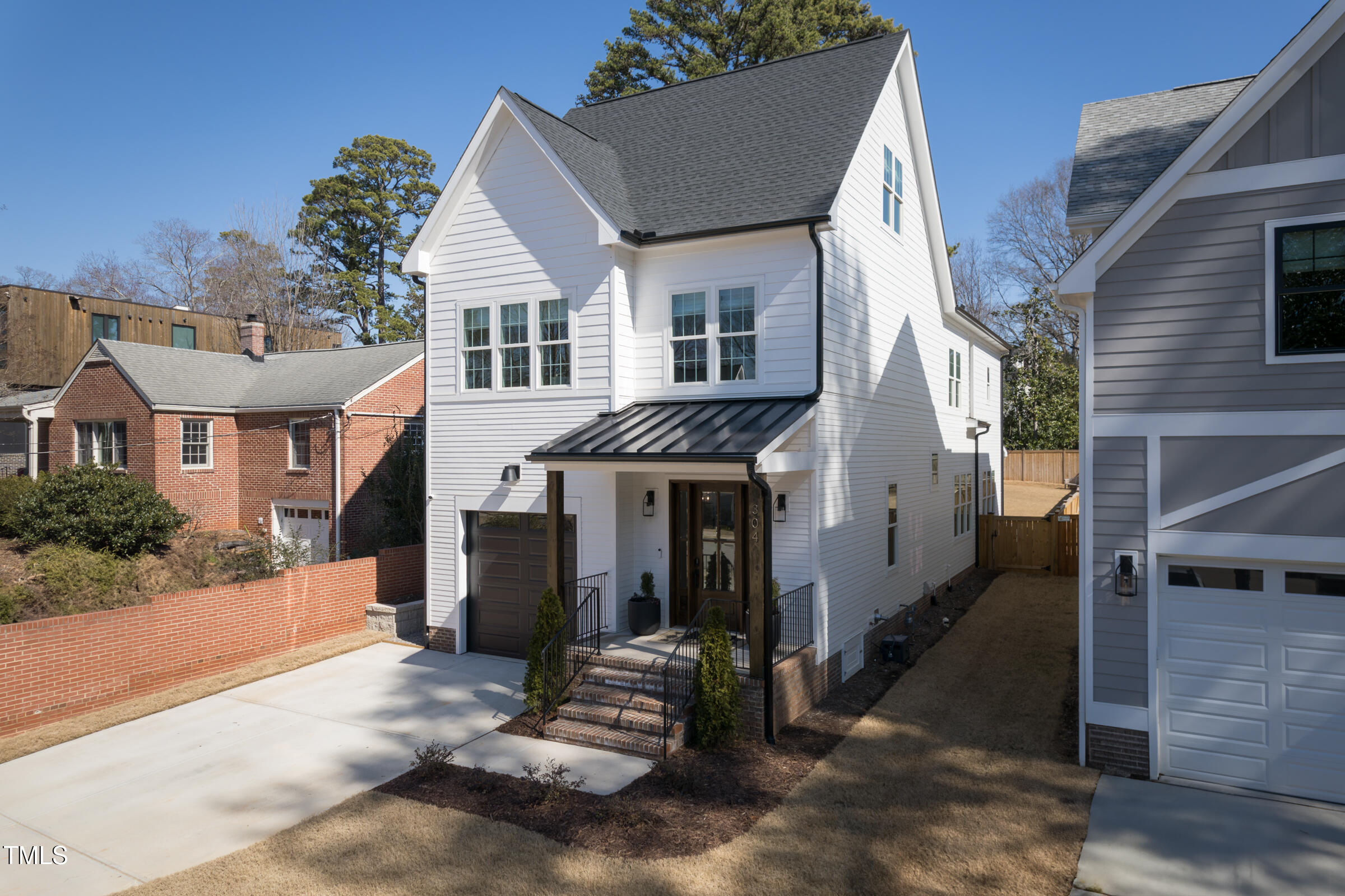 Organic Modern with High-End Finishes & Thoughtful Design. This newly built organic modern blends timeless charm with contemporary design in the coveted Wilmont neighborhood of University Park, one of Raleigh's most desirable neighborhoods. Featuring a crisp white exterior, sleek black accents, and a welcoming covered front porch, this home offers both curb appeal and modern functionality. Inside, discover an open-concept floor plan, high-end finishes, and abundant natural light. Beautiful wood floors throughout both main living levels and all bedrooms add warmth and elegance. The upgraded signature designer light fixtures and matching hardware elevate the home's style. The island-centered kitchen boasts an upgraded appliance package and a large walk-in pantry, ensuring effortless organization and fluid meal prep. A versatile room off the entry hall serves as a home office or convenient butler's pantry. The primary suite provides the ultimate retreat, complete with blackout shades for restful sleep and a spa-like en-suite bath with a double shower. Lounge peacefully in the spacious second floor loft. Upstairs, the finished third floor provides flexible space for an exercise room, additional office, or entertainment area, with cozy carpeting for comfort. Outdoor living is just as impressive! The screened porch includes a privacy shade that doubles as an outdoor movie screen, perfect for relaxing evenings. The spacious fenced backyard is ready for pets, complete with a doggie door access for a large pup. Furnishings negotiable. Other standout features include: * 38 ft x 12 ft walk-in attic storage - a rare find! * Tankless gas hot water heater for energy efficiency * Attached garage & ample driveway parking * Sealed crawlspace. Located in a sought-after neighborhood, this home is just minutes from top dining, shopping, and entertainment options. Perfect for today's lifestyle. Don't miss this thoughtfully designed home!