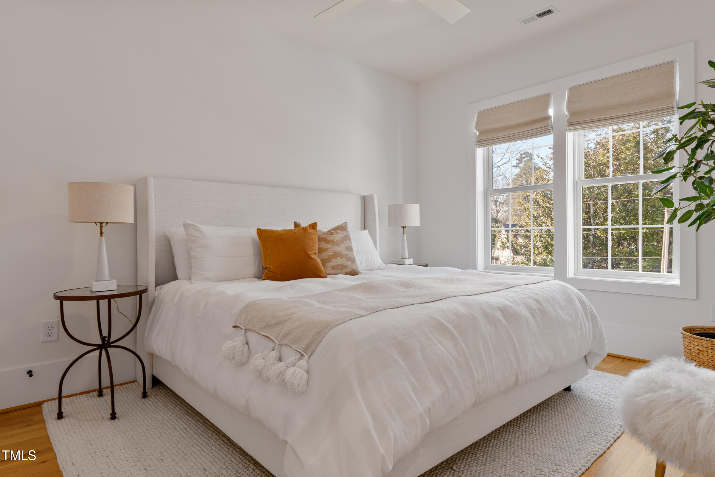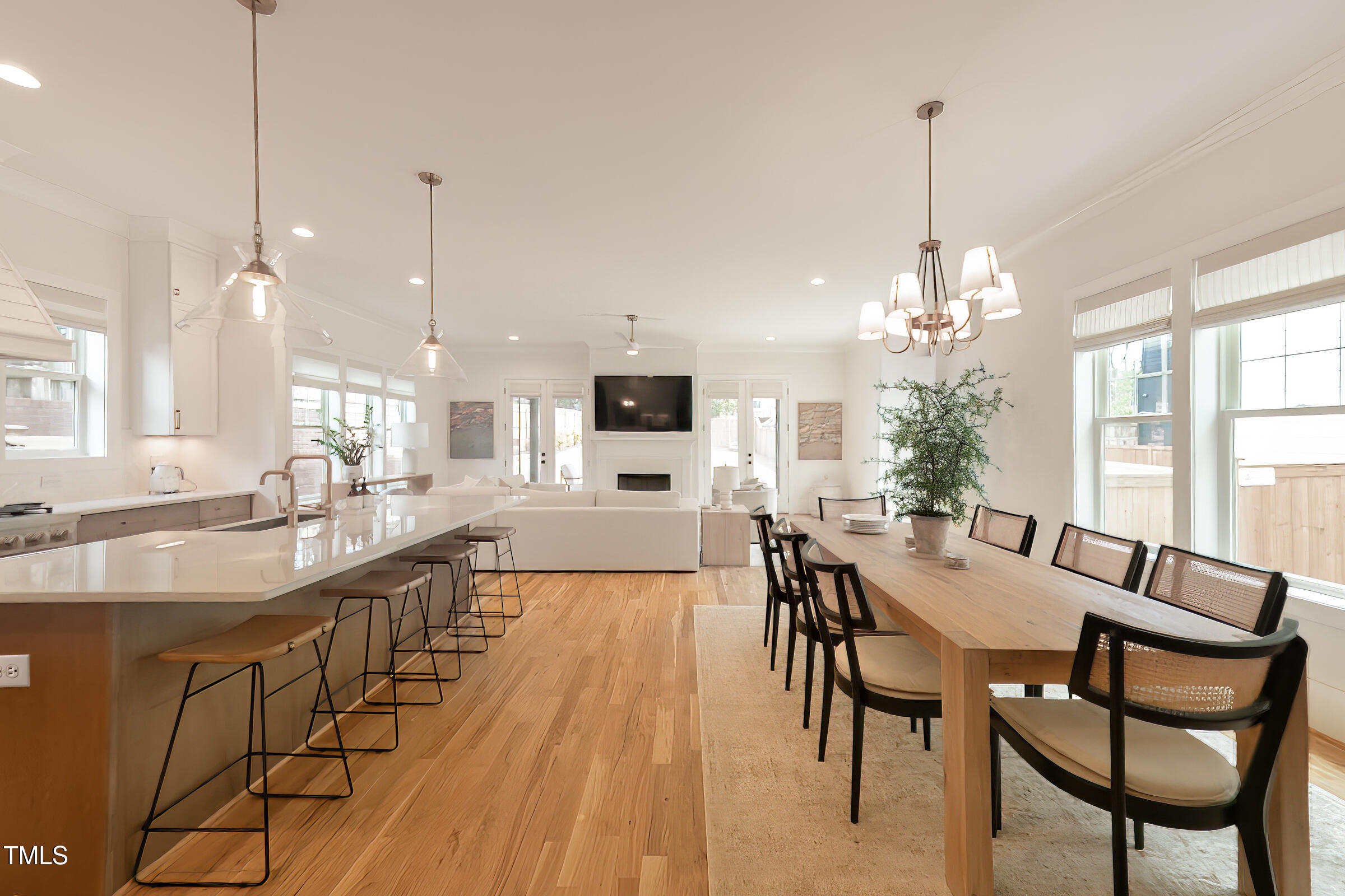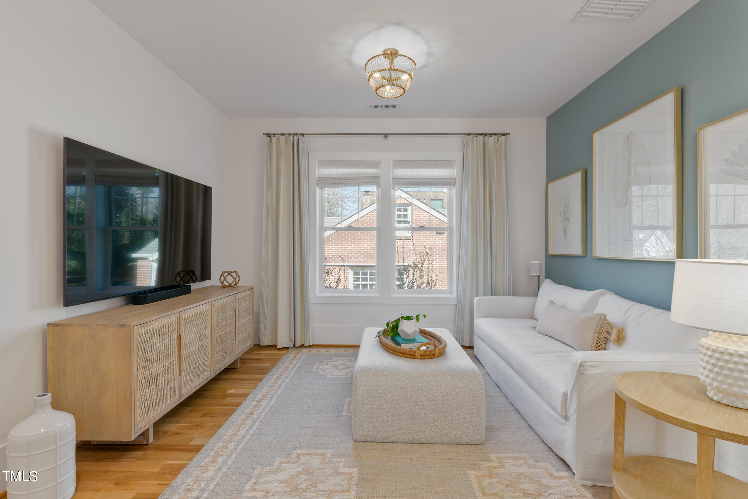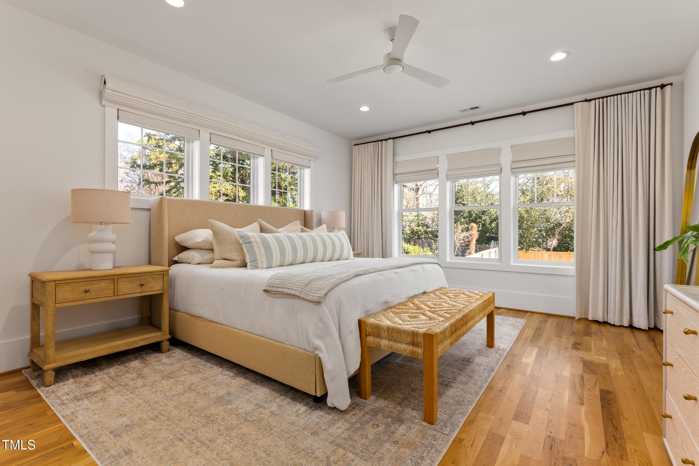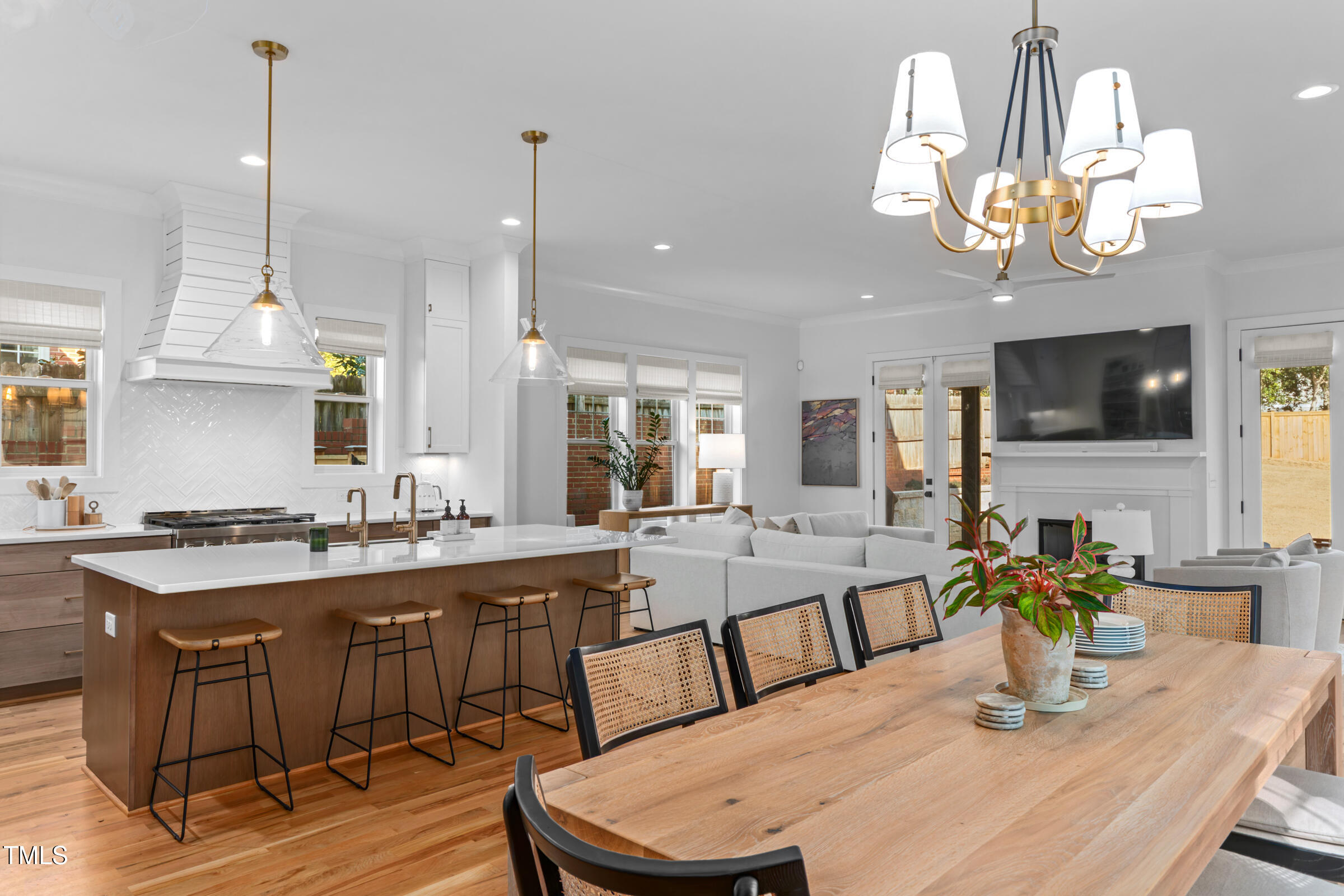 Organic Modern with High-End Finishes & Thoughtful Design. This newly built organic modern blends timeless charm with contemporary design in the coveted Wilmont neighborhood of University Park, one of Raleigh's most desirable neighborhoods. Featuring a crisp white exterior, sleek black accents, and a welcoming covered front porch, this home offers both curb appeal and modern functionality. Inside, discover an open-concept floor plan, high-end finishes, and abundant natural light. Beautiful wood floors throughout both main living levels and all bedrooms add warmth and elegance. The upgraded signature designer light fixtures and matching hardware elevate the home's style. The island-centered kitchen boasts an upgraded appliance package and a large walk-in pantry, ensuring effortless organization and fluid meal prep. A versatile room off the entry hall serves as a home office or convenient butler's pantry. The primary suite provides the ultimate retreat, complete with blackout shades for restful sleep and a spa-like en-suite bath with a double shower. Lounge peacefully in the spacious second floor loft. Upstairs, the finished third floor provides flexible space for an exercise room, additional office, or entertainment area, with cozy carpeting for comfort. Outdoor living is just as impressive! The screened porch includes a privacy shade that doubles as an outdoor movie screen, perfect for relaxing evenings. The spacious fenced backyard is ready for pets, complete with a doggie door access for a large pup. Furnishings negotiable. Other standout features include: * 38 ft x 12 ft walk-in attic storage - a rare find! * Tankless gas hot water heater for energy efficiency * Attached garage & ample driveway parking * Sealed crawlspace. Located in a sought-after neighborhood, this home is just minutes from top dining, shopping, and entertainment options. Perfect for today's lifestyle. Don't miss this thoughtfully designed home!