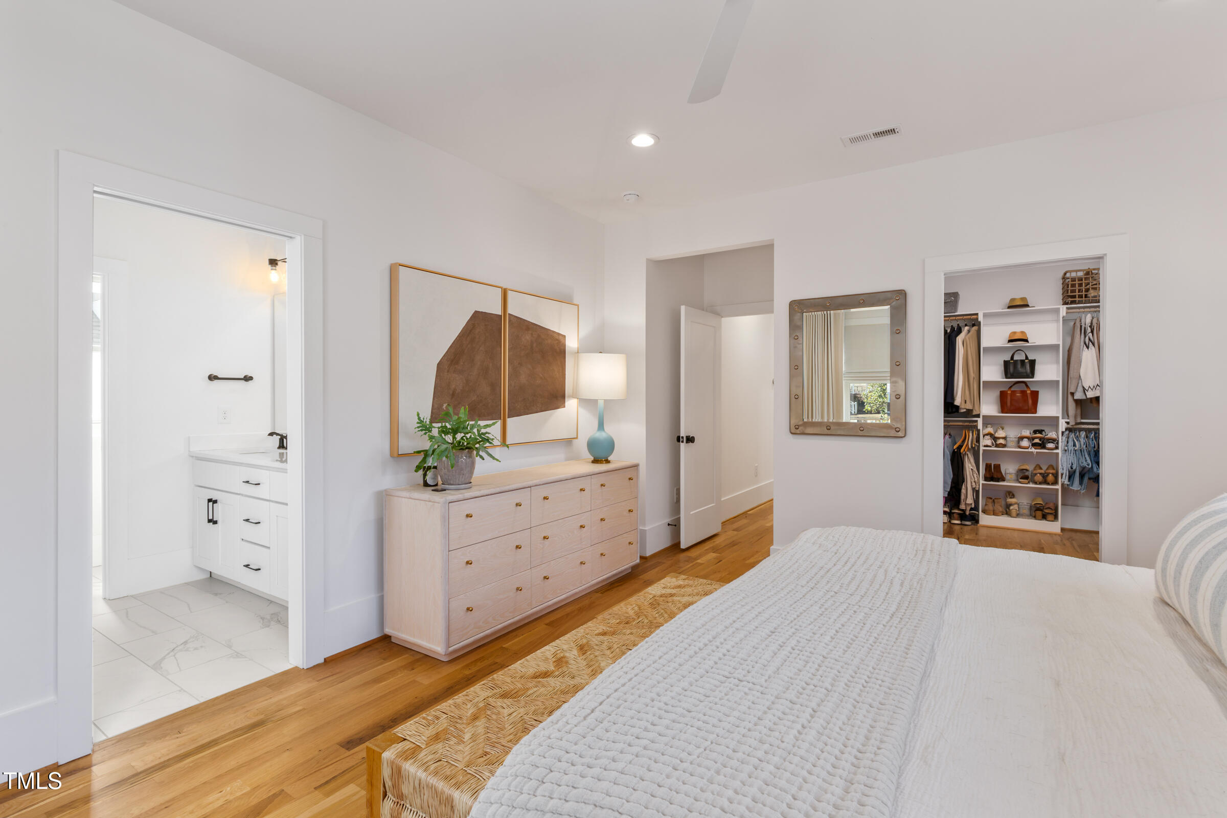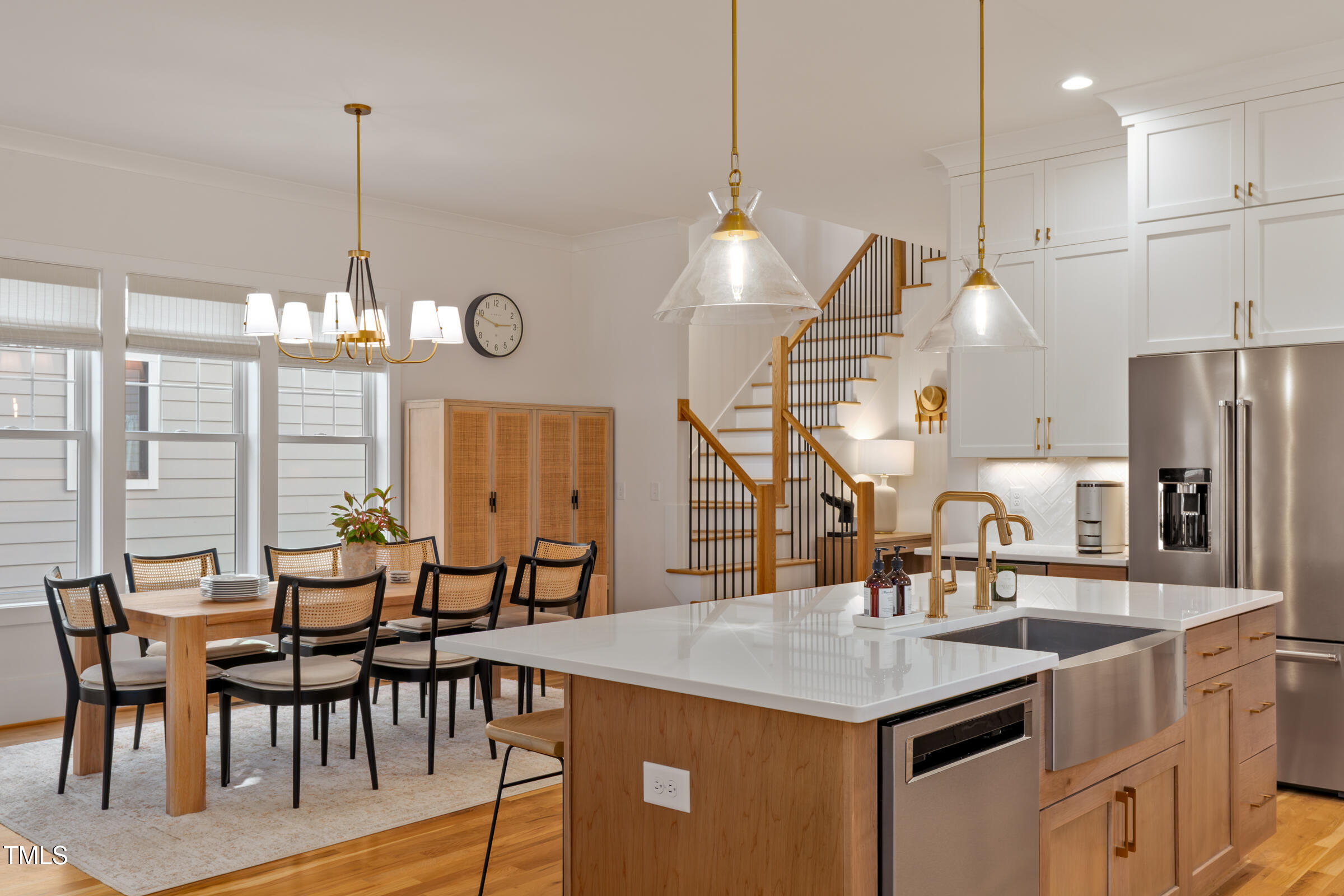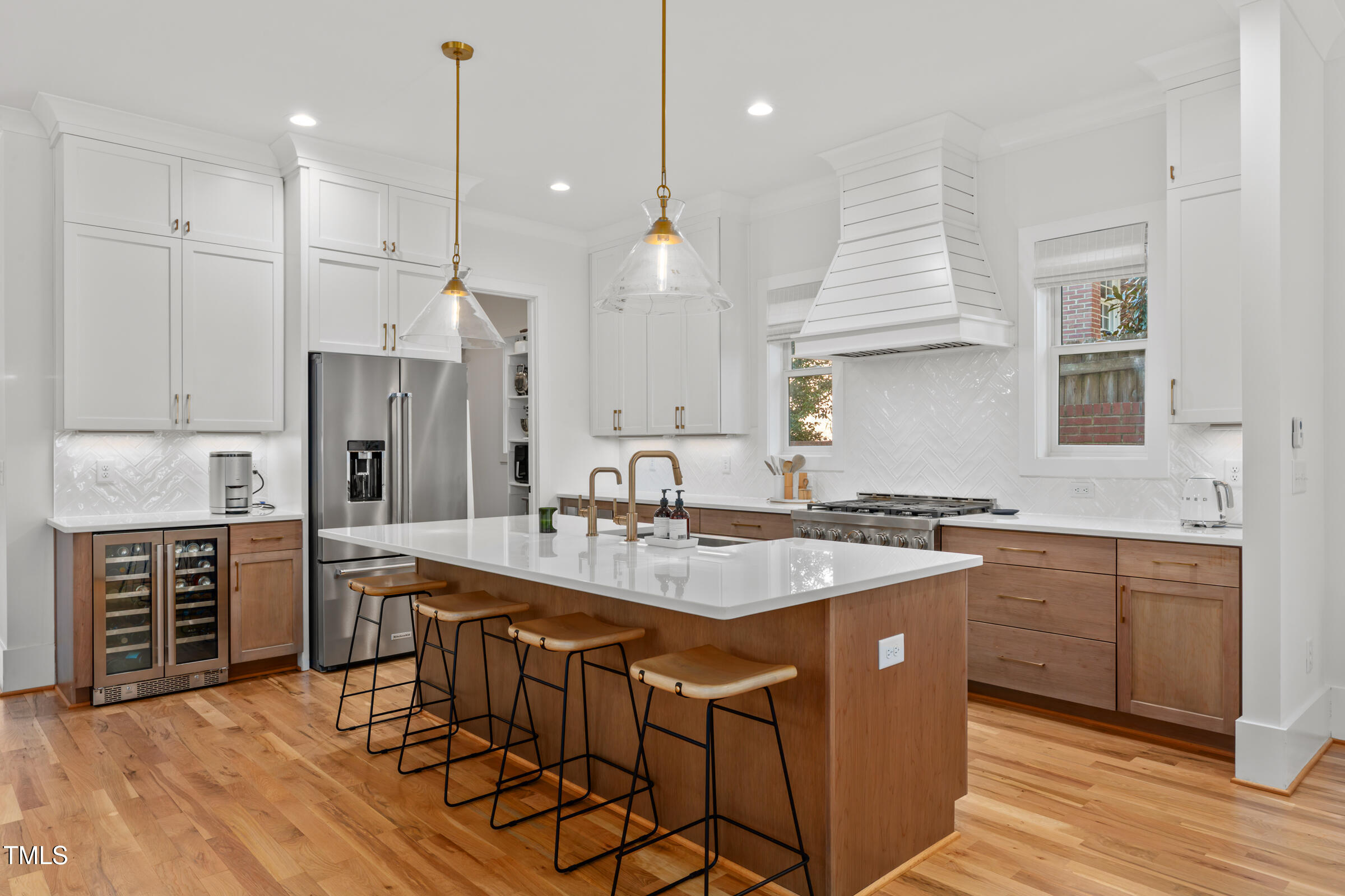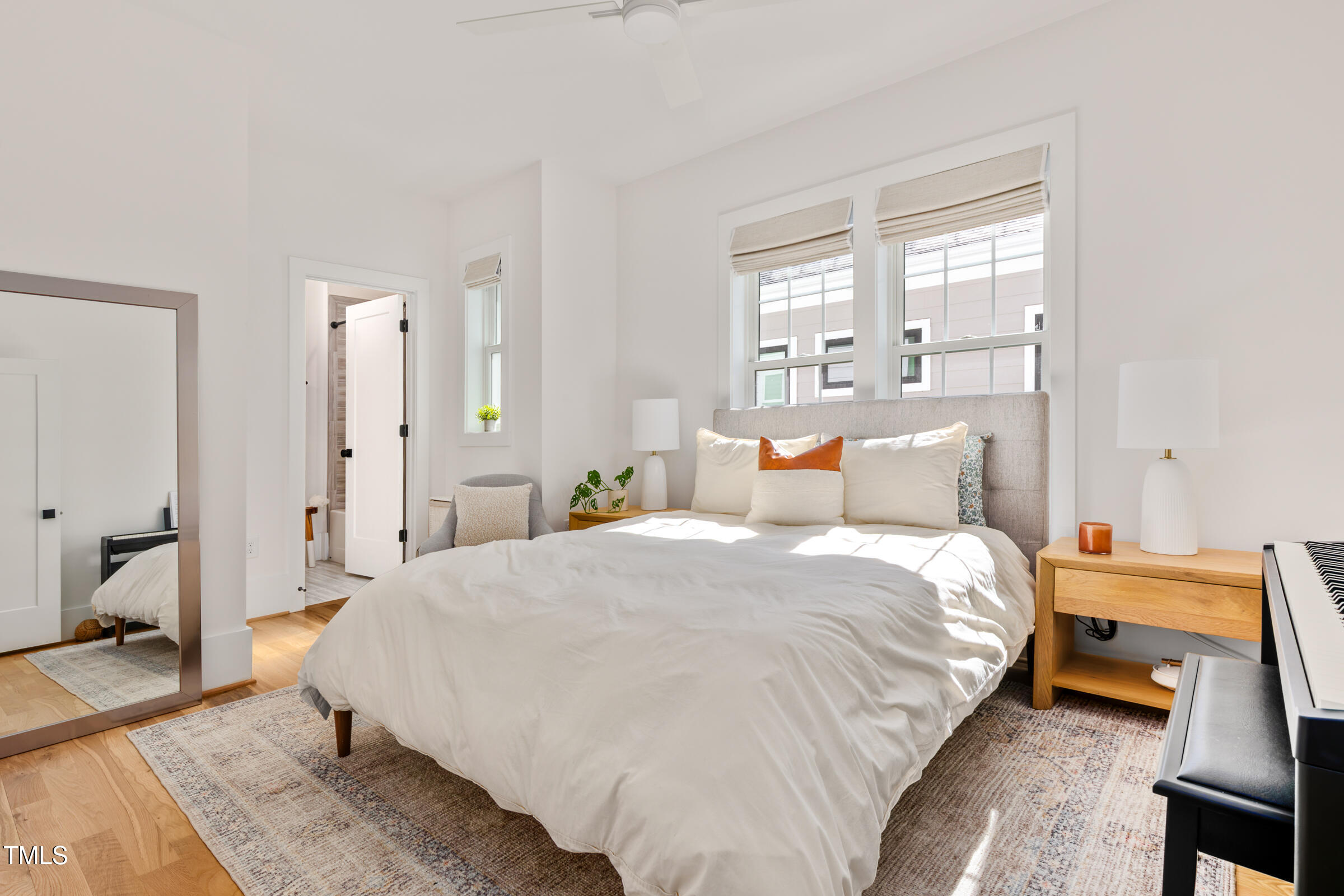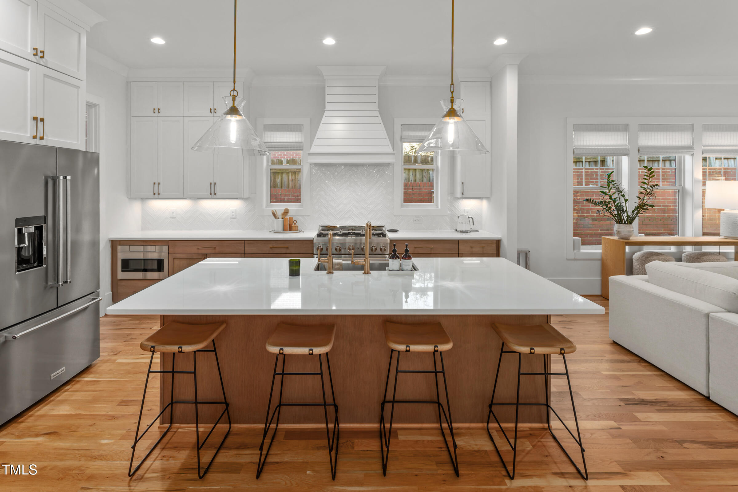 Organic Modern with High-End Finishes & Thoughtful Design. This newly built organic modern blends timeless charm with contemporary design in the coveted Wilmont neighborhood of University Park, one of Raleigh's most desirable neighborhoods. Featuring a crisp white exterior, sleek black accents, and a welcoming covered front porch, this home offers both curb appeal and modern functionality. Inside, discover an open-concept floor plan, high-end finishes, and abundant natural light. Beautiful wood floors throughout both main living levels and all bedrooms add warmth and elegance. The upgraded signature designer light fixtures and matching hardware elevate the home's style. The island-centered kitchen boasts an upgraded appliance package and a large walk-in pantry, ensuring effortless organization and fluid meal prep. A versatile room off the entry hall serves as a home office or convenient butler's pantry. The primary suite provides the ultimate retreat, complete with blackout shades for restful sleep and a spa-like en-suite bath with a double shower. Lounge peacefully in the spacious second floor loft. Upstairs, the finished third floor provides flexible space for an exercise room, additional office, or entertainment area, with cozy carpeting for comfort. Outdoor living is just as impressive! The screened porch includes a privacy shade that doubles as an outdoor movie screen, perfect for relaxing evenings. The spacious fenced backyard is ready for pets, complete with a doggie door access for a large pup. Furnishings negotiable. Other standout features include: * 38 ft x 12 ft walk-in attic storage - a rare find! * Tankless gas hot water heater for energy efficiency * Attached garage & ample driveway parking * Sealed crawlspace. Located in a sought-after neighborhood, this home is just minutes from top dining, shopping, and entertainment options. Perfect for today's lifestyle. Don't miss this thoughtfully designed home!