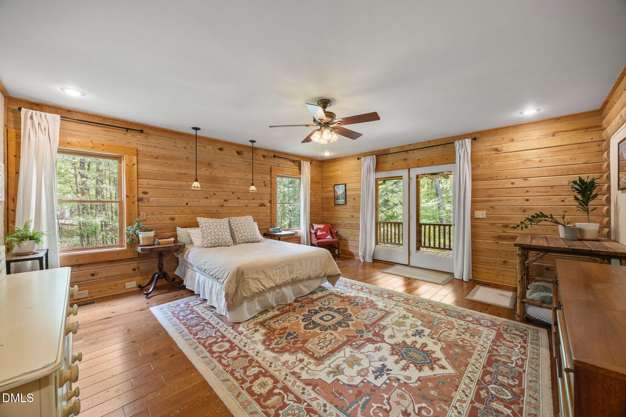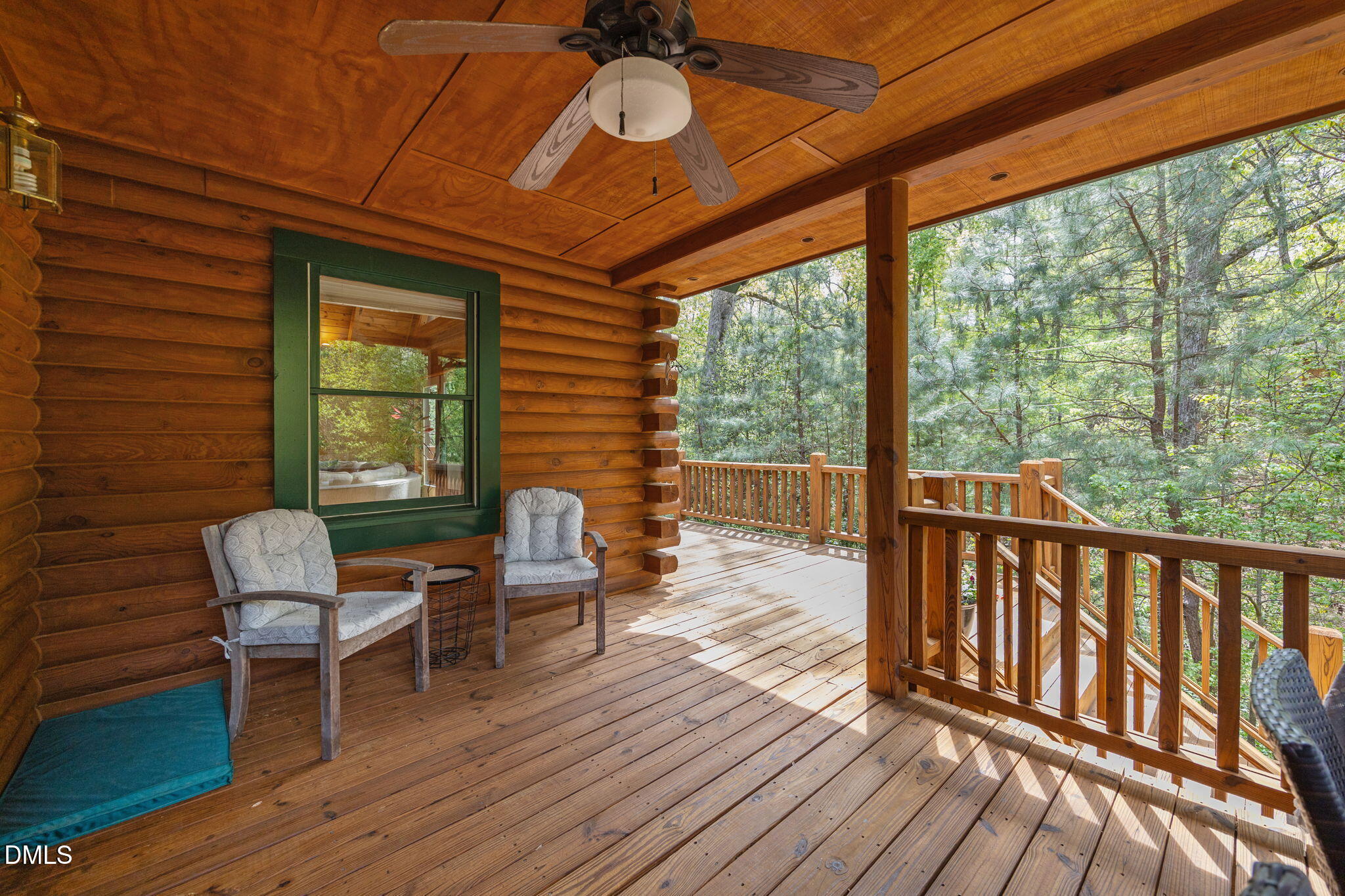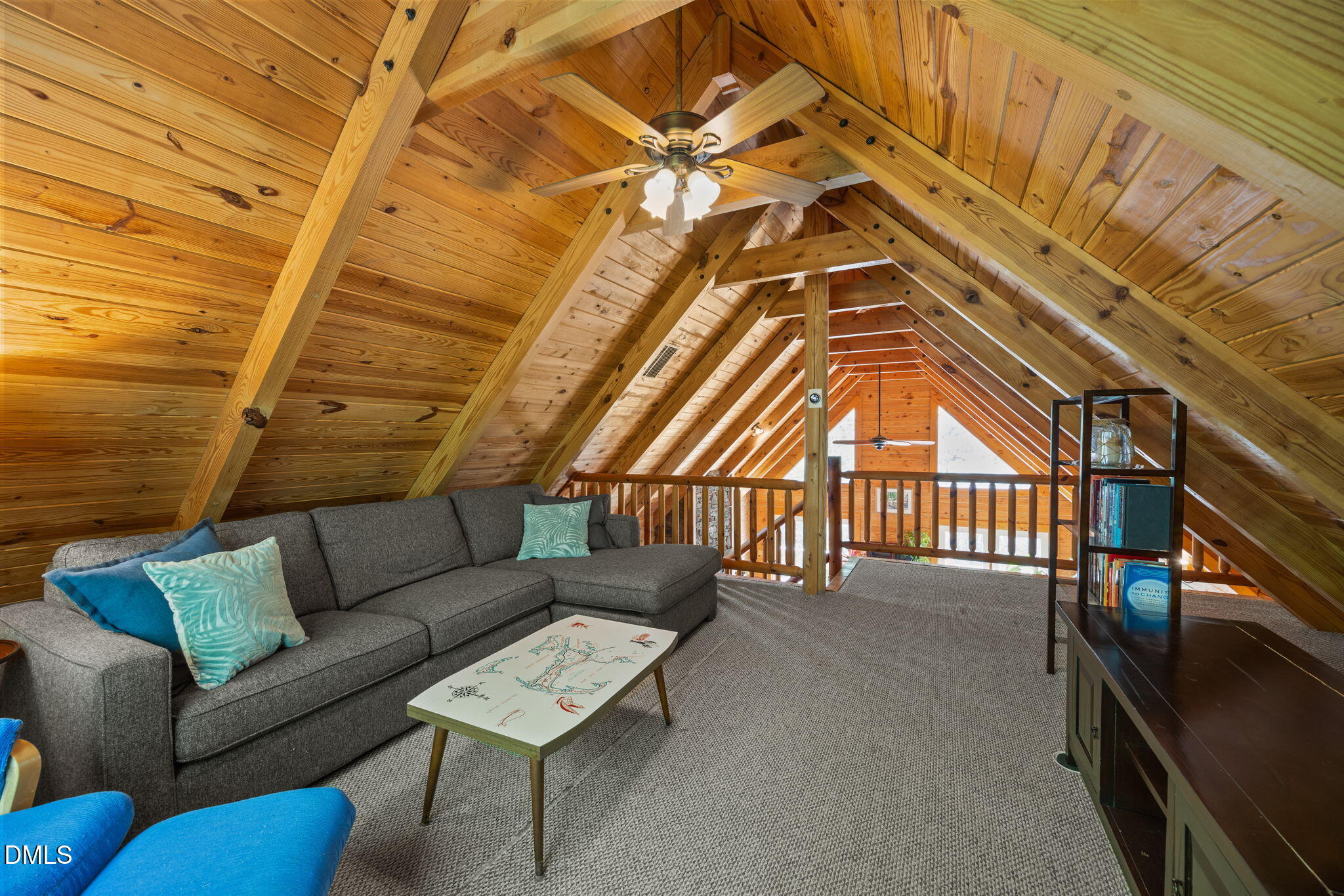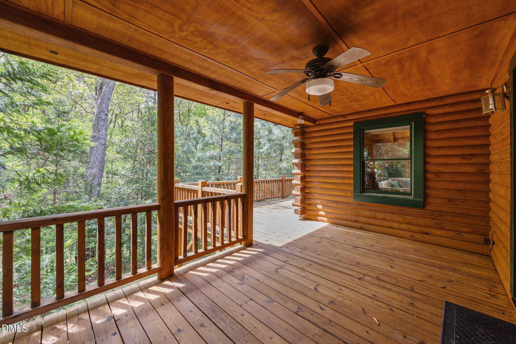 Tucked into a wonderful Durham neighborhood, this log home offers a rare blend of warmth, character, everyday convenience, and ample storage, featuring over 1,200 square feet of usable unfinished basement space. Natural light fills the home, highlighting the great room with soaring ceilings and comfortable bedrooms. A loft overlooking the main living area provides flexibility for a TV room, playroom, or home office. Surrounded by nature views and set in a desirable location, the home feels like a peaceful retreat while still being close to everything Durham has to offer, including the Eno River State Park and a brand new Publix grocery store. The lower level features a versatile, nearly finished studio that could serve as a soundproof music space, office, meditation room, or cozy hangout. A dedicated storage room and separate workshop add functionality, while the wraparound deck offers the perfect setting to relax or entertain outdoors. Do not miss this wonderful home that combines character, flexibility, and thoughtful design in a truly special setting.
