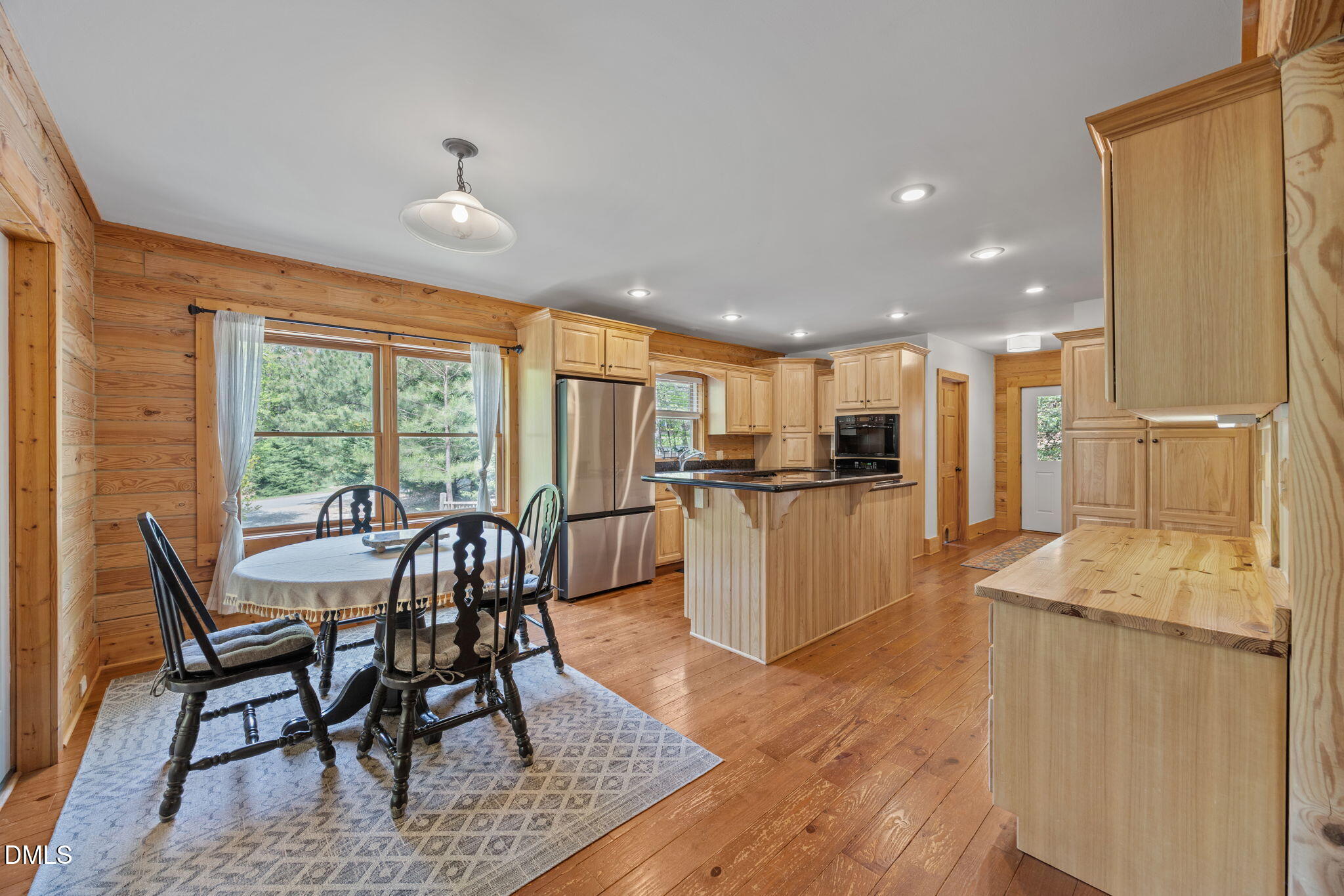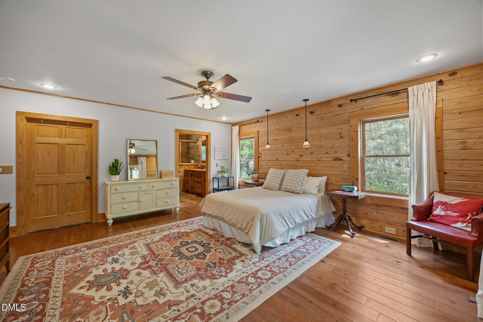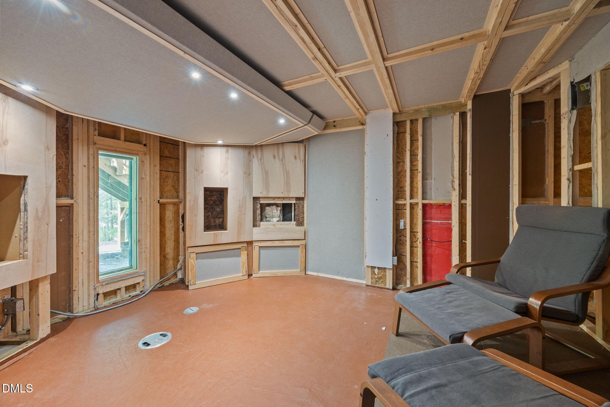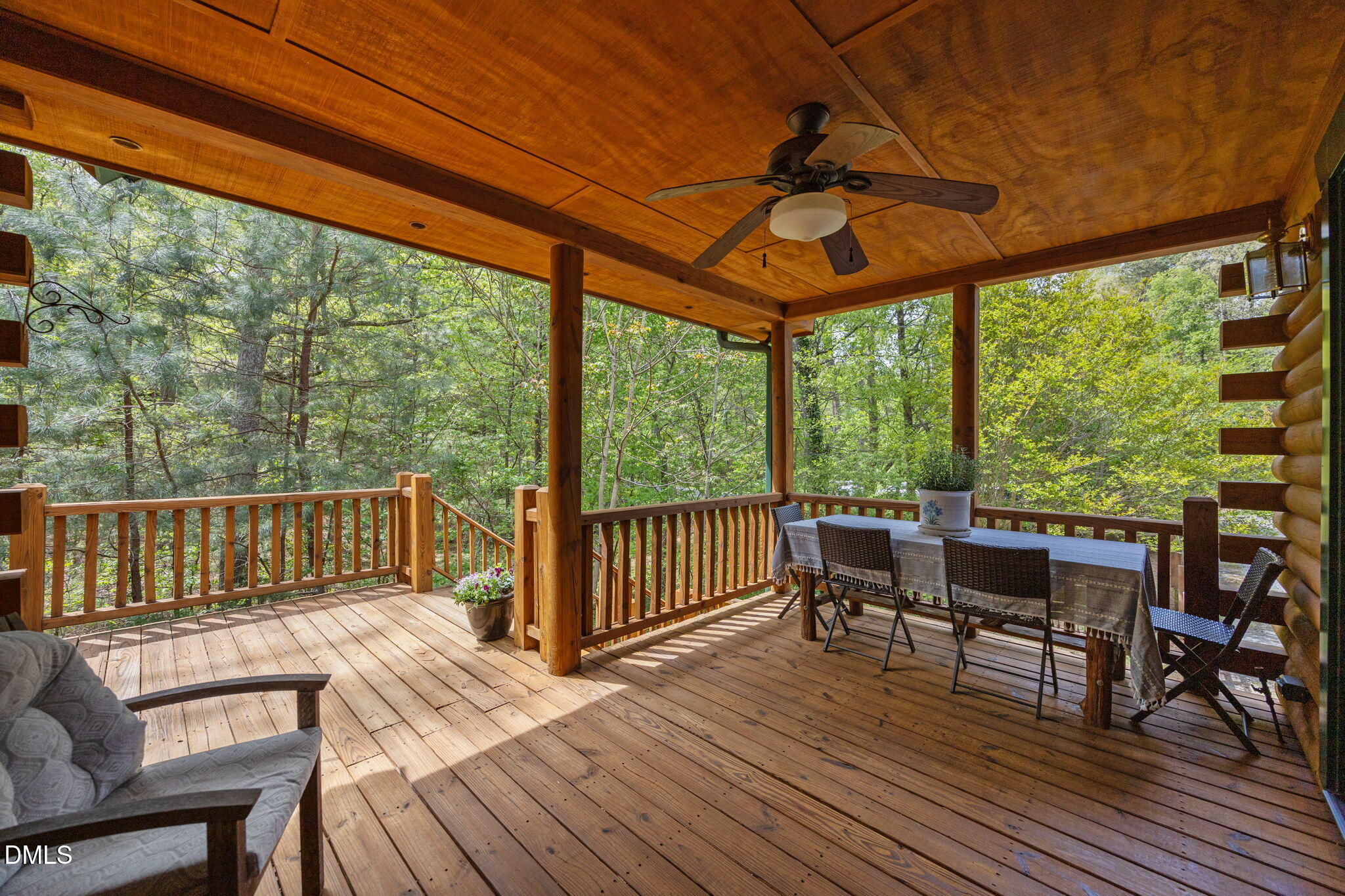 Tucked into a wonderful Durham neighborhood, this log home offers a rare blend of warmth, character, everyday convenience, and ample storage, featuring over 1,200 square feet of usable unfinished basement space. Natural light fills the home, highlighting the great room with soaring ceilings and comfortable bedrooms. A loft overlooking the main living area provides flexibility for a TV room, playroom, or home office. Surrounded by nature views and set in a desirable location, the home feels like a peaceful retreat while still being close to everything Durham has to offer, including the Eno River State Park and a brand new Publix grocery store. The lower level features a versatile, nearly finished studio that could serve as a soundproof music space, office, meditation room, or cozy hangout. A dedicated storage room and separate workshop add functionality, while the wraparound deck offers the perfect setting to relax or entertain outdoors. Do not miss this wonderful home that combines character, flexibility, and thoughtful design in a truly special setting.