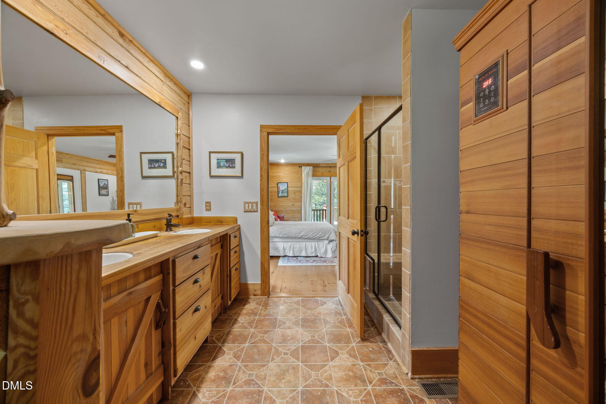 • other interior Features Bathtub/Shower Combination, Beamed Ceilings, Ceiling Fan(s), Double Vanity, Granite Counters, High Ceilings, Kitchen Island, Natural Woodwork, Sauna, Separate Shower