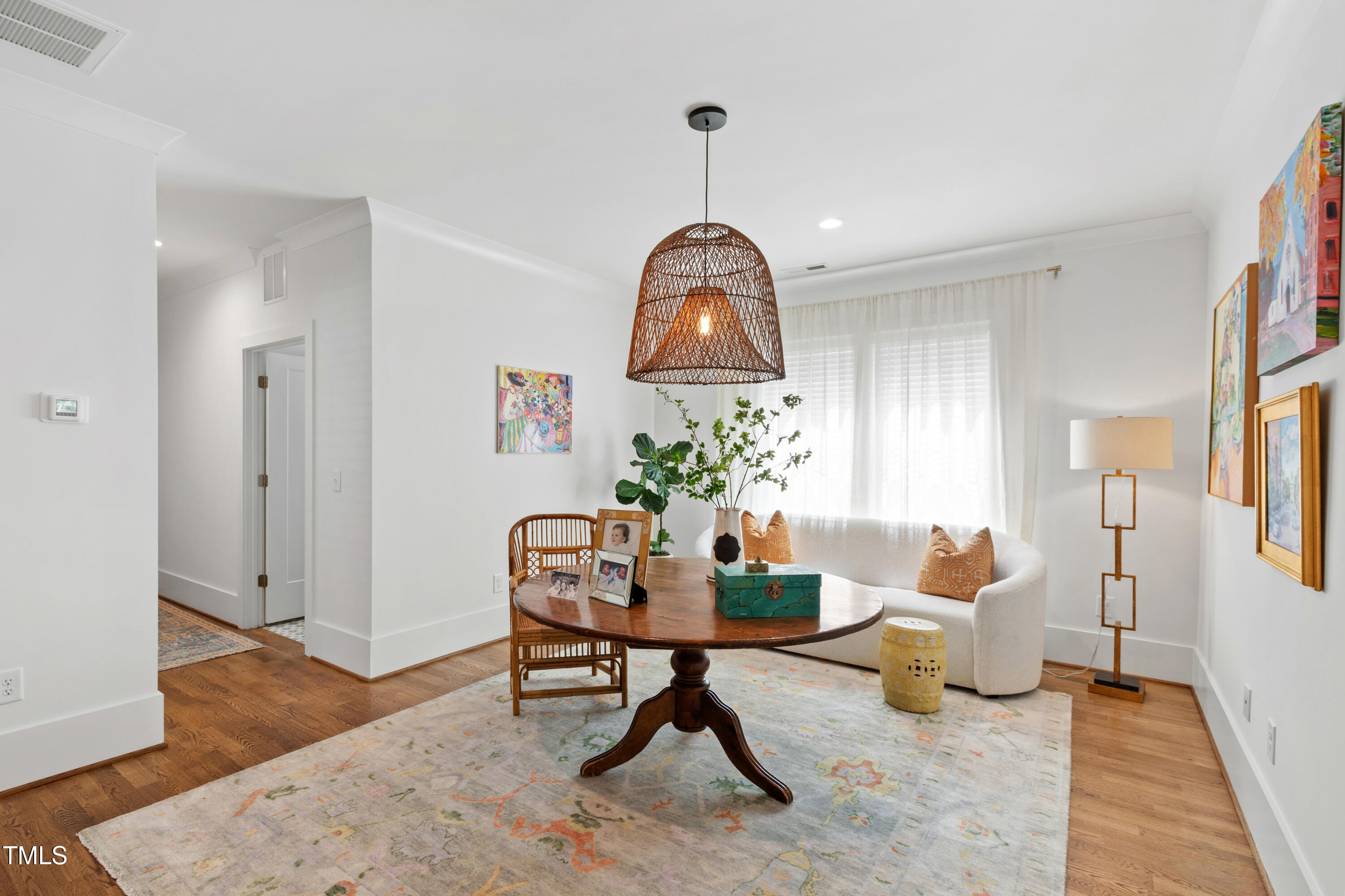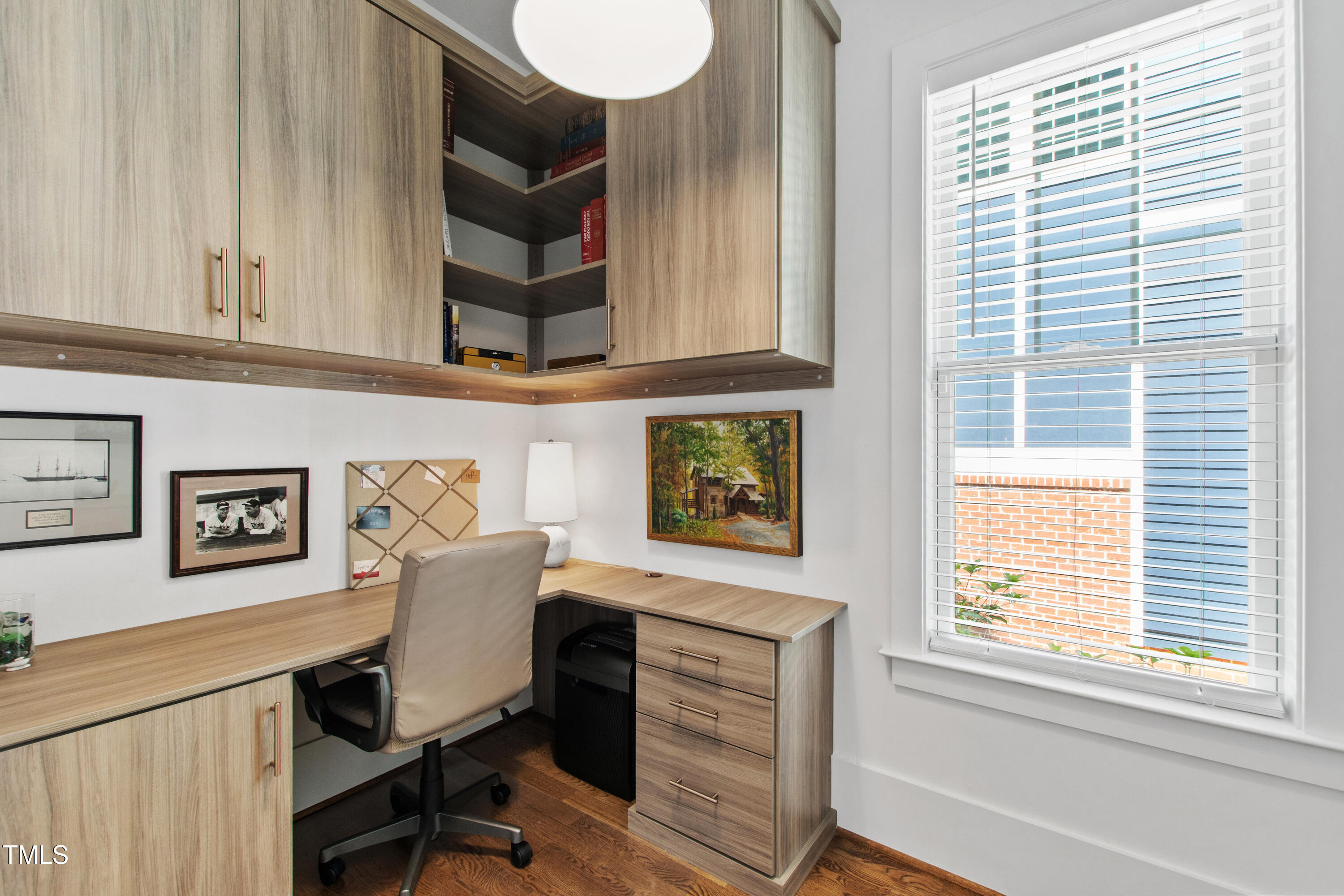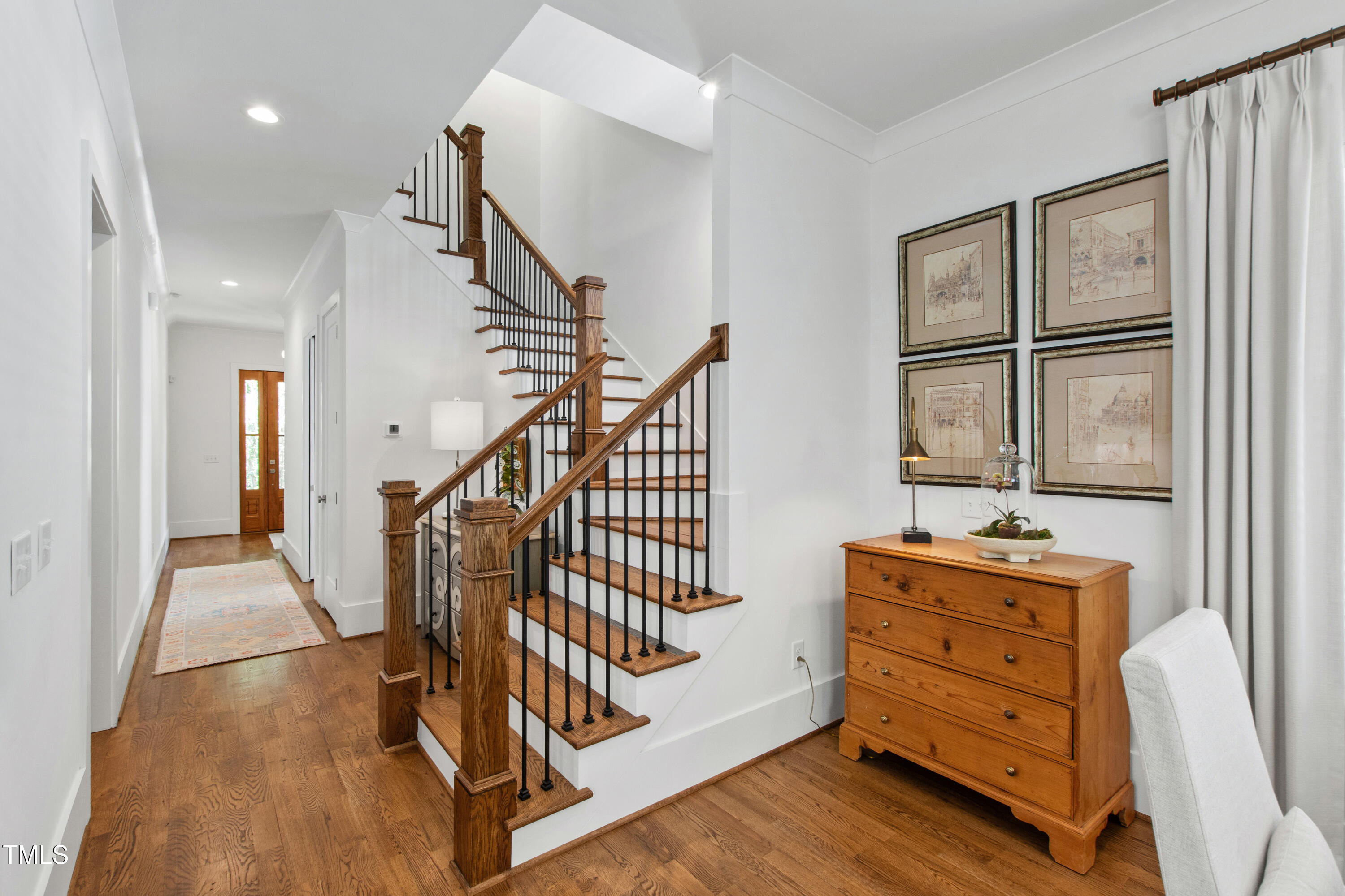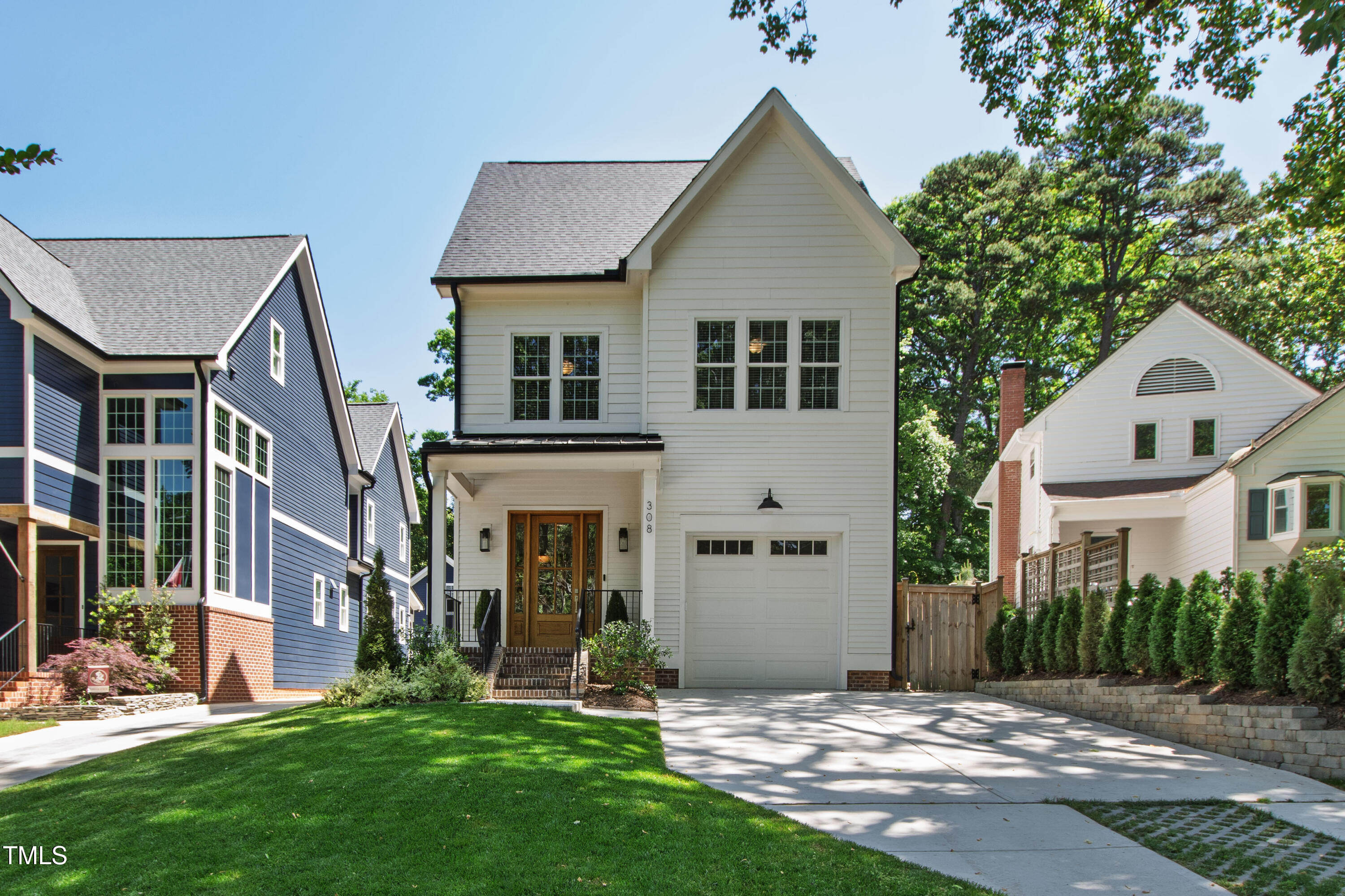 Welcome to 308 Furches Street -- a stunning 2022-built home perfectly situated in the sought-after Wilmont neighborhood. Enjoy unbeatable convenience just minutes from Ridgewood Shopping Center, the Village District, NC State University, Meredith College and with easy access to RDU Airport, I-440 and I-40. This beautifully designed 4-bedroom, 3.5-bath home offers modern, open-concept living with stylish finishes throughout. The first floor impresses with soaring 10-foot ceilings, a gas-log fireplace and hardwood floors throughout. A bright kitchen and family room area flows seamlessly to a covered outdoor porch and private fenced backyard -- perfect for relaxing or entertaining. A thoughtfully designed pocket office with custom built-ins makes working from home a breeze. Upstairs, the expansive owner's suite features a spa-like bath with a walk-in shower, double vanity, water closet, and a large walk-in closet. A versatile third-floor bonus room provides the ideal space for a playroom, exercise area, or media room, along with generous walk-in storage. For added convenience, the current owners added an additional storage shed in the backyard.