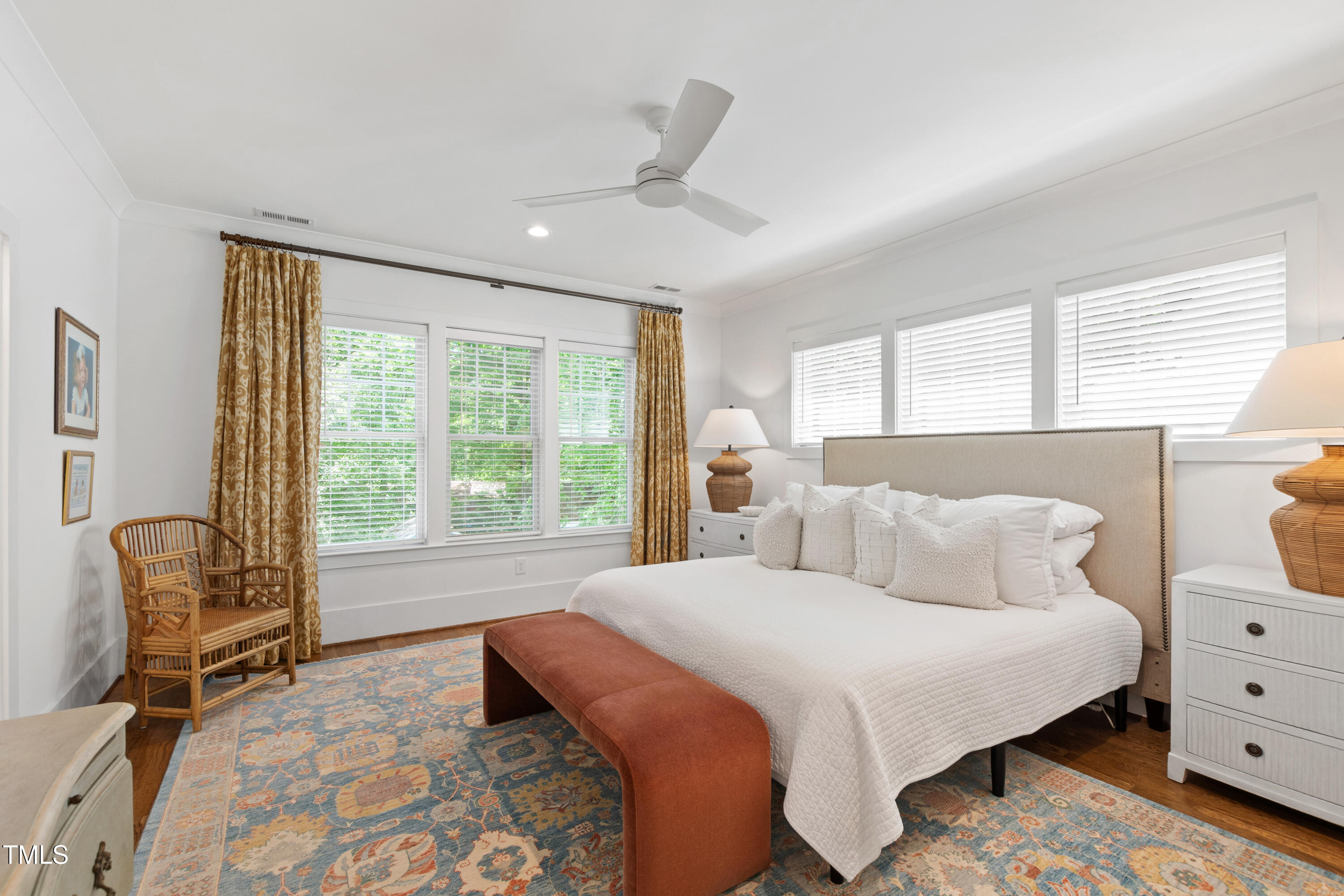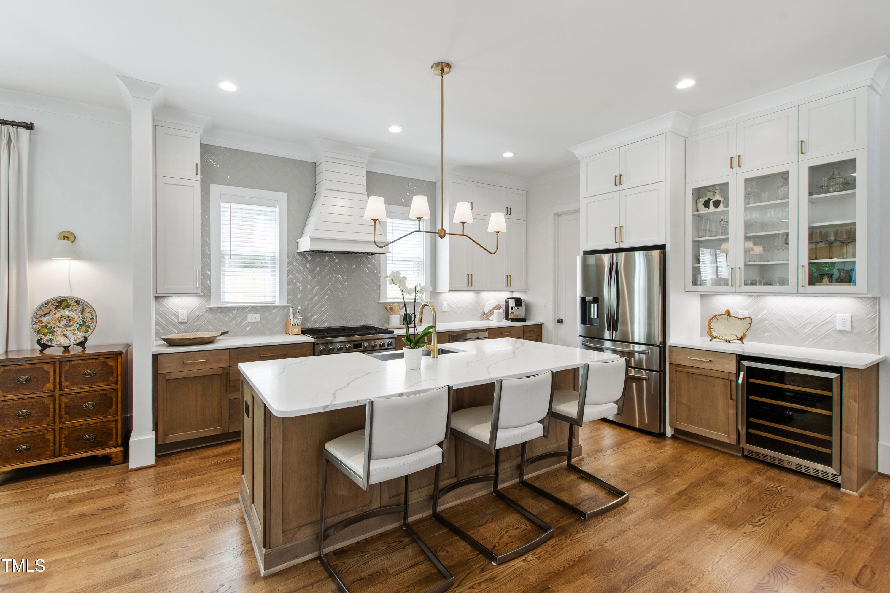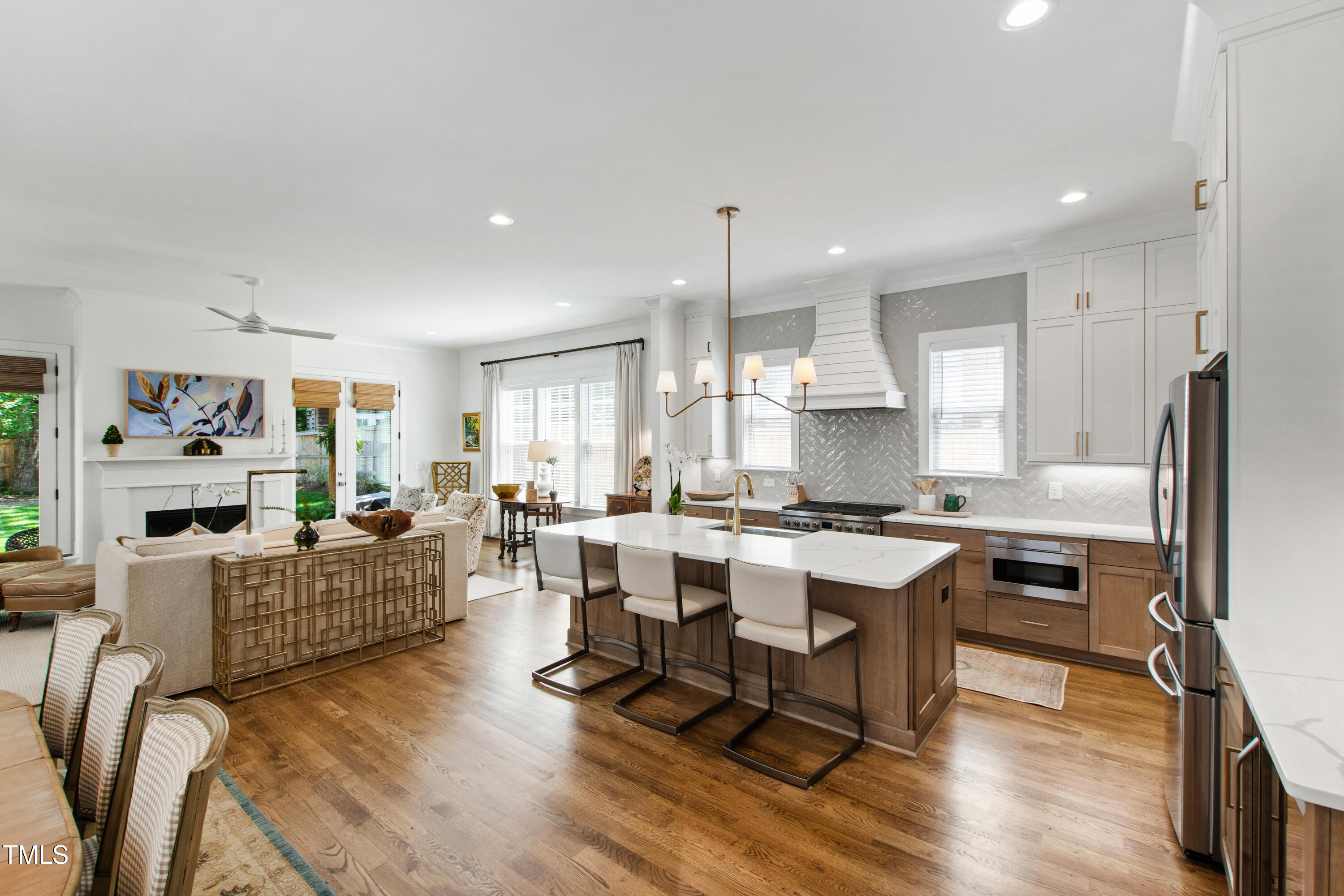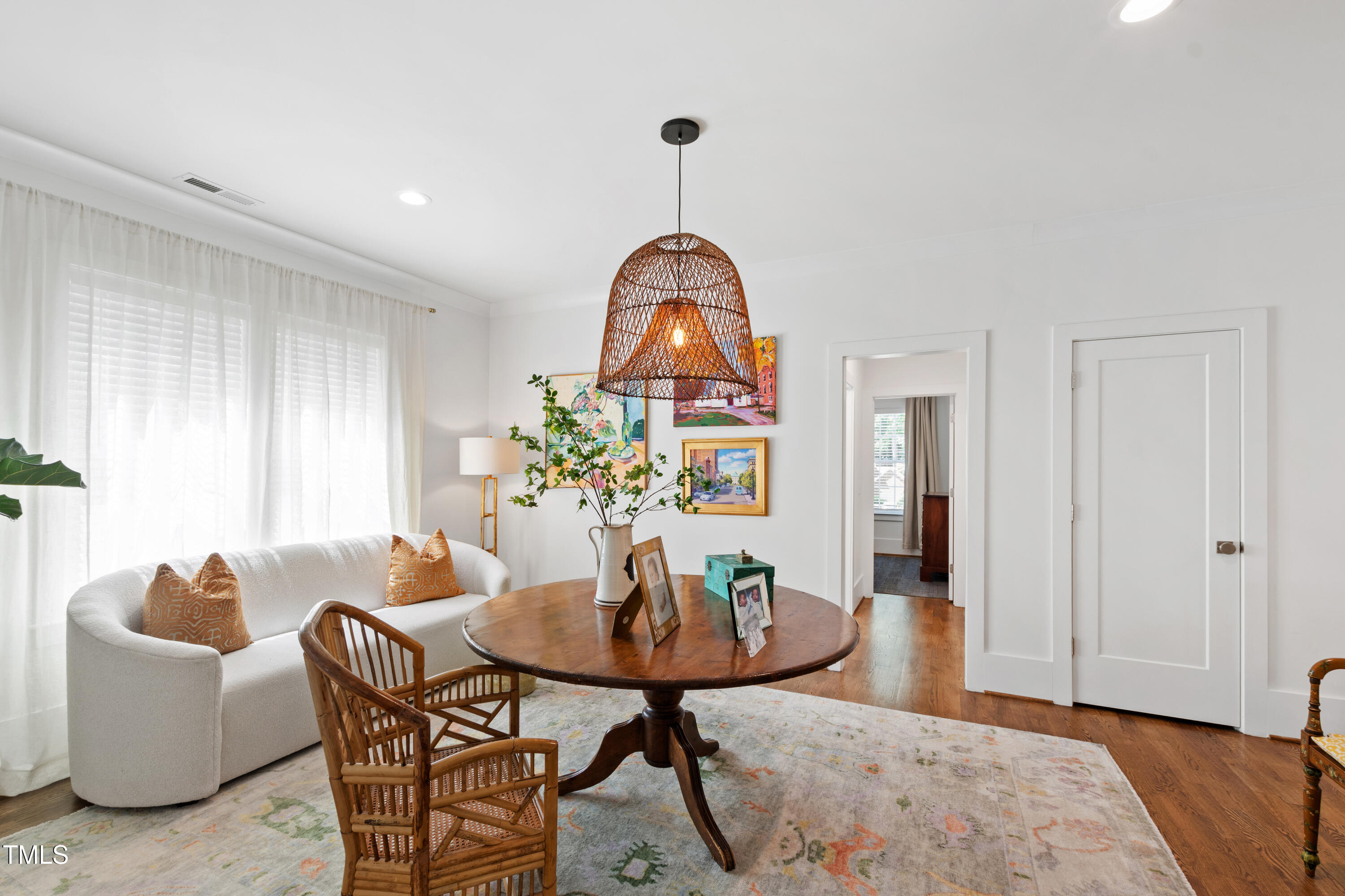 Welcome to 308 Furches Street -- a stunning 2022-built home perfectly situated in the sought-after Wilmont neighborhood. Enjoy unbeatable convenience just minutes from Ridgewood Shopping Center, the Village District, NC State University, Meredith College and with easy access to RDU Airport, I-440 and I-40. This beautifully designed 4-bedroom, 3.5-bath home offers modern, open-concept living with stylish finishes throughout. The first floor impresses with soaring 10-foot ceilings, a gas-log fireplace and hardwood floors throughout. A bright kitchen and family room area flows seamlessly to a covered outdoor porch and private fenced backyard -- perfect for relaxing or entertaining. A thoughtfully designed pocket office with custom built-ins makes working from home a breeze. Upstairs, the expansive owner's suite features a spa-like bath with a walk-in shower, double vanity, water closet, and a large walk-in closet. A versatile third-floor bonus room provides the ideal space for a playroom, exercise area, or media room, along with generous walk-in storage. For added convenience, the current owners added an additional storage shed in the backyard.
