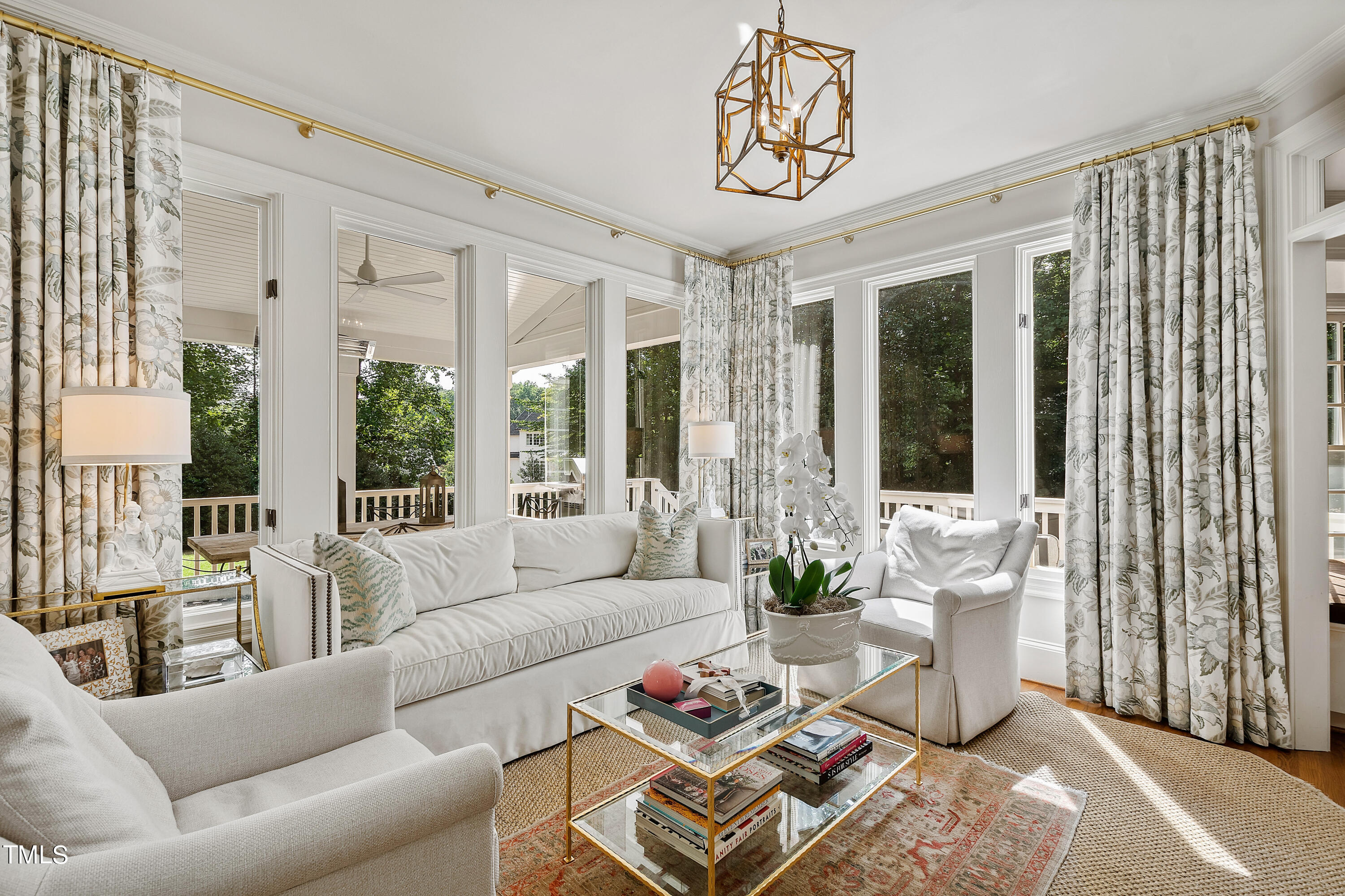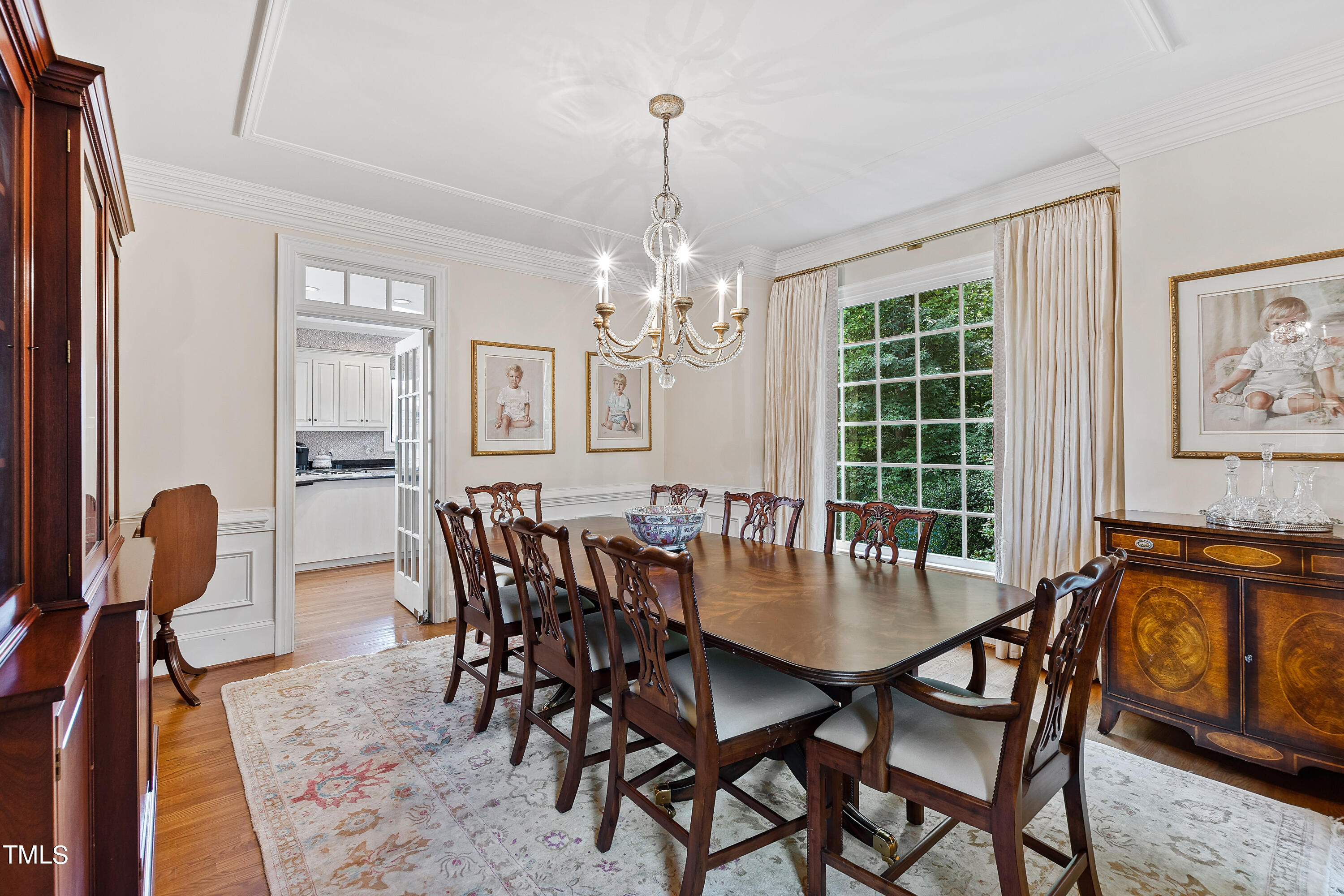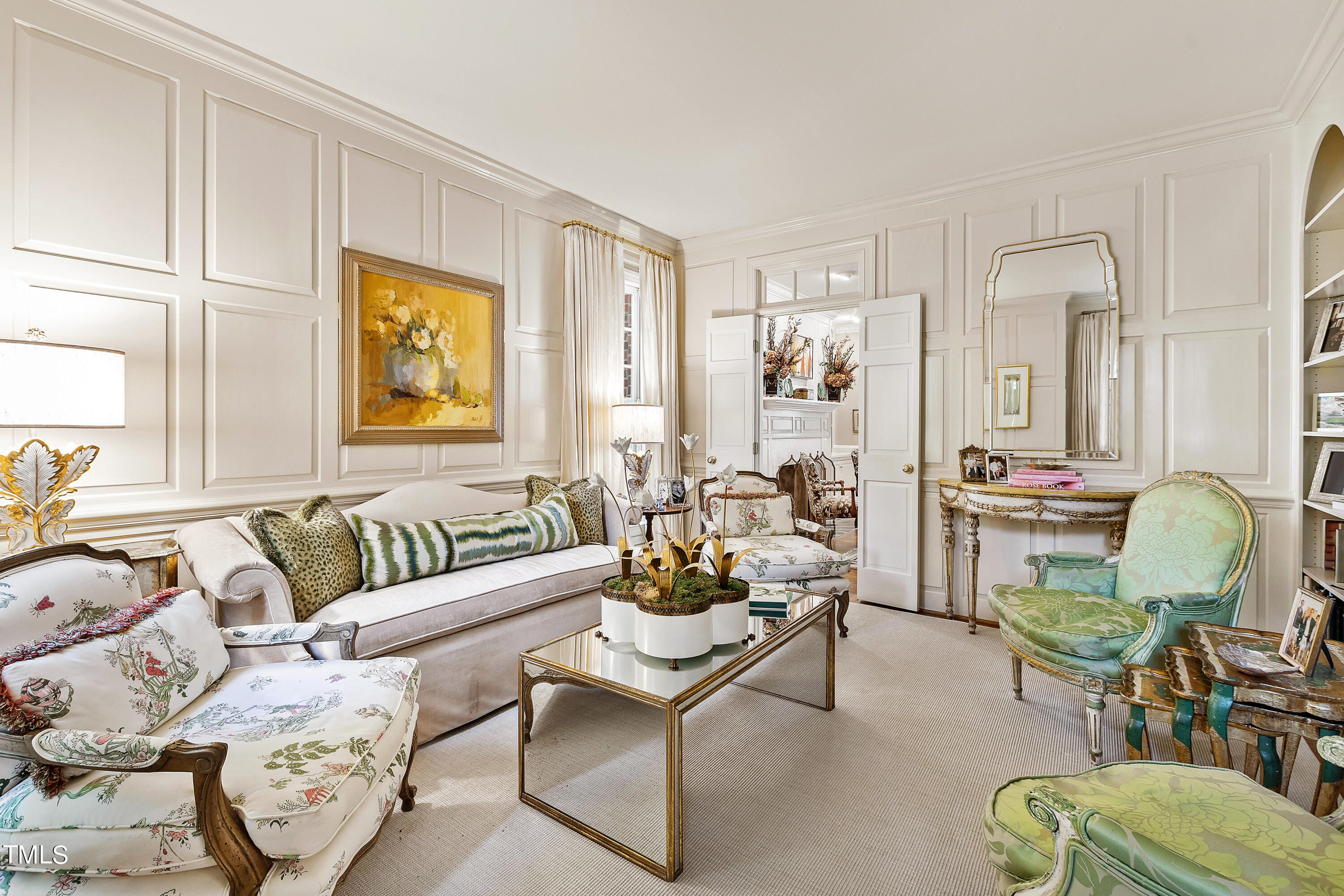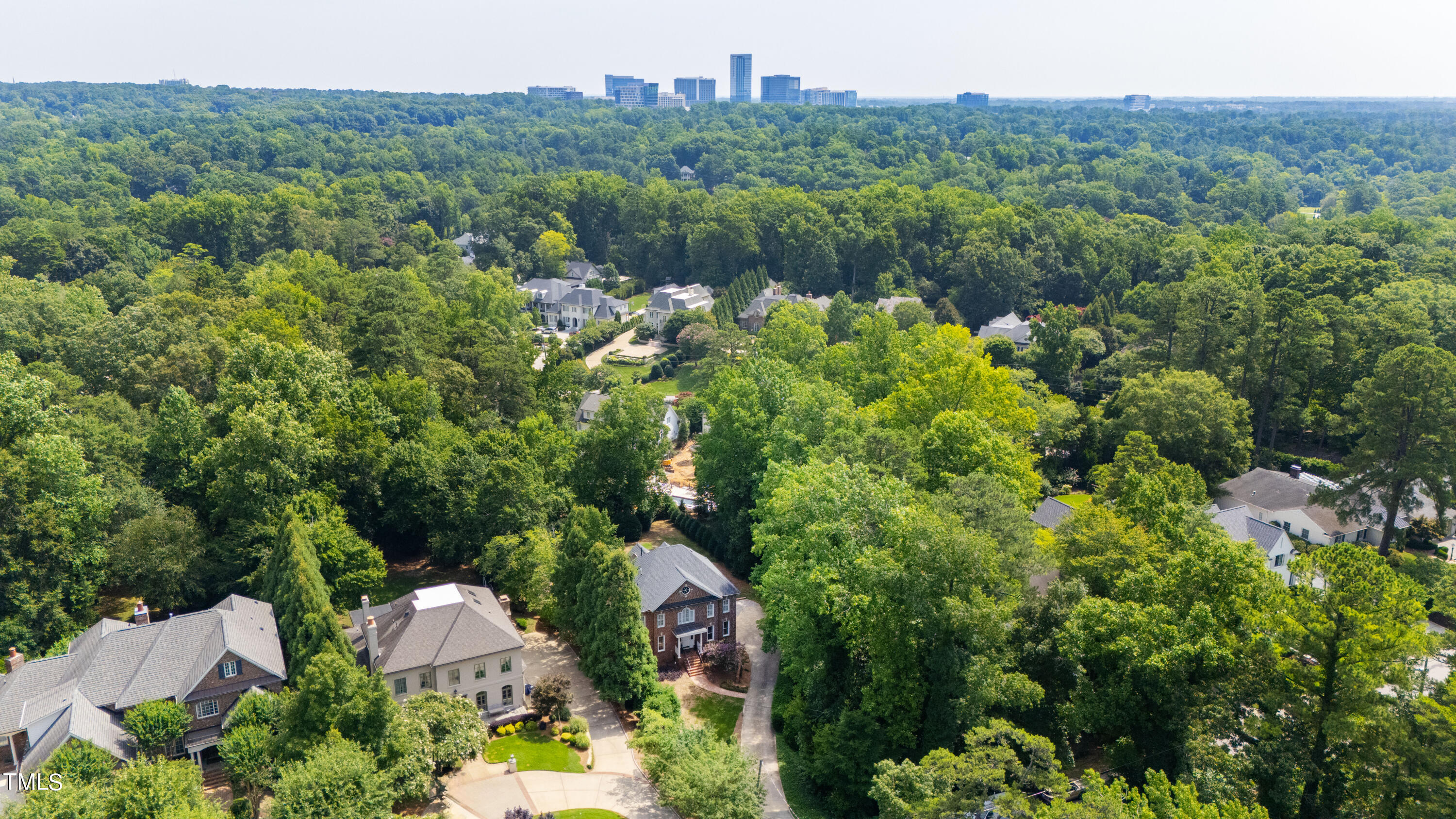 Perfectly situated on a large .69-acre lot in the heart of Country Club Hills, one of Raleigh's most beautiful neighborhoods, this stately Georgian brick home is a perfect combination of timeless architecture and modern amenities. Leaded-glass side lights and transom surround the front door welcoming its guests to a stunning, marble-floored foyer with an understated elegance. The formal living/library and dining rooms flanking the grand entryway offer beautiful entertaining spaces while the comfortable family room and sunroom provide cozy spaces for family events. Nine-ft. ceilings on both levels add to the warm, classic style of the home. One of the highlights is the covered porch which spans the entire rear of the home and features a masonry, wood-burning fireplace and built-in ceiling heaters for enjoying cool fall evenings. The second level boasts four graciously-sized bedrooms including a primary suite with vaulted ceilings, huge walk-in closet and luxurious bath. A lower-level bonus room offers a myriad of possibilities...theater room, home office or recreation room. Two-car garage with large storage room. Over 650+ square feet of unfinished space in the walk-up attic is great for easy-access storage or future expansion. Enjoy a convenient location equidistant to great shopping centers...North Hills, The Village District and Crabtree Valley Mall. Also, a quick trip to the Greenway, Root Elementary and St. David's School.