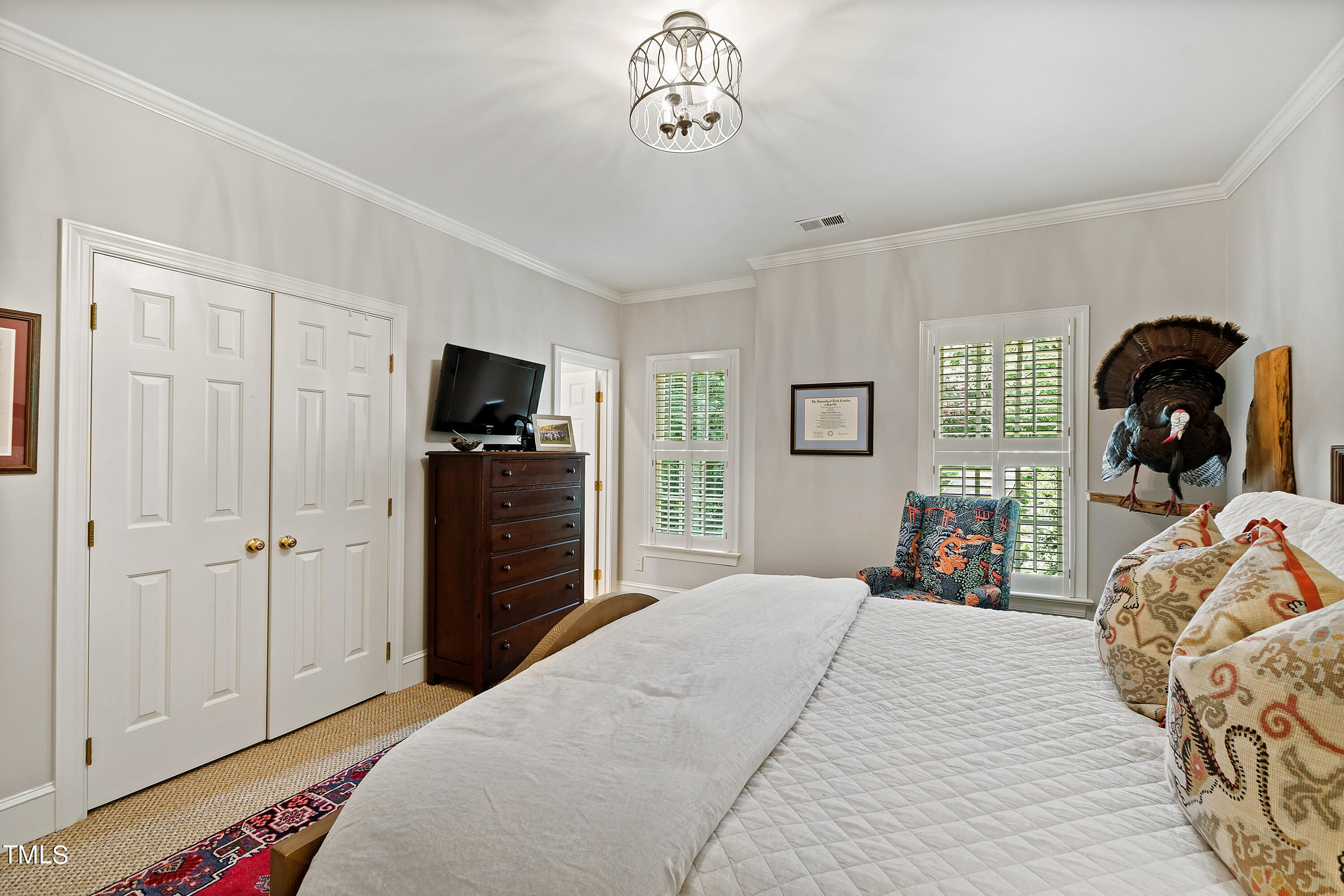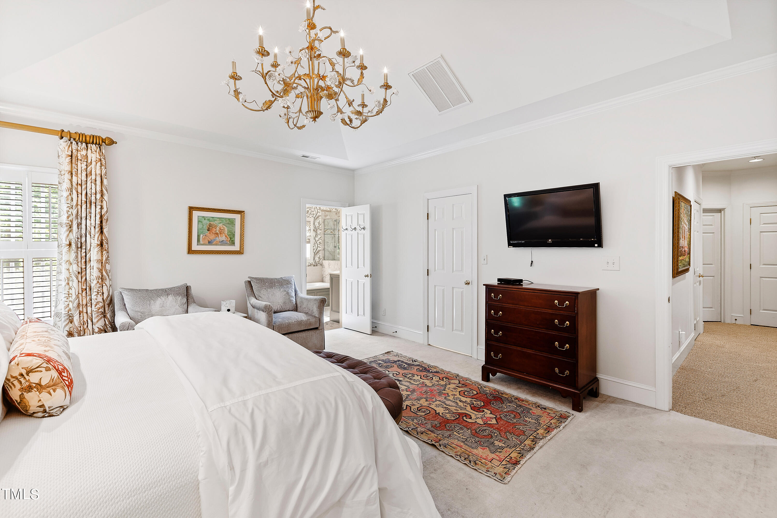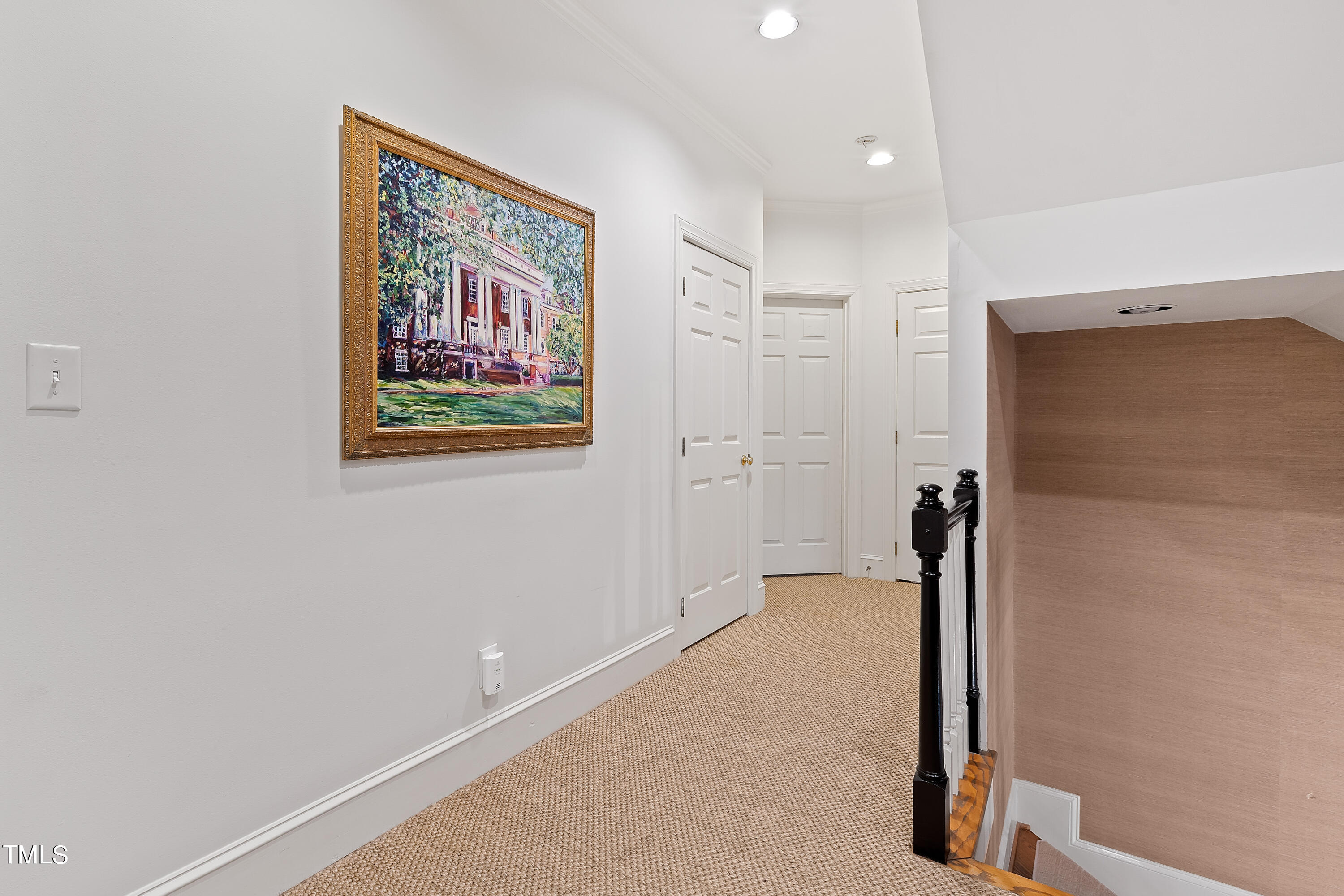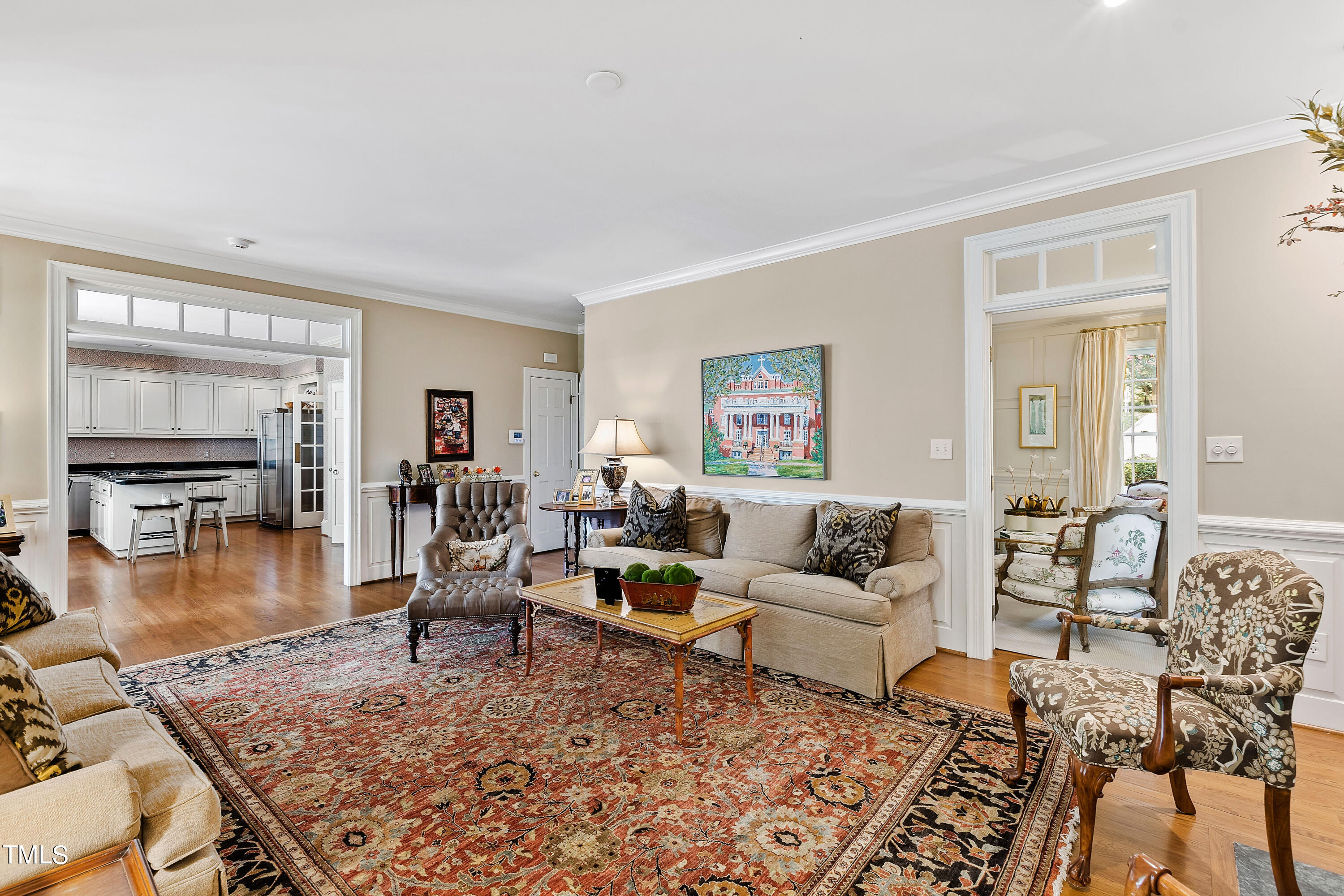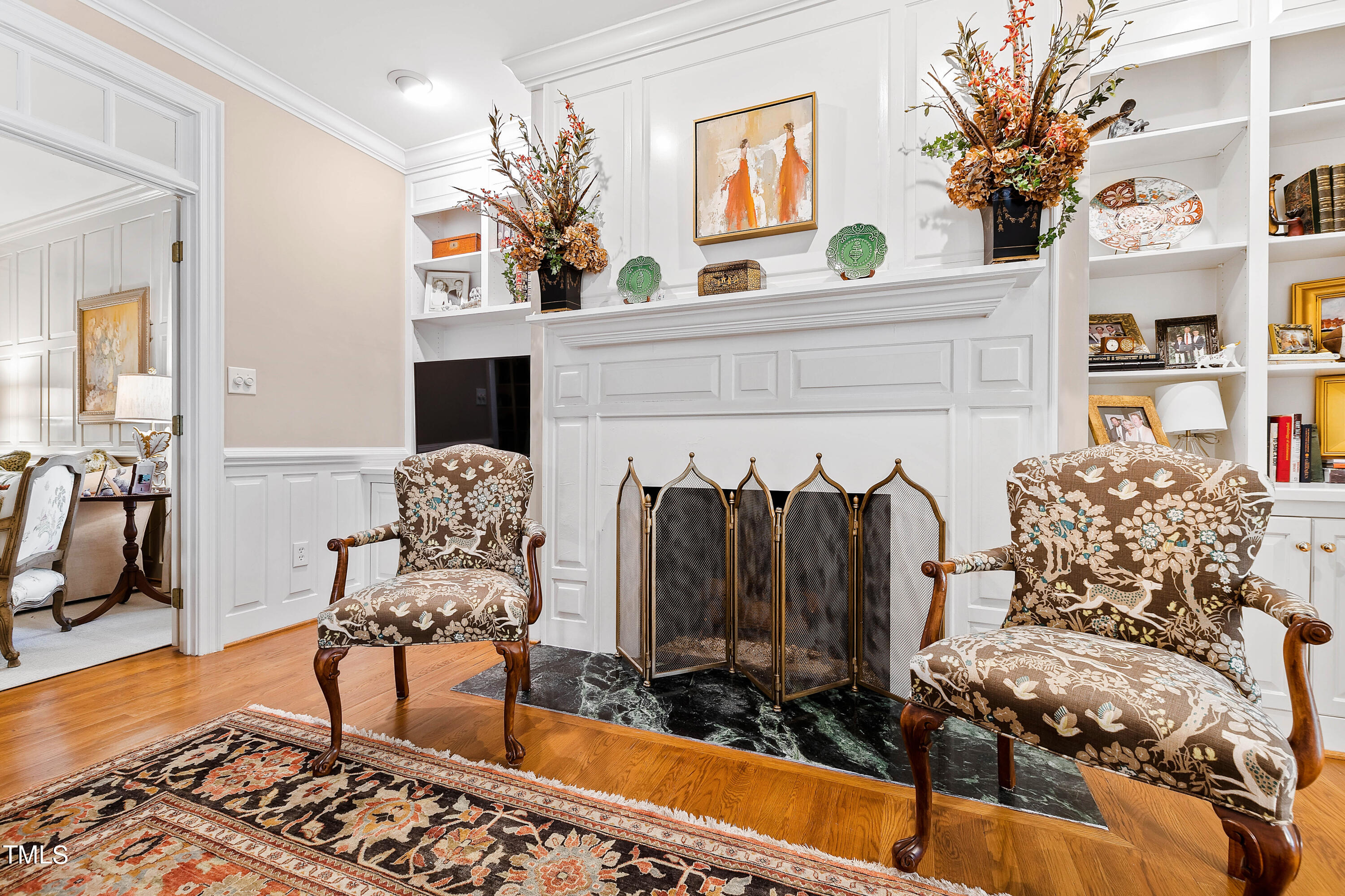 Perfectly situated on a large .69-acre lot in the heart of Country Club Hills, one of Raleigh's most beautiful neighborhoods, this stately Georgian brick home is a perfect combination of timeless architecture and modern amenities. Leaded-glass side lights and transom surround the front door welcoming its guests to a stunning, marble-floored foyer with an understated elegance. The formal living/library and dining rooms flanking the grand entryway offer beautiful entertaining spaces while the comfortable family room and sunroom provide cozy spaces for family events. Nine-ft. ceilings on both levels add to the warm, classic style of the home. One of the highlights is the covered porch which spans the entire rear of the home and features a masonry, wood-burning fireplace and built-in ceiling heaters for enjoying cool fall evenings. The second level boasts four graciously-sized bedrooms including a primary suite with vaulted ceilings, huge walk-in closet and luxurious bath. A lower-level bonus room offers a myriad of possibilities...theater room, home office or recreation room. Two-car garage with large storage room. Over 650+ square feet of unfinished space in the walk-up attic is great for easy-access storage or future expansion. Enjoy a convenient location equidistant to great shopping centers...North Hills, The Village District and Crabtree Valley Mall. Also, a quick trip to the Greenway, Root Elementary and St. David's School.