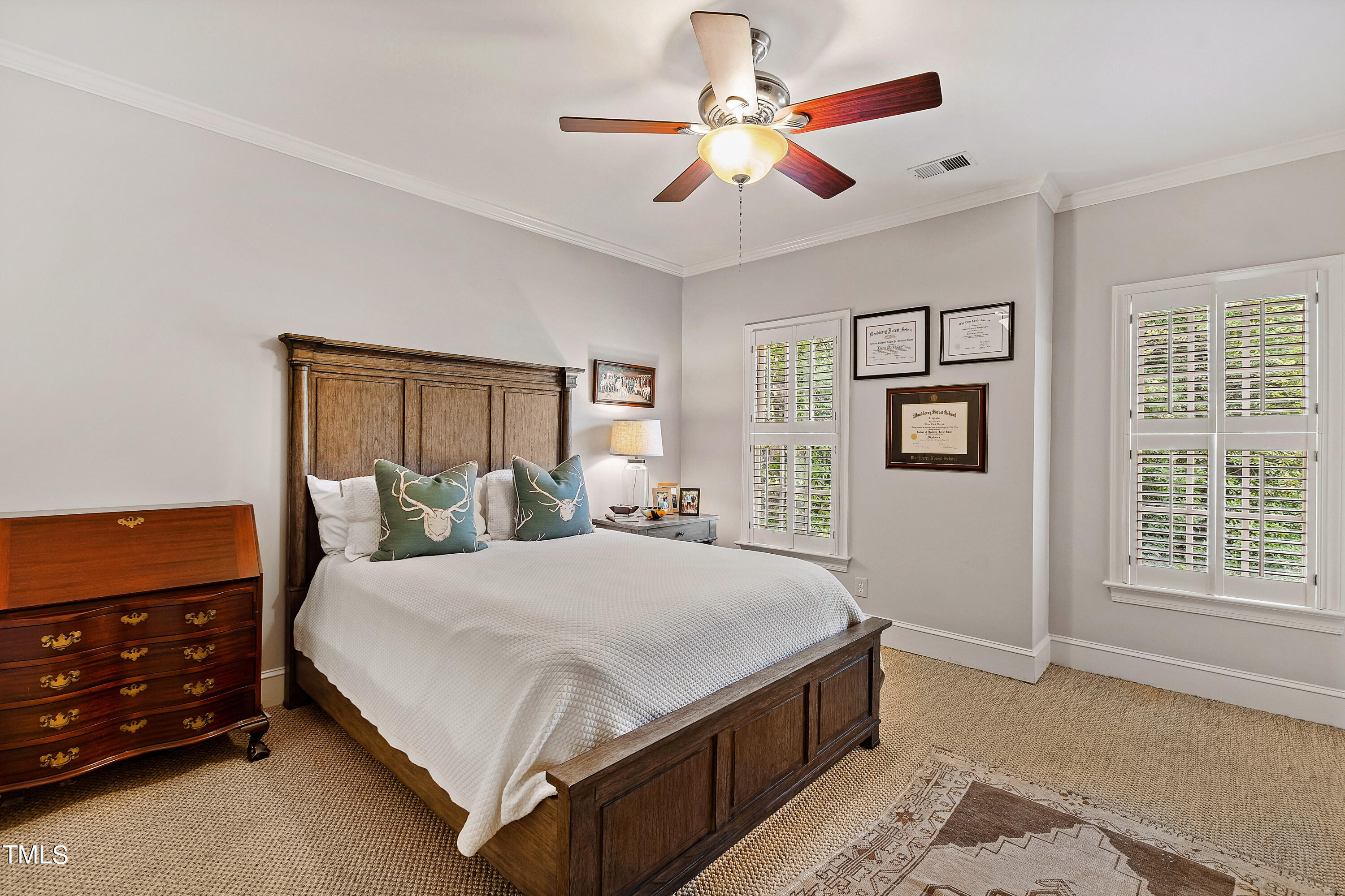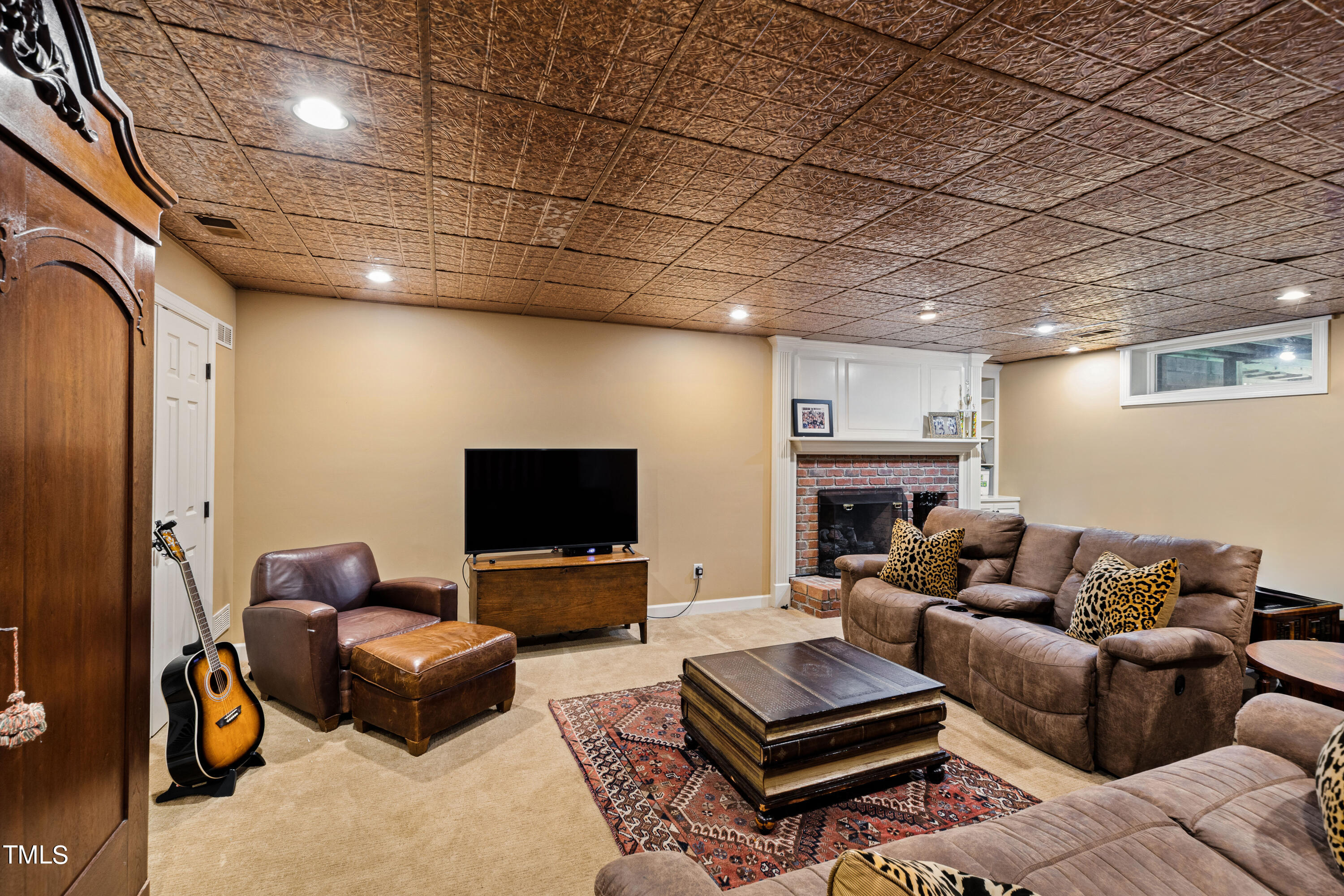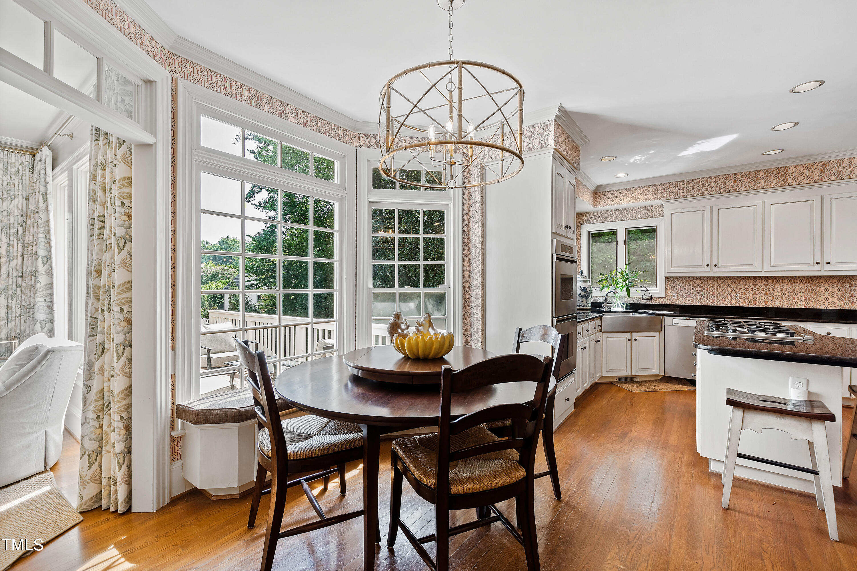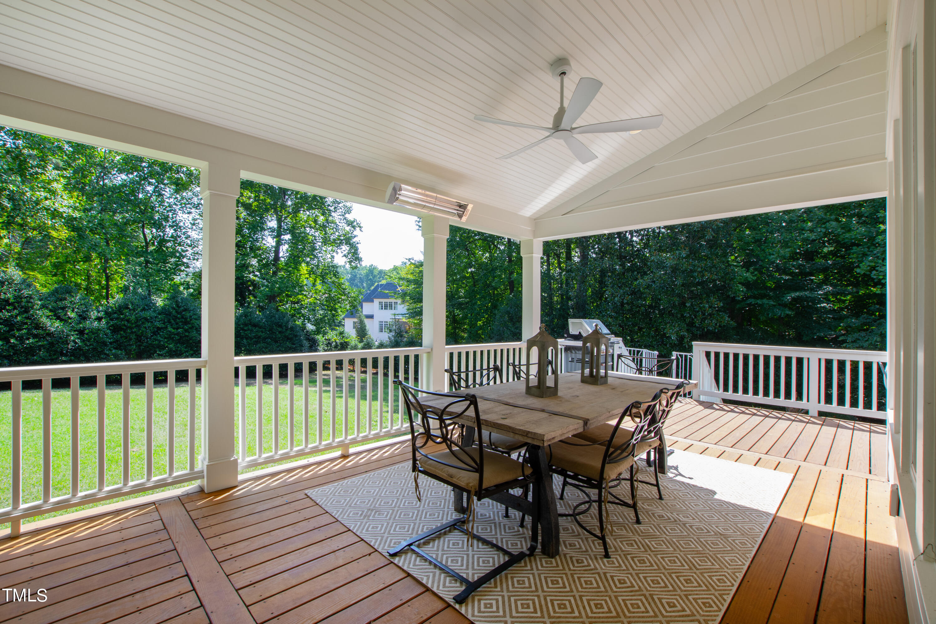 Perfectly situated on a large .69-acre lot in the heart of Country Club Hills, one of Raleigh's most beautiful neighborhoods, this stately Georgian brick home is a perfect combination of timeless architecture and modern amenities. Leaded-glass side lights and transom surround the front door welcoming its guests to a stunning, marble-floored foyer with an understated elegance. The formal living/library and dining rooms flanking the grand entryway offer beautiful entertaining spaces while the comfortable family room and sunroom provide cozy spaces for family events. Nine-ft. ceilings on both levels add to the warm, classic style of the home. One of the highlights is the covered porch which spans the entire rear of the home and features a masonry, wood-burning fireplace and built-in ceiling heaters for enjoying cool fall evenings. The second level boasts four graciously-sized bedrooms including a primary suite with vaulted ceilings, huge walk-in closet and luxurious bath. A lower-level bonus room offers a myriad of possibilities...theater room, home office or recreation room. Two-car garage with large storage room. Over 650+ square feet of unfinished space in the walk-up attic is great for easy-access storage or future expansion. Enjoy a convenient location equidistant to great shopping centers...North Hills, The Village District and Crabtree Valley Mall. Also, a quick trip to the Greenway, Root Elementary and St. David's School.