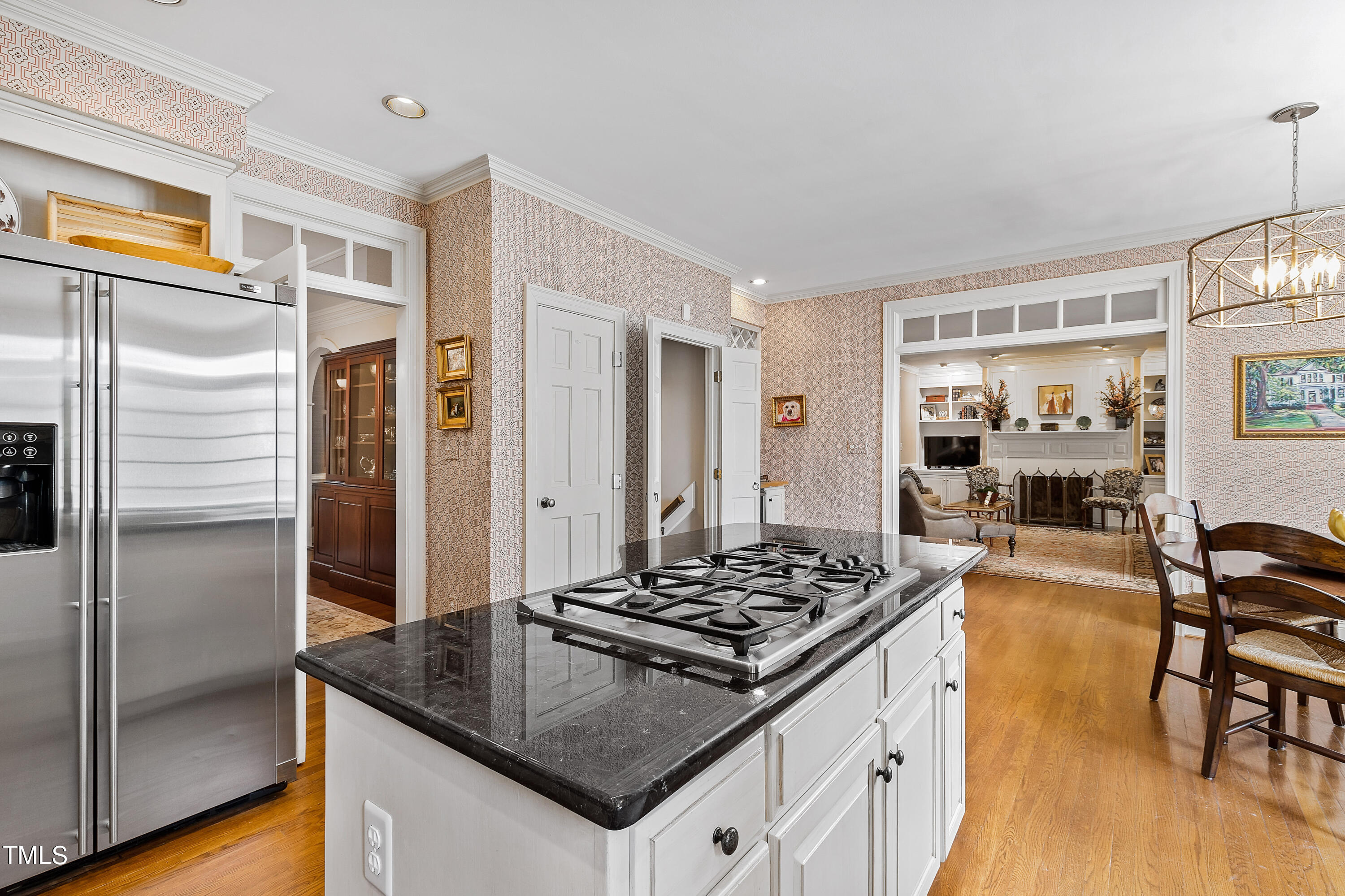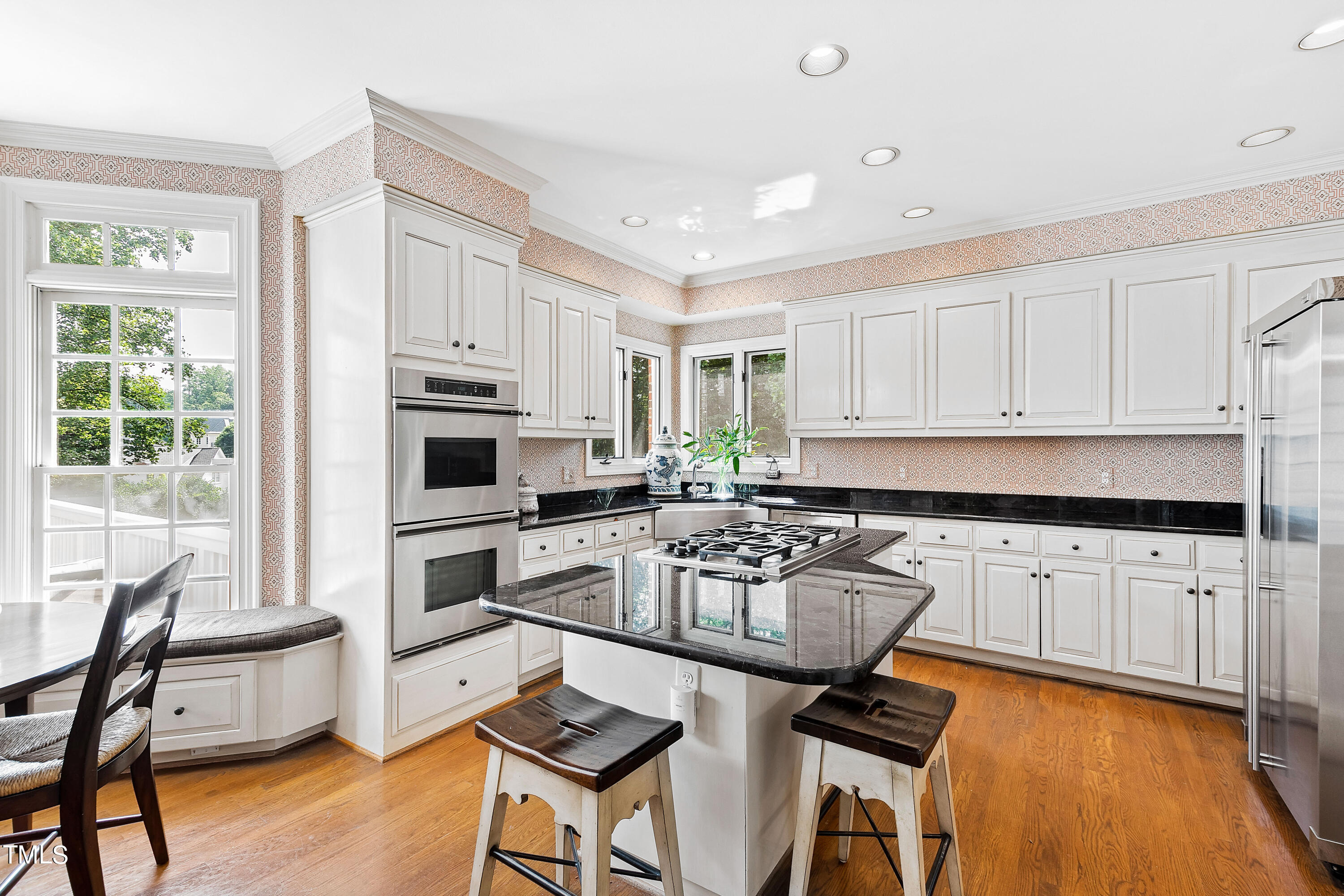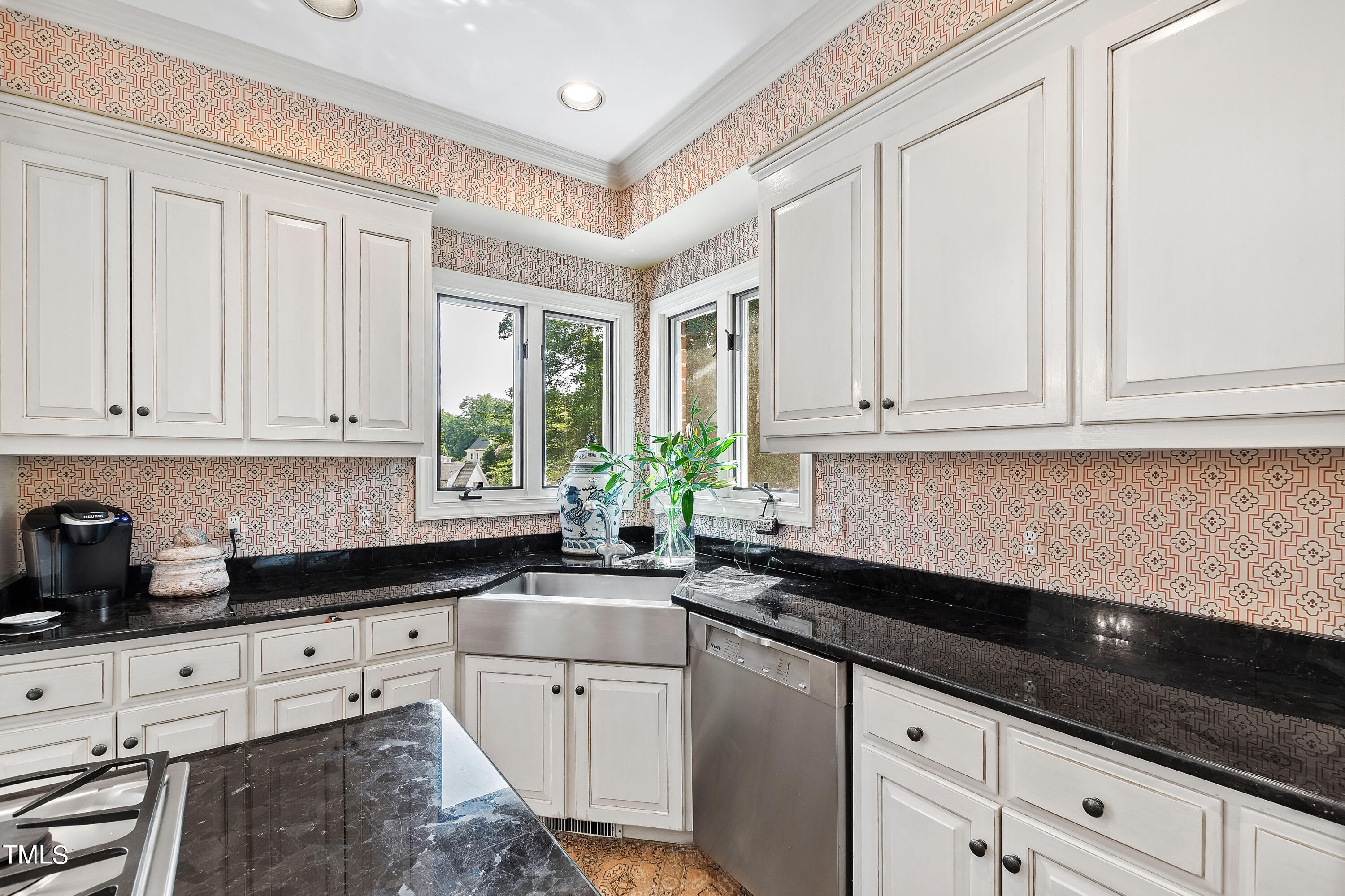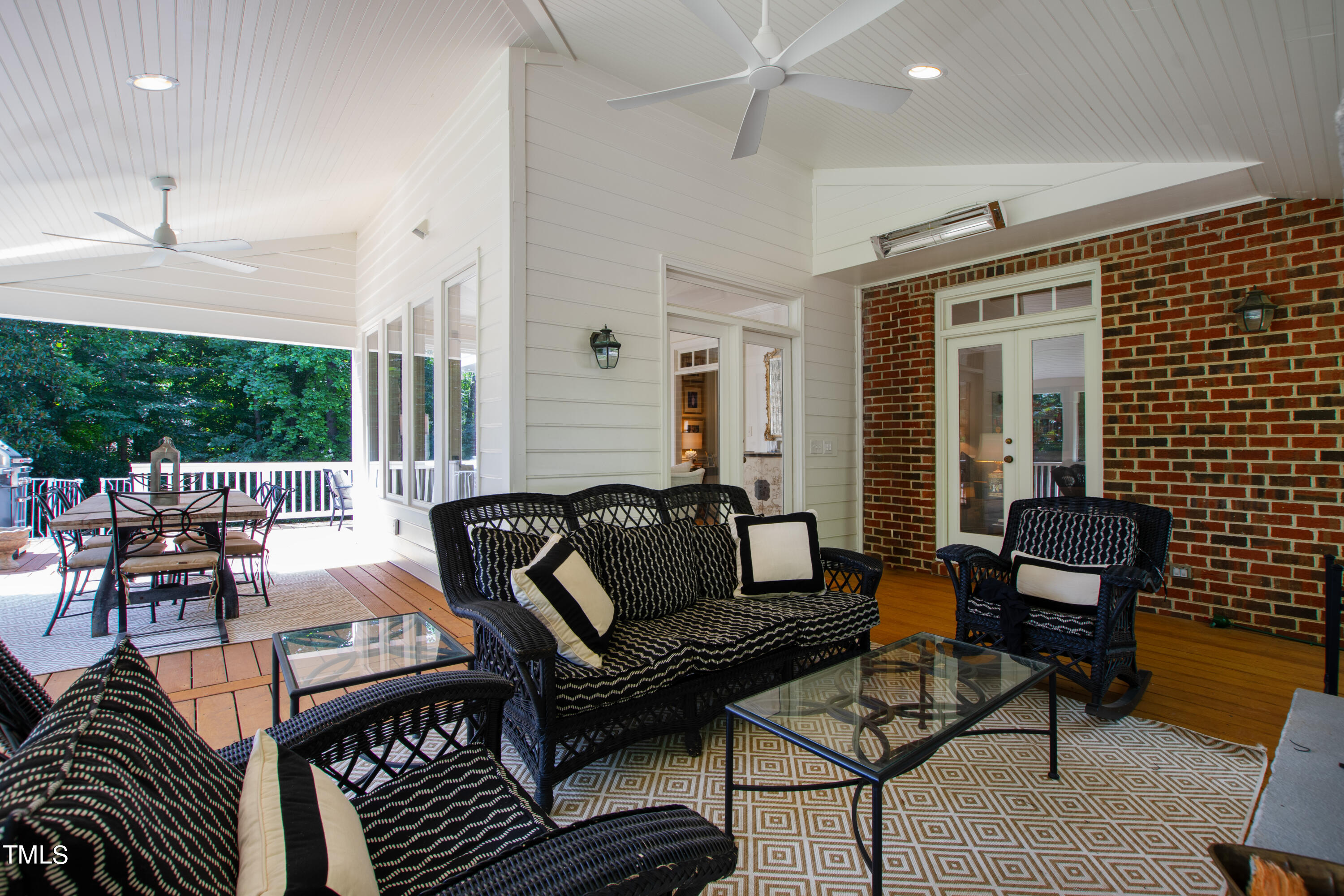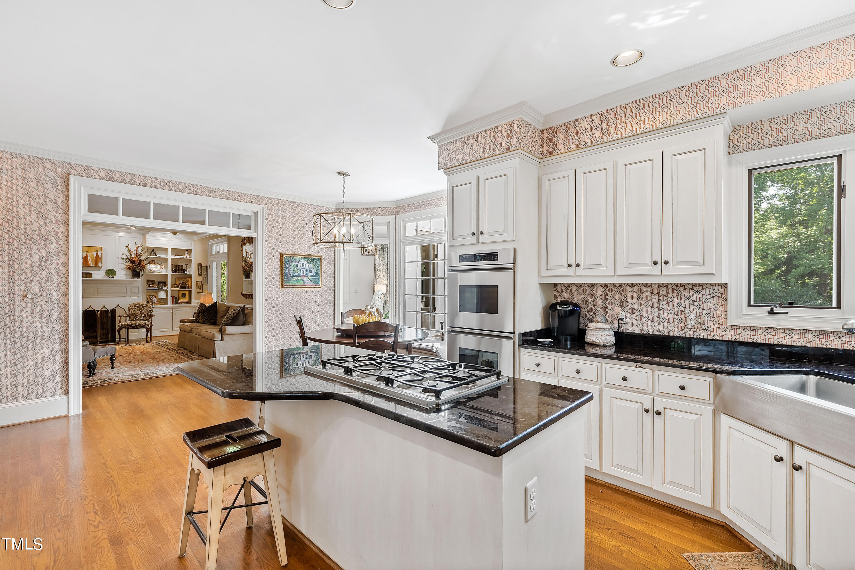 Perfectly situated on a large .69-acre lot in the heart of Country Club Hills, one of Raleigh's most beautiful neighborhoods, this stately Georgian brick home is a perfect combination of timeless architecture and modern amenities. Leaded-glass side lights and transom surround the front door welcoming its guests to a stunning, marble-floored foyer with an understated elegance. The formal living/library and dining rooms flanking the grand entryway offer beautiful entertaining spaces while the comfortable family room and sunroom provide cozy spaces for family events. Nine-ft. ceilings on both levels add to the warm, classic style of the home. One of the highlights is the covered porch which spans the entire rear of the home and features a masonry, wood-burning fireplace and built-in ceiling heaters for enjoying cool fall evenings. The second level boasts four graciously-sized bedrooms including a primary suite with vaulted ceilings, huge walk-in closet and luxurious bath. A lower-level bonus room offers a myriad of possibilities...theater room, home office or recreation room. Two-car garage with large storage room. Over 650+ square feet of unfinished space in the walk-up attic is great for easy-access storage or future expansion. Enjoy a convenient location equidistant to great shopping centers...North Hills, The Village District and Crabtree Valley Mall. Also, a quick trip to the Greenway, Root Elementary and St. David's School.