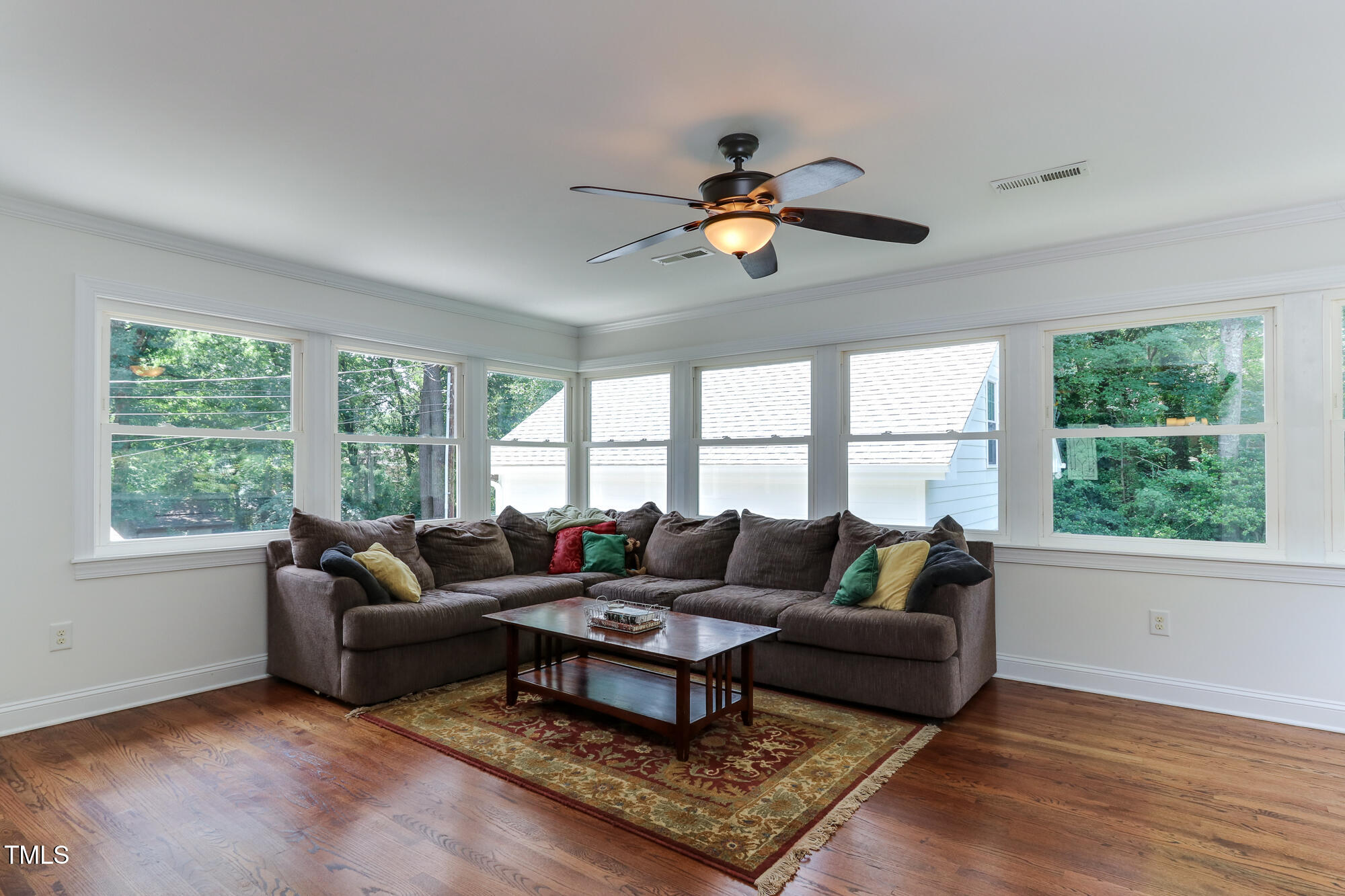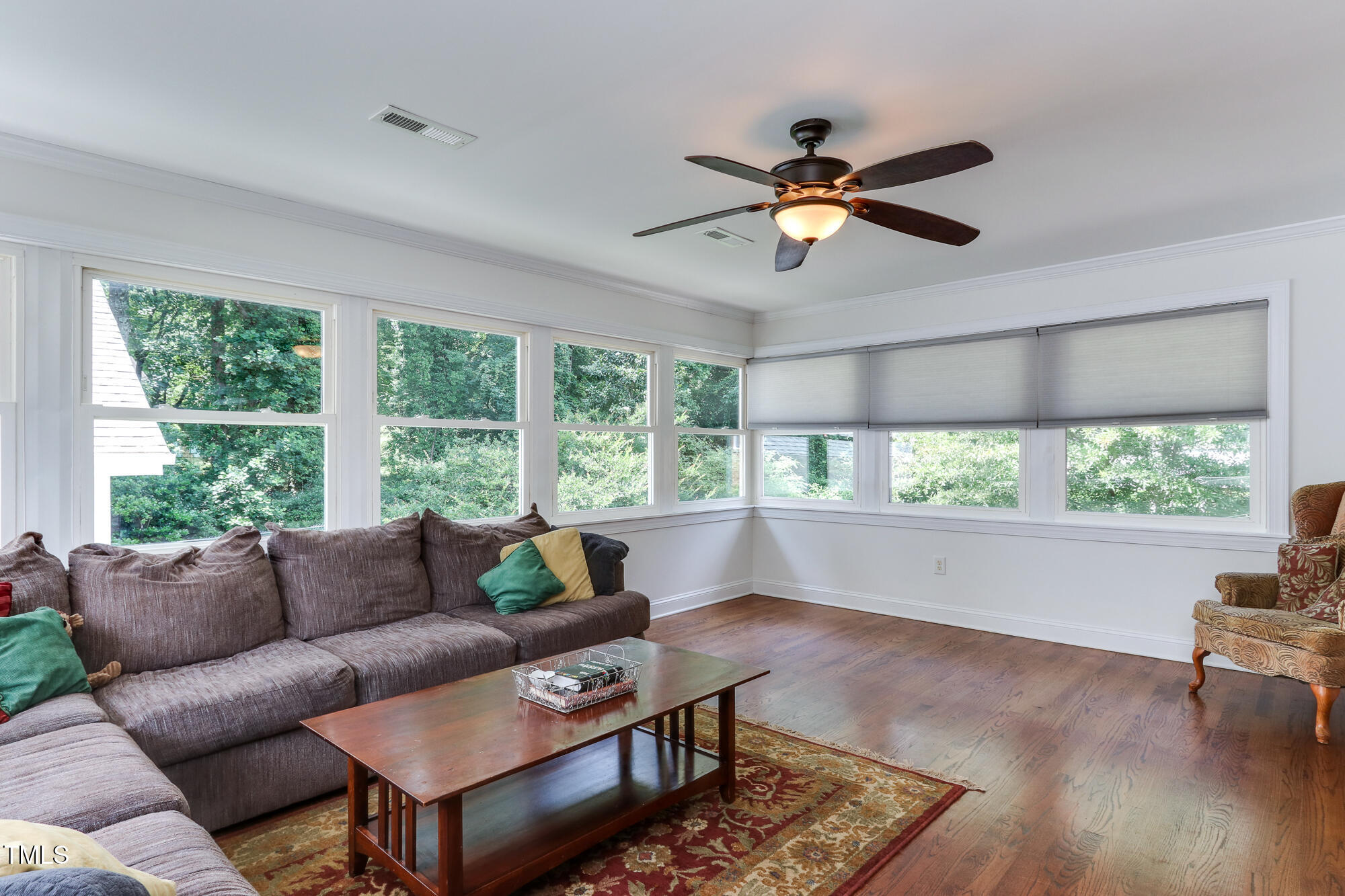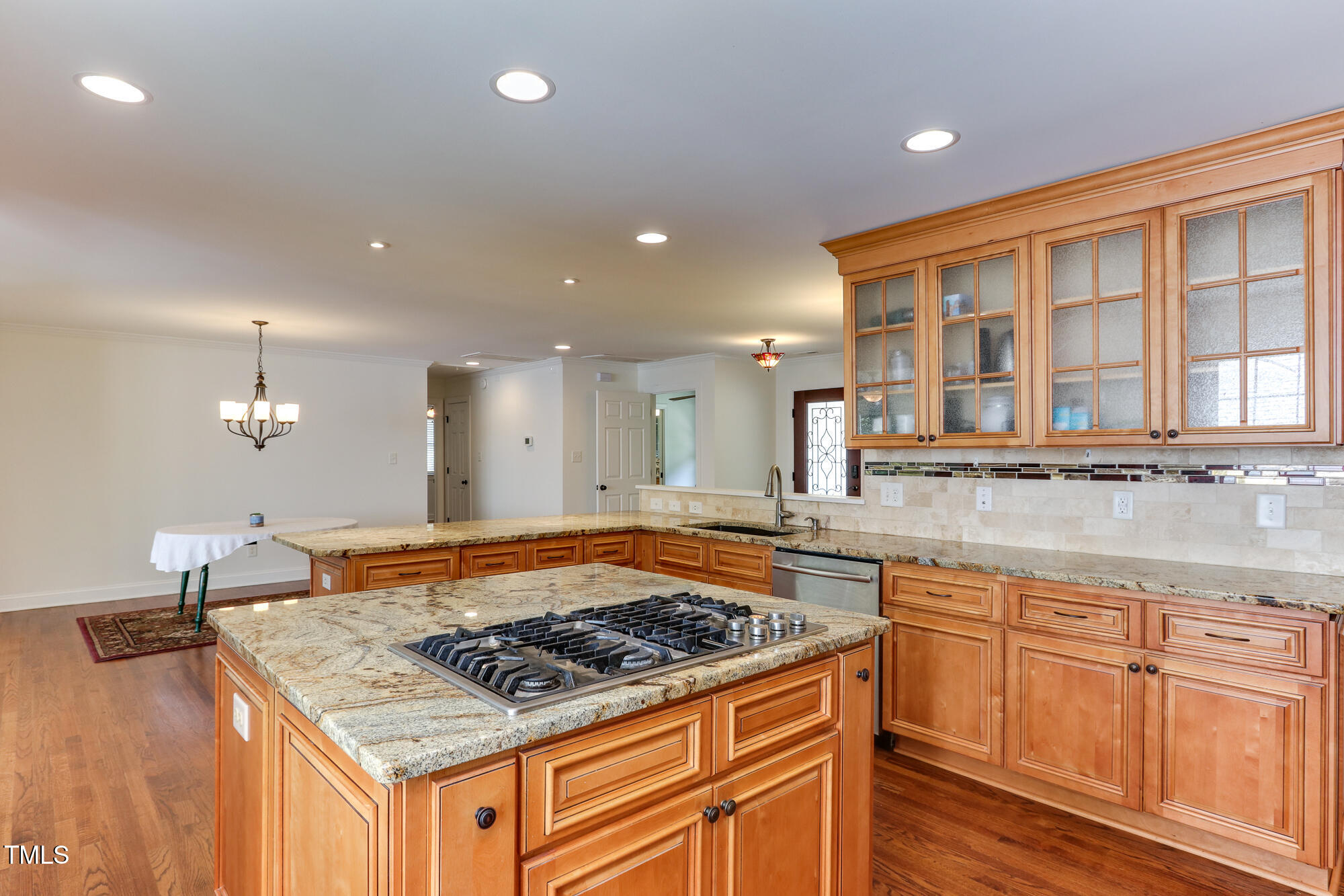 Inside, the open-concept kitchen boasts abundant cabinet space, sleek granite countertops, double convection wall oven and stainless steel appliances, flowing seamlessly into the sunroom for relaxed dining and entertaining. Site-finished hardwood floors add timeless elegance to the main level.