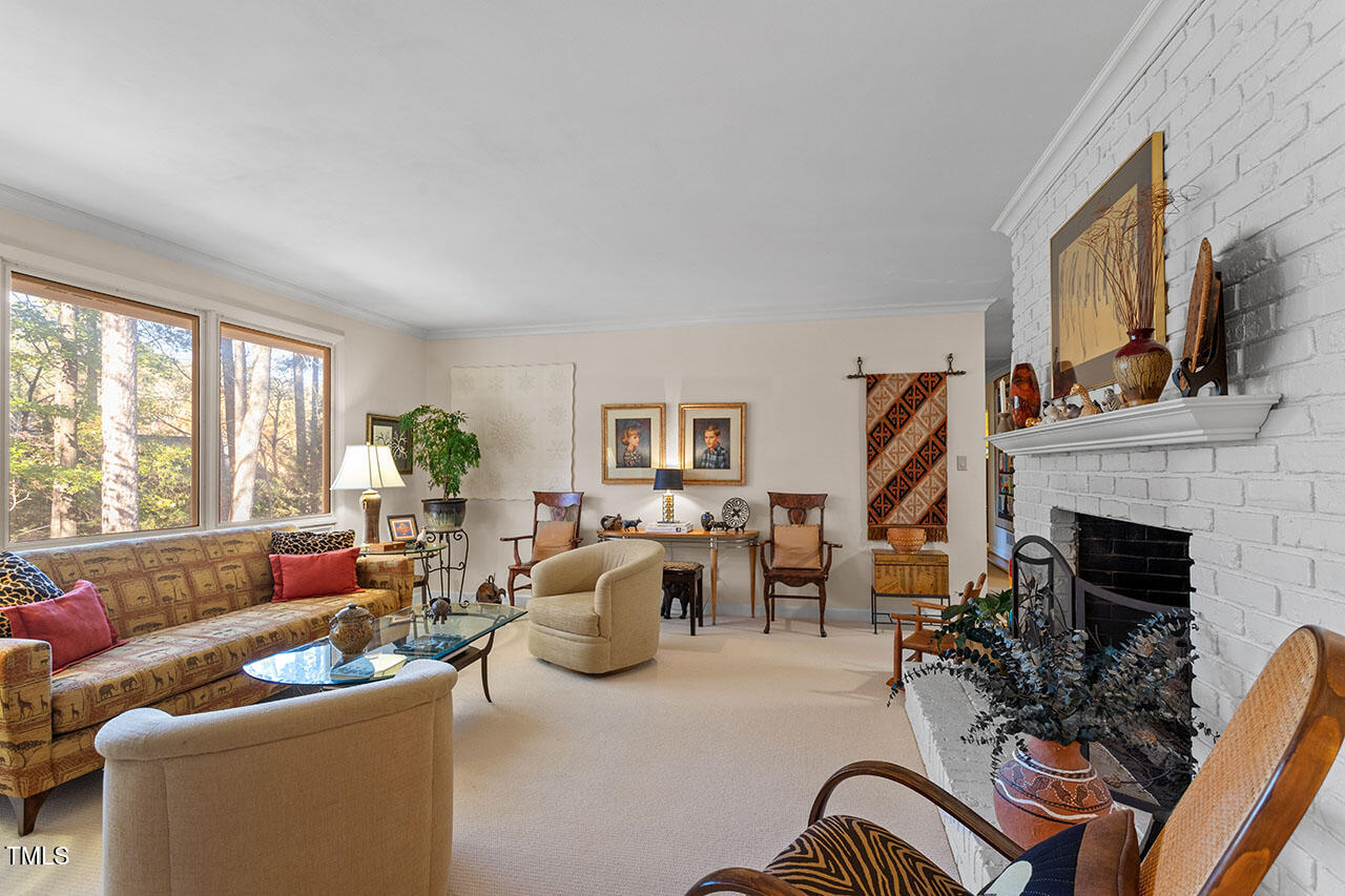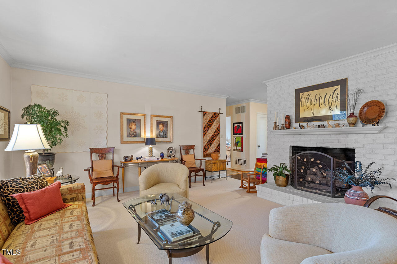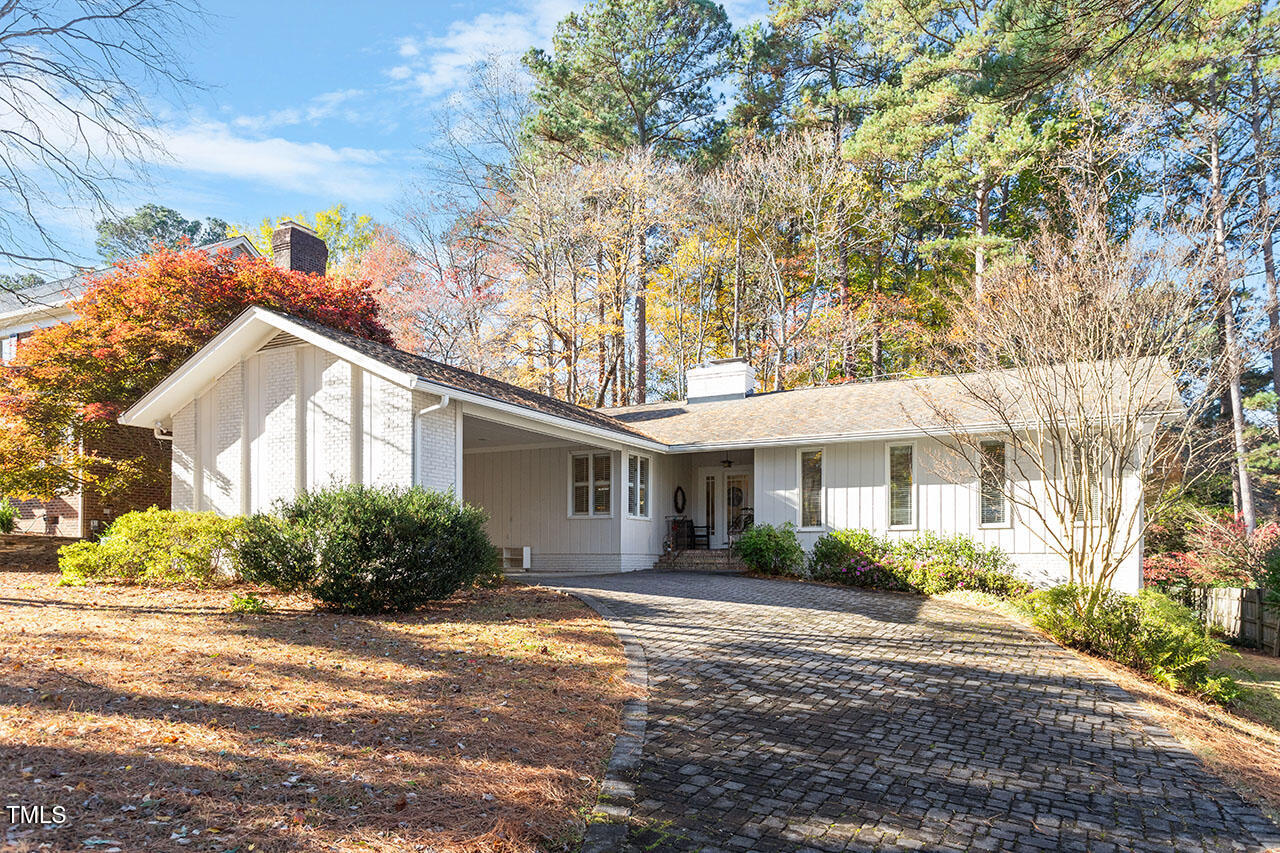 Expansive and architecturally interesting, this exceptionally well maintained home is on the market for the first time in over 35 years. Hard to find four-bedroom ranch with a full basement sits beautifully on a cul-de-sac lot in the sought after neighborhood of Coley Forest. A handsome brick paver driveway brings you to the covered front porch and adjacent carport. Once inside the front door the gracious foyer flows well into the sunny family living areas. A large window in the living room overlooks the wooded backyard and features a fireplace with gas logs. The eat-in kitchen has granite countertops, white cabinets and a pantry. The cozy family room is perfect for relaxing and entertaining. A formal dining room opens to a lovely screened-in back porch. The large primary bedroom has a walk-in closet and updated bathroom. The two secondary bedrooms with good sized closets share a full bathroom. The walk-out finished basement has a multitude of possibilities. Currently there is a fourth bedroom, a renovated bathroom as well as a private office that could become a fifth bedroom if needed. A recreation room with a second fireplace and a game area with a pool table that remains. The laundry area, workshop and ample storage complete the space. Sought after schools and the excellent location near shopping, restaurants, medical facilities and highways make this a '' must see'' property. This timeless home is ready for its next chapter!