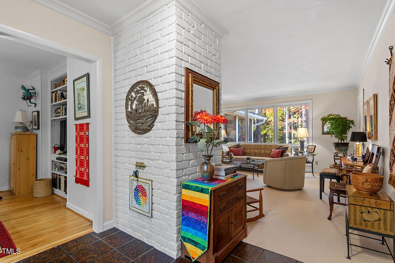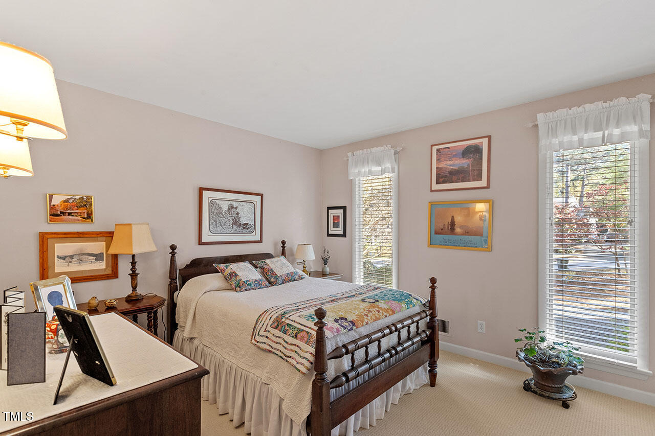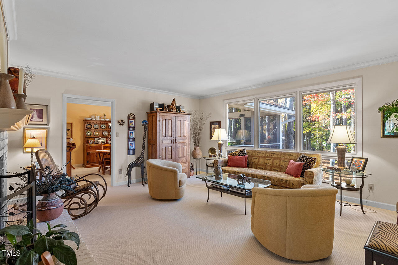 Expansive and architecturally interesting, this exceptionally well maintained home is on the market for the first time in over 35 years. Hard to find four-bedroom ranch with a full basement sits beautifully on a cul-de-sac lot in the sought after neighborhood of Coley Forest. A handsome brick paver driveway brings you to the covered front porch and adjacent carport. Once inside the front door the gracious foyer flows well into the sunny family living areas. A large window in the living room overlooks the wooded backyard and features a fireplace with gas logs. The eat-in kitchen has granite countertops, white cabinets and a pantry. The cozy family room is perfect for relaxing and entertaining. A formal dining room opens to a lovely screened-in back porch. The large primary bedroom has a walk-in closet and updated bathroom. The two secondary bedrooms with good sized closets share a full bathroom. The walk-out finished basement has a multitude of possibilities. Currently there is a fourth bedroom, a renovated bathroom as well as a private office that could become a fifth bedroom if needed. A recreation room with a second fireplace and a game area with a pool table that remains. The laundry area, workshop and ample storage complete the space. Sought after schools and the excellent location near shopping, restaurants, medical facilities and highways make this a '' must see'' property. This timeless home is ready for its next chapter!