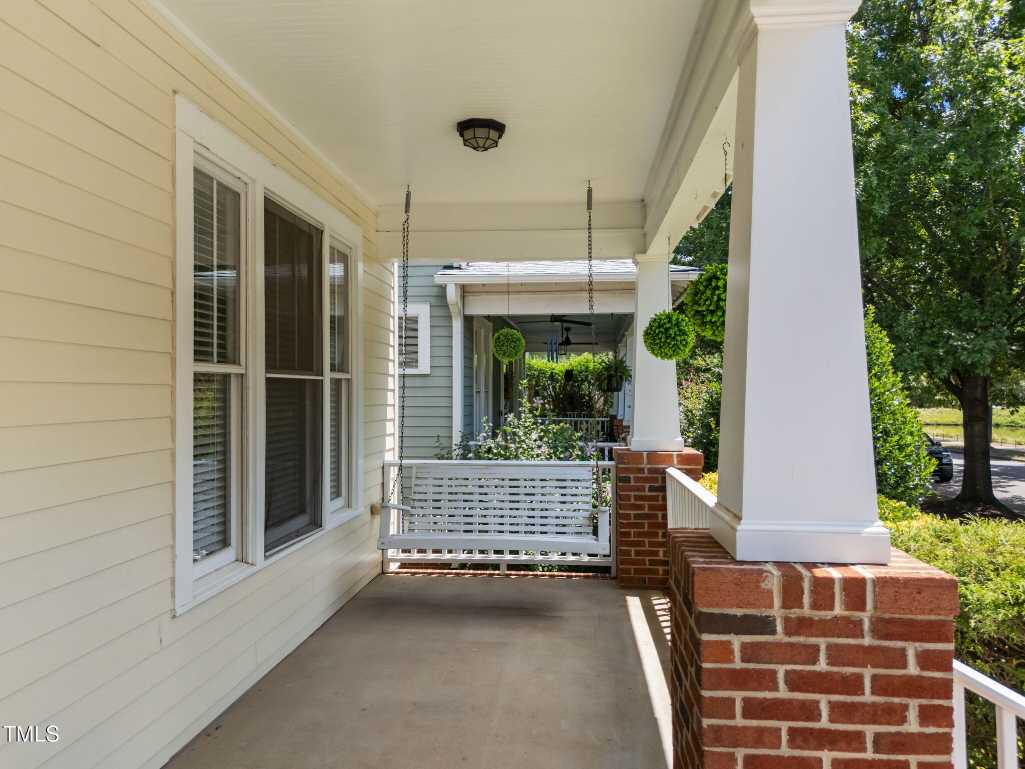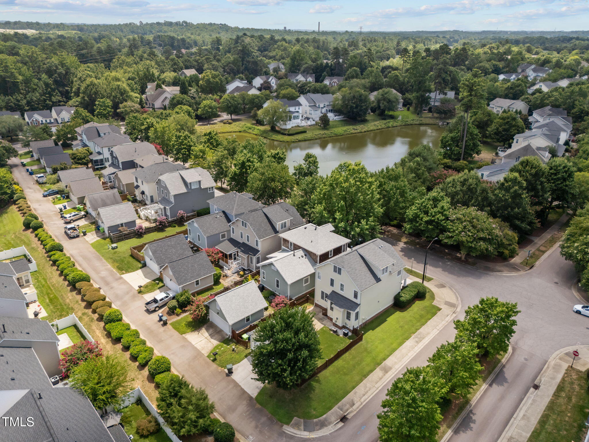 Beautiful & move-in ready Bedford charmer on corner lot w/a rocking chair front porch w/swing & view of the neighborhood pond! Gleaming hardwoods, fresh paint & tons of updates! The spacious & bright open floor plan features large family rm w/gas log fireplace, a chef's kitchen w/breakfast bar, gas range, granite countertops & breakfast nook and the elegant formal dining rm featuring wainscotting for a classic touch. The upstairs primary bedroom retreat boasts hardwoods, walk-in closet, dual sink vanity & soaking tub. 2 large secondary br's share full bath. On the finished 3rd fl, you will discover a large bonus rm and another bedroom! Fully fenced back yard & patio perfect for outdoor enjoyment. Fantastic community amenities include clubhouse, pool, tennis, playgrounds & greenway trails. Convenient to I540, dining, shopping & healthcare.