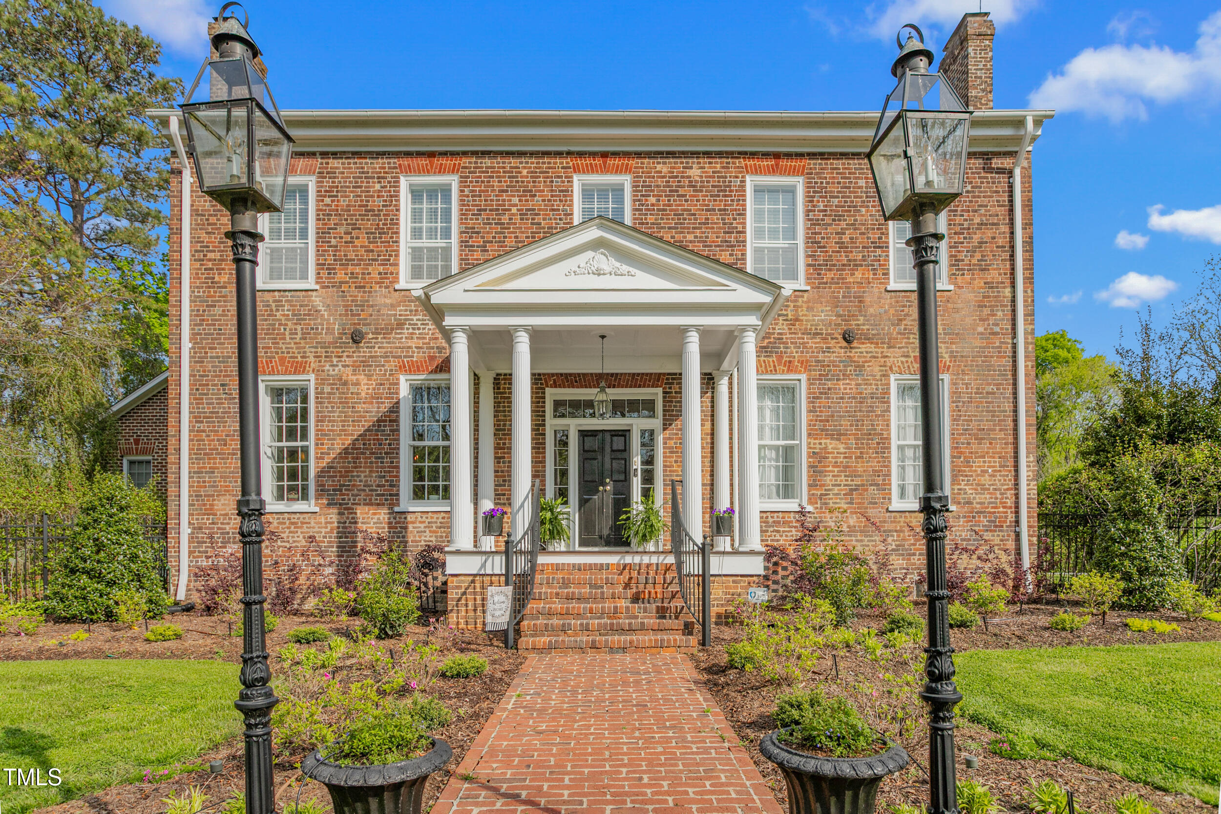 The Griffis-Patton House, a breathtaking Greek Revival estate built in 1839-1840, sits on over 10 picturesque acres overlooking Mebane-Graham Lake. As one of Alamance County's first brick homes, this nationally registered historic property seamlessly blends timeless elegance with modern comforts. The spacious grounds are perfect for horses and agriculture. The grand entry welcomes you into a meticulously restored interior featuring original plaster walls, beadboard ceilings, and exposed brick. The home boasts multiple living areas, including a library, a family room with vaulted wood ceilings, and a dining room with a gas fireplace. The chef's kitchen is a masterpiece, featuring exposed beams, granite countertops, and a Blue-Star gas stove. The expansive primary suite offers a spa-like bath and private patio leading to a 36,000-gallon pool. The beautifully landscaped grounds include formal gardens, a barn, a well-house, and a gazebo. Just minutes from major cities, this rare property offers a once-in-a-lifetime chance to own a piece of North Carolina history.