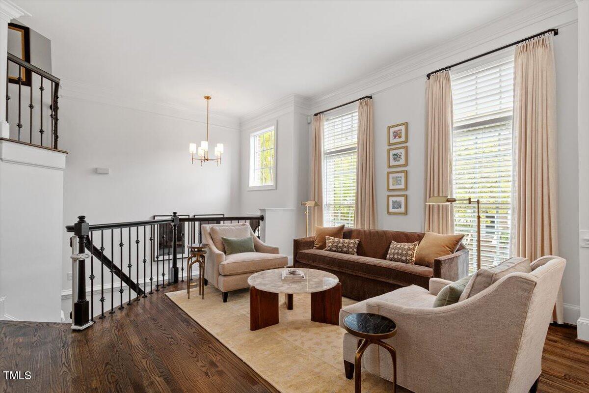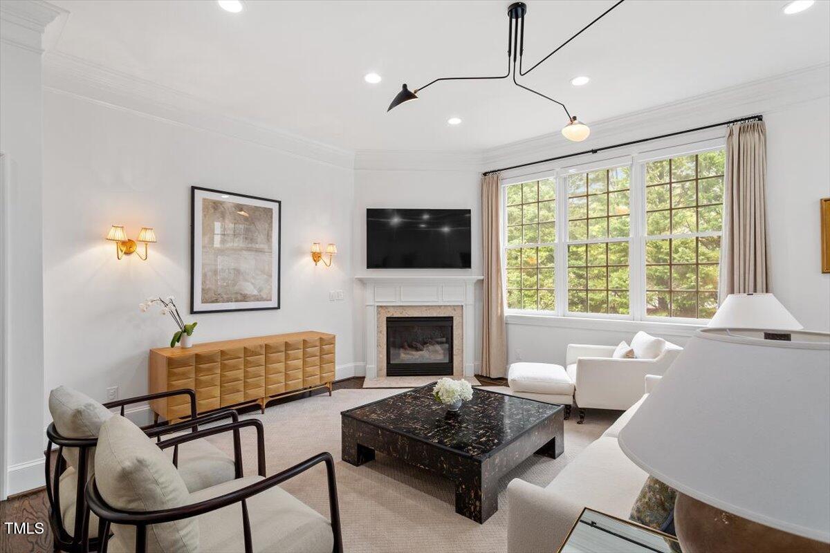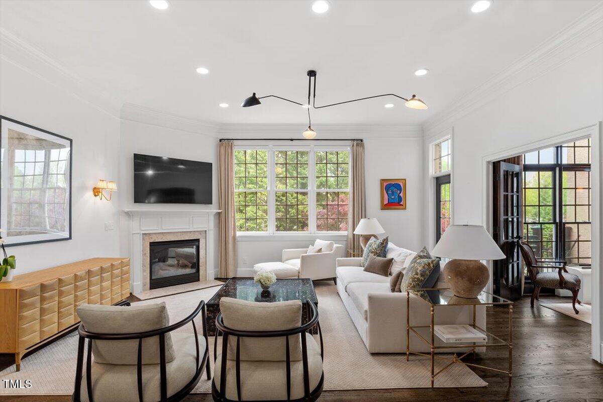 Boasting more upgrades than other recent sales in the community, this home has been polished from top to bottom with high-design finishes. The chef's kitchen is equal parts sleek and sophisticated with quartz counters, full-slab backsplash, professional-grade appliances, and a layout that makes entertaining a breeze. Whether you're hosting a dinner party in the elegant dining room, enjoying cocktails in the light-filled living room, or cozying up in the upstairs family room with a fireplace and views of the treetops--this home checks all the boxes.