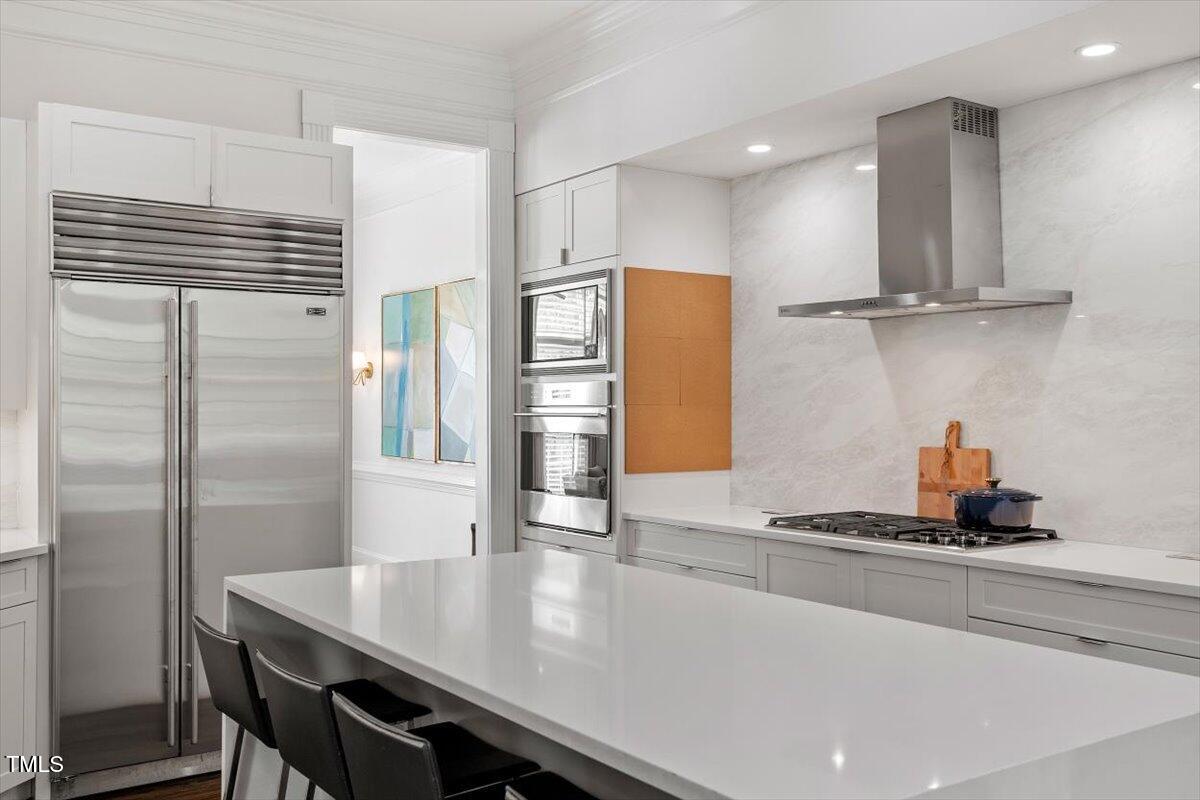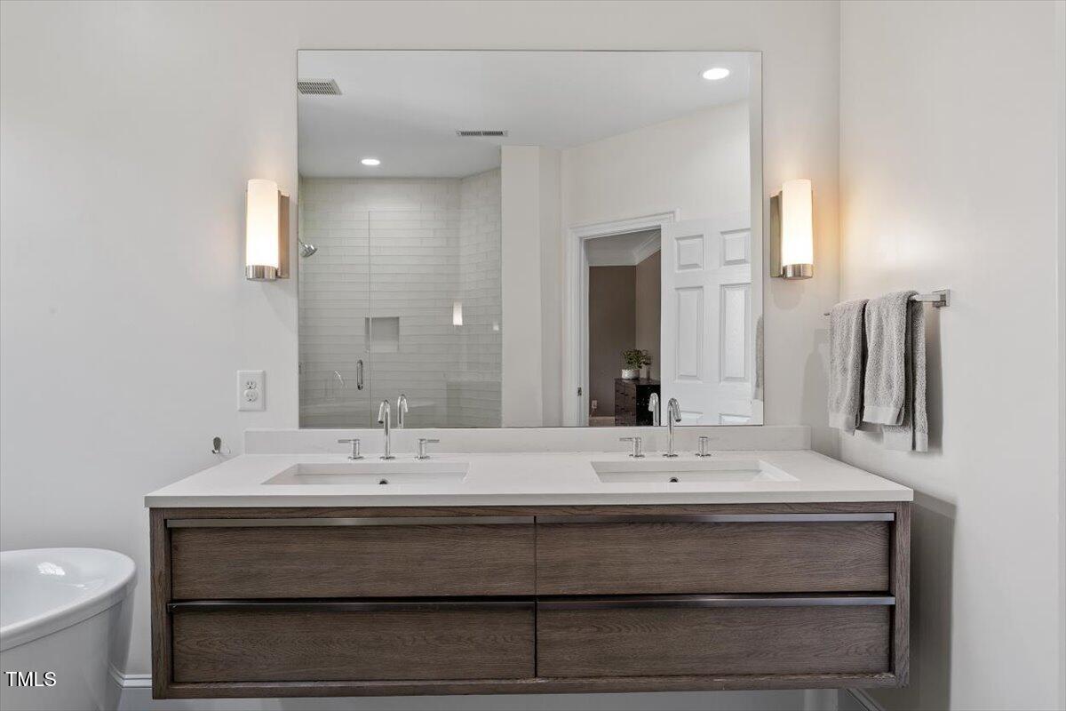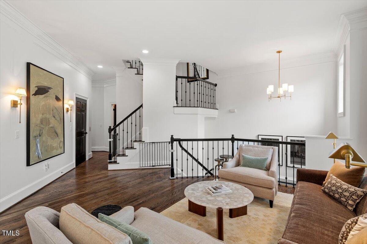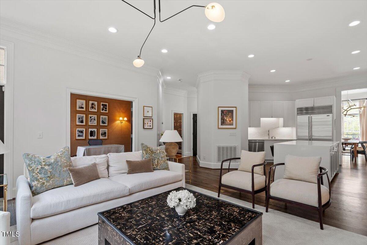 Boasting more upgrades than other recent sales in the community, this home has been polished from top to bottom with high-design finishes. The chef's kitchen is equal parts sleek and sophisticated with quartz counters, full-slab backsplash, professional-grade appliances, and a layout that makes entertaining a breeze. Whether you're hosting a dinner party in the elegant dining room, enjoying cocktails in the light-filled living room, or cozying up in the upstairs family room with a fireplace and views of the treetops--this home checks all the boxes.