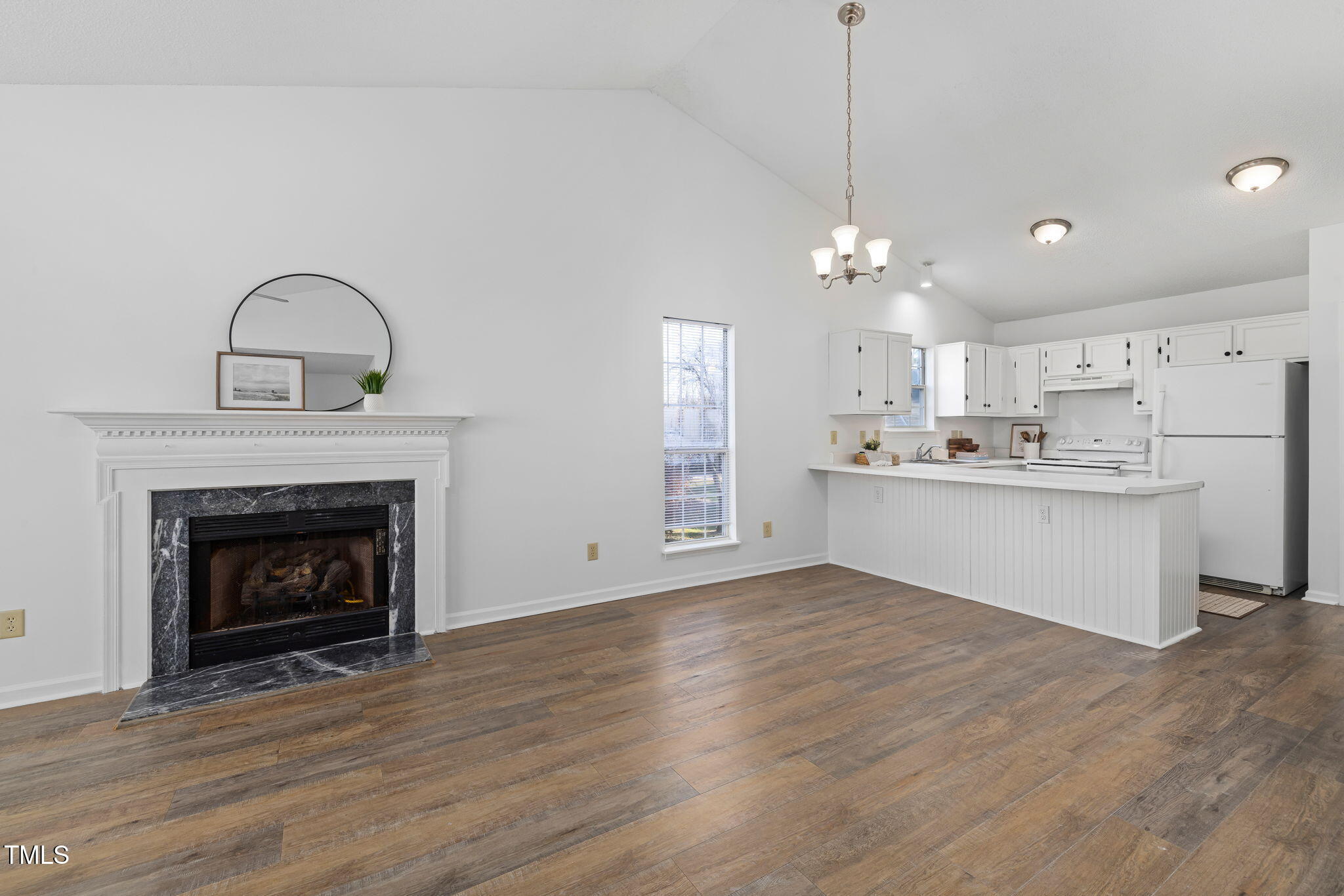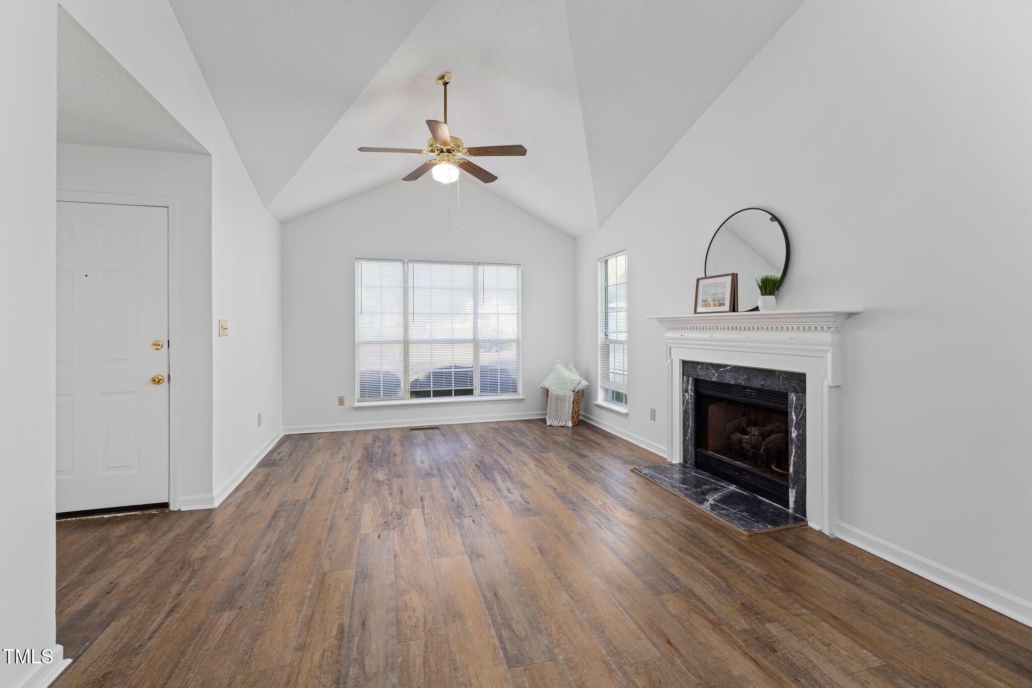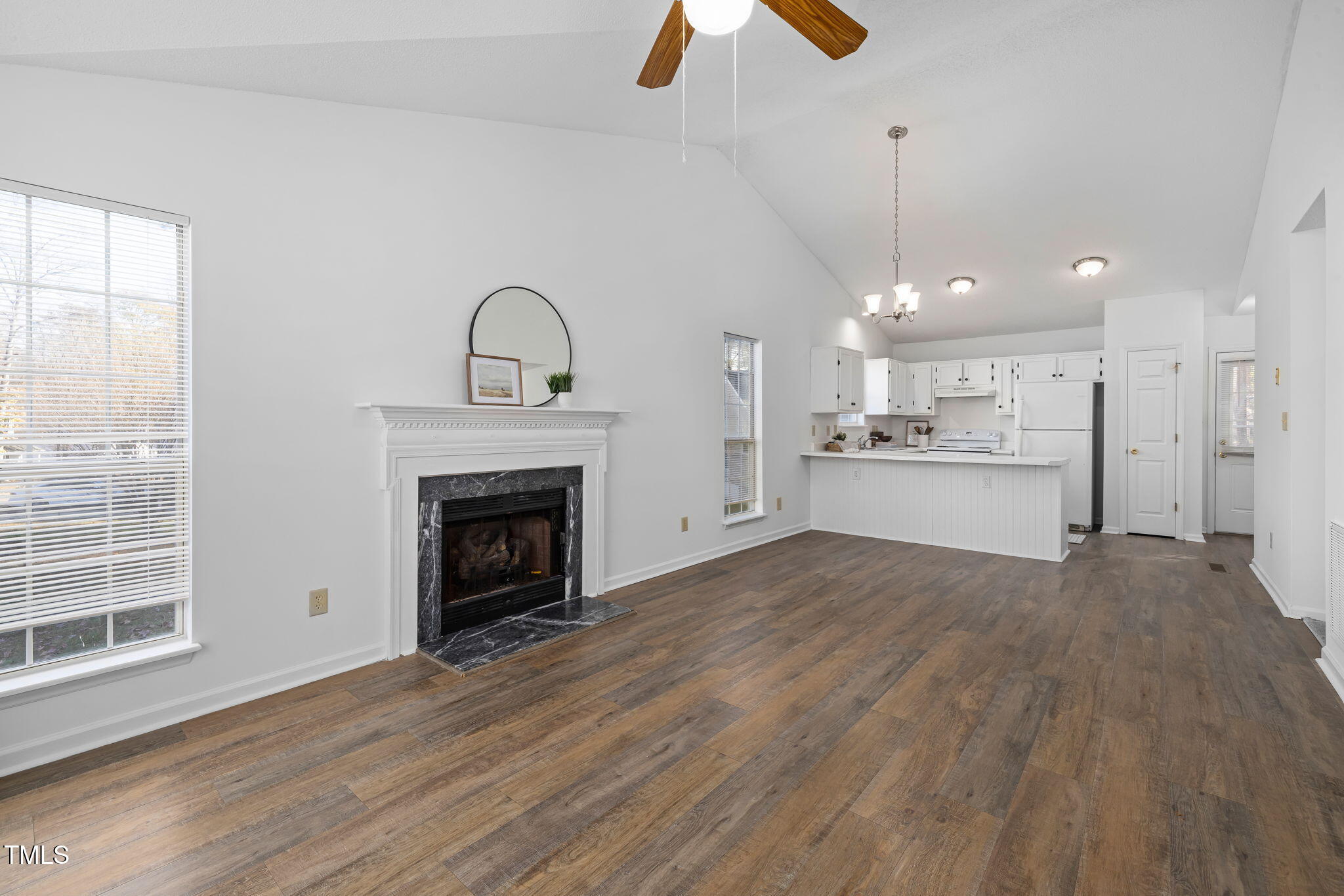 Nestled on a peaceful cul-de-sac in the heart of Downtown Holly Springs, this charming ranch home offers one-level living with a bright, open floor plan. The private, flat 0.22-acre lot backs to serene hardwood trees, providing a tranquil retreat while still being just steps away from the vibrant downtown area. Upon entry, you'll be greeted by a spacious vaulted living room featuring tall windows, a cozy fireplace, and LVP flooring installed in 2020. Fresh interior paint and brand-new carpet enhance the home's inviting atmosphere, making it move-in ready. The kitchen is both stylish and functional, with bright white wood cabinetry, chic black hardware, a double-basin stainless steel sink, and a pantry. The spacious primary bedroom is a peaceful retreat, complete with two closets and an ensuite bathroom with a dual vanity. Two generously sized guest rooms provide ample space, each featuring ceiling fans for added comfort. Outside, you'll find a covered front porch as well as a spacious back deck ideal for grilling and entertaining. Updates include a new HVAC system (2022) and a newer roof (2020), offering peace of mind and long-term durability. Located just one block from the shops, coffee spots, dining, and bars of Downtown Holly Springs, this home offers a truly walkable lifestyle. It's also just minutes from Womble Park, Bass Lake Park, and Ting Park for outdoor recreation. With easy access to the newly opened I-540 loop, commuting to Apex, Cary, and Raleigh is a breeze. Located in a quiet, established neighborhood with no HOA, this home is an ideal investment opportunity or primary residence.