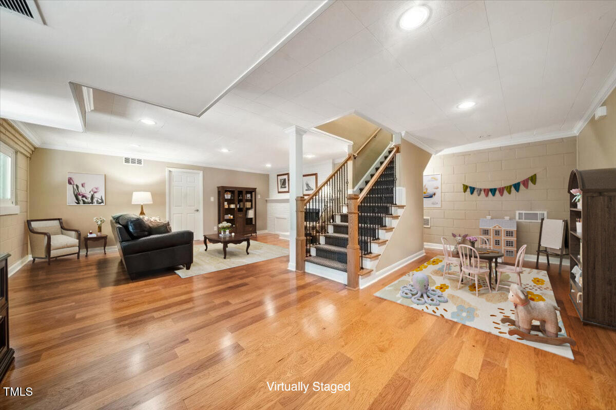 This is it, the one you've been waiting for! Updated ranch with finished basement -- 4 bdrms - 3 full baths -- sunroom -- screen porch -- renovated kitchen & baths -- ceilings have been raised to become cathedral - 3 fireplaces - stainless appliances --1 block to greenway & minutes to North Hills/Midtown with shopping, restaurants, grocery -- Close to Root Elementary -- If you know Raleigh, then you know what a wonderful location this is!