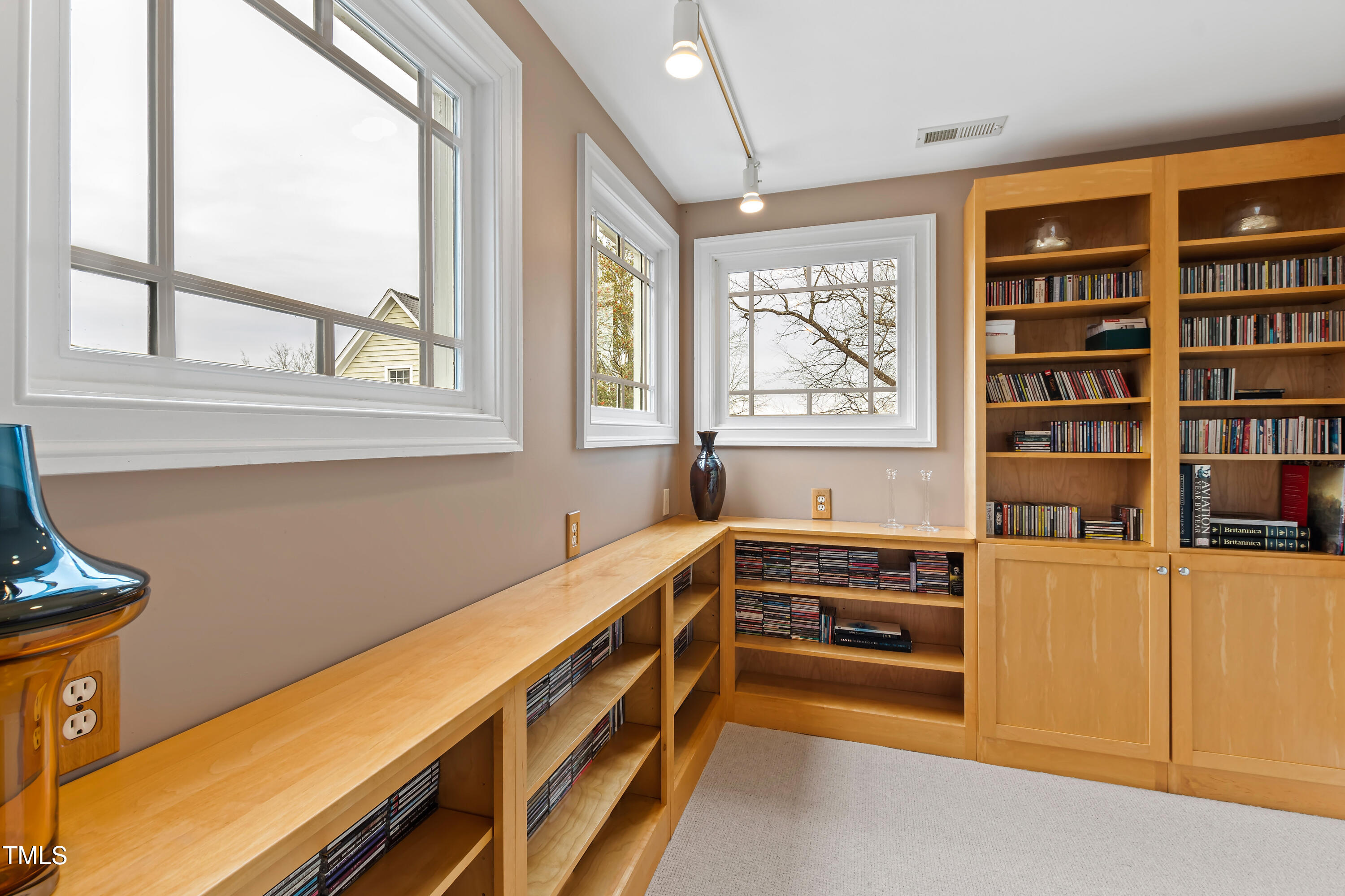 Upstairs, discover two additional bedrooms, two full bathrooms, a cozy office with custom shelving, a charming reading nook, and a convenient laundry room. The unfinished attic provides ample storage space and exciting possibilities for future expansion.