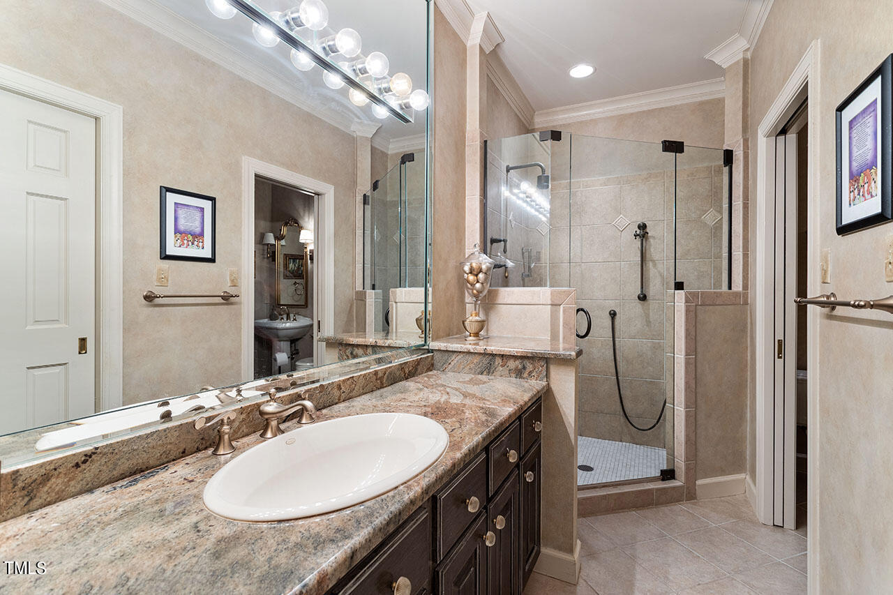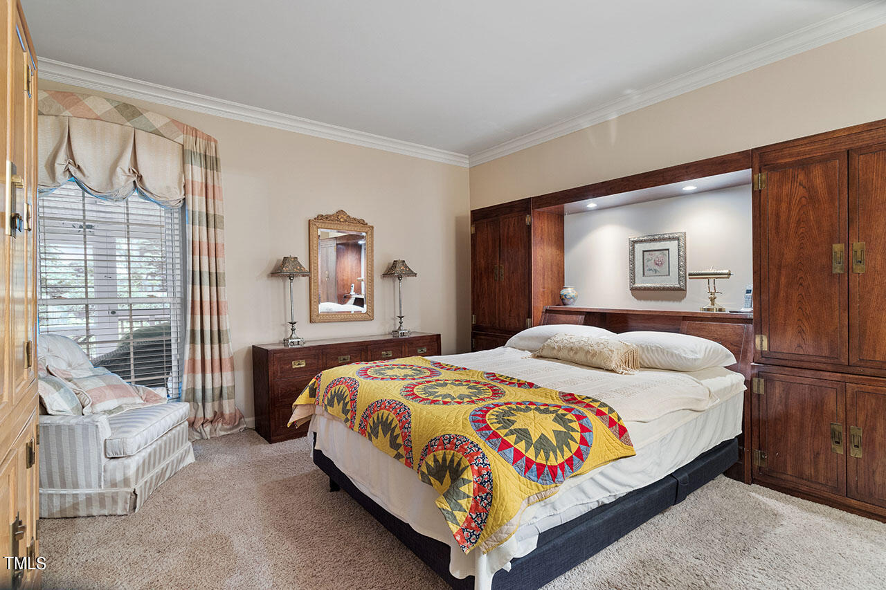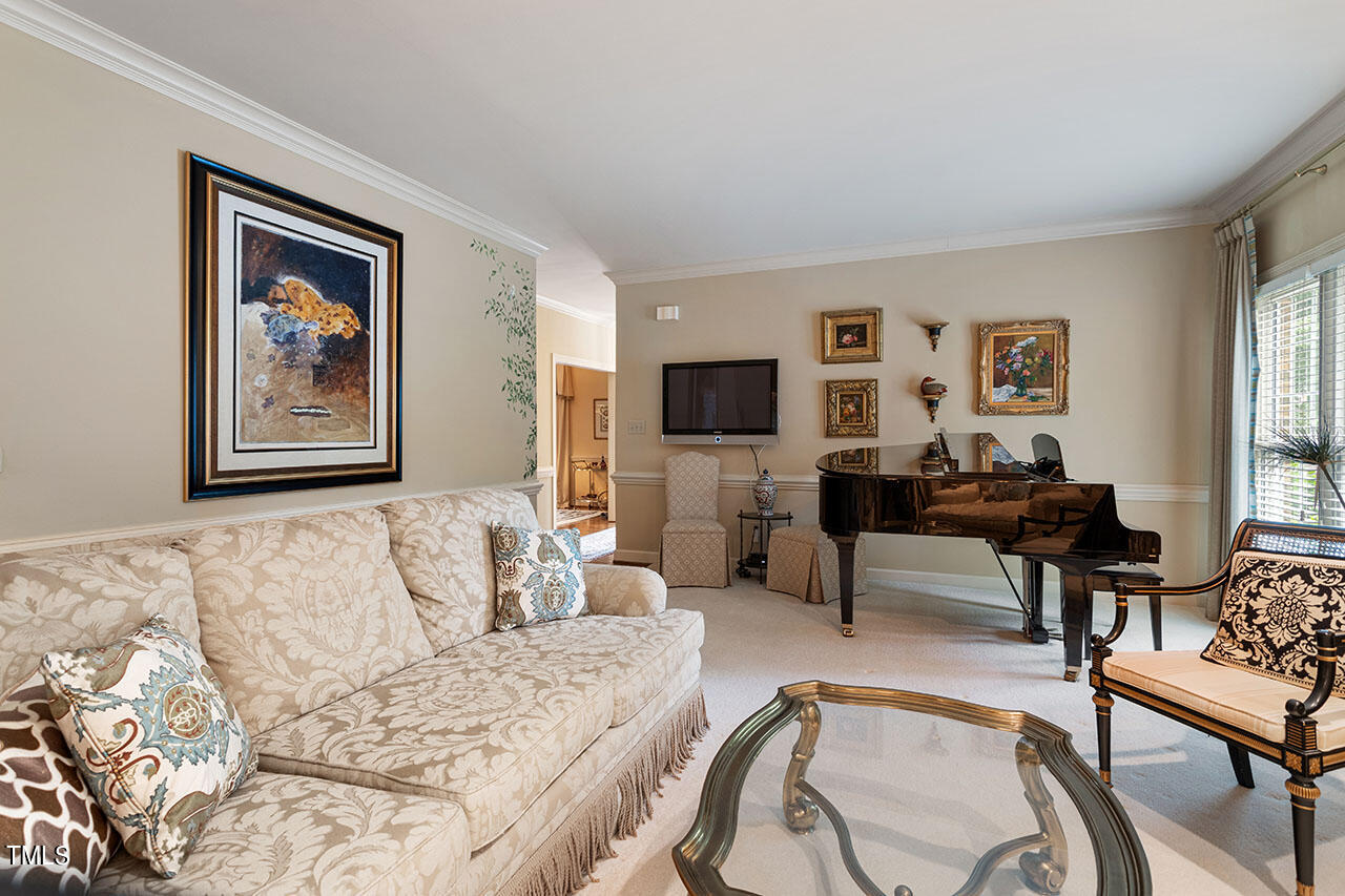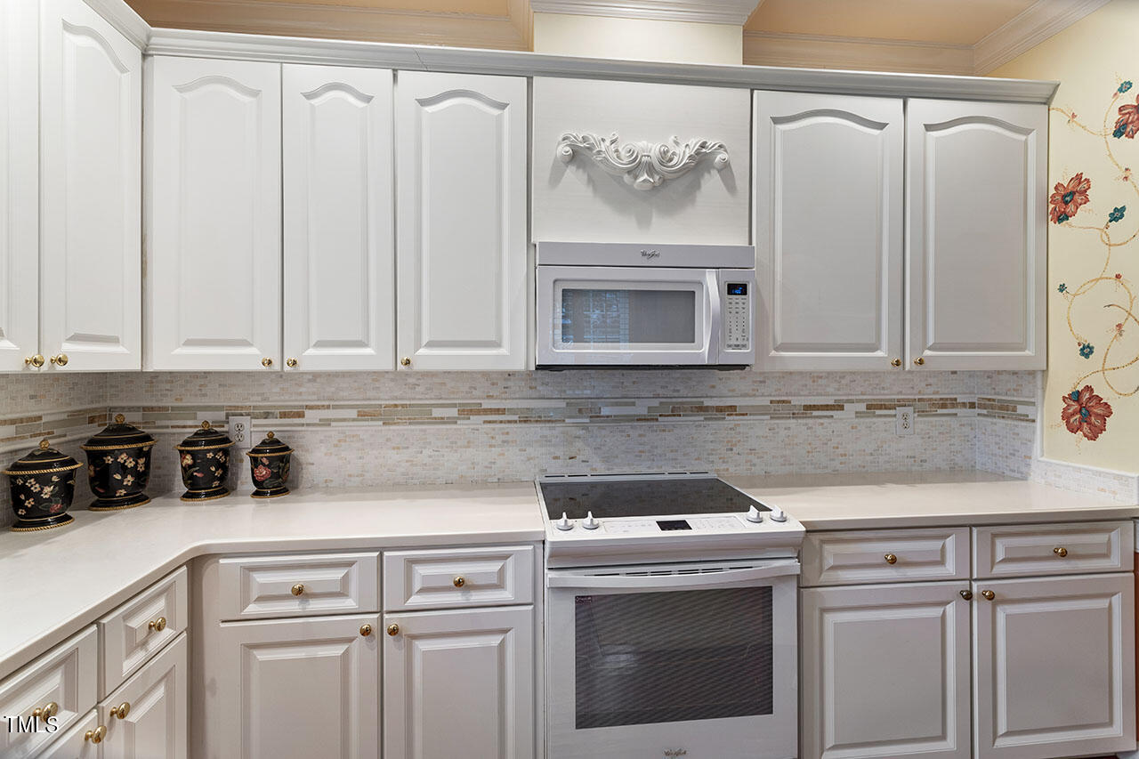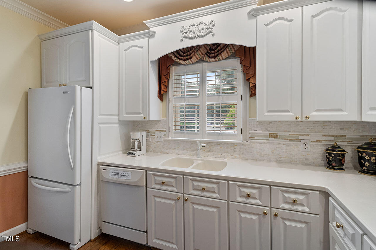 Nestled on a premiere lot within this highly desirable North Raleigh community, this end-unit townhome offers over 2,000 square feet of living space. As you step in to the entry foyer you will see a sun-filled eat-in kitchen on the left and on the right a formal dining room. The spacious great room with a fireplace offers a variety of uses for easy living and entertaining. The cozy sunroom with built-in cabinets overlooks the screened porch and is a perfect space to set up as a den or in home office. Enjoy the convenience of having the spacious primary bedroom and updated bathroom on the main level. The second floor features two additional bedrooms with a shared hall bath. Step out onto the oversized screened-in porch and take in the peaceful private view of the common area.