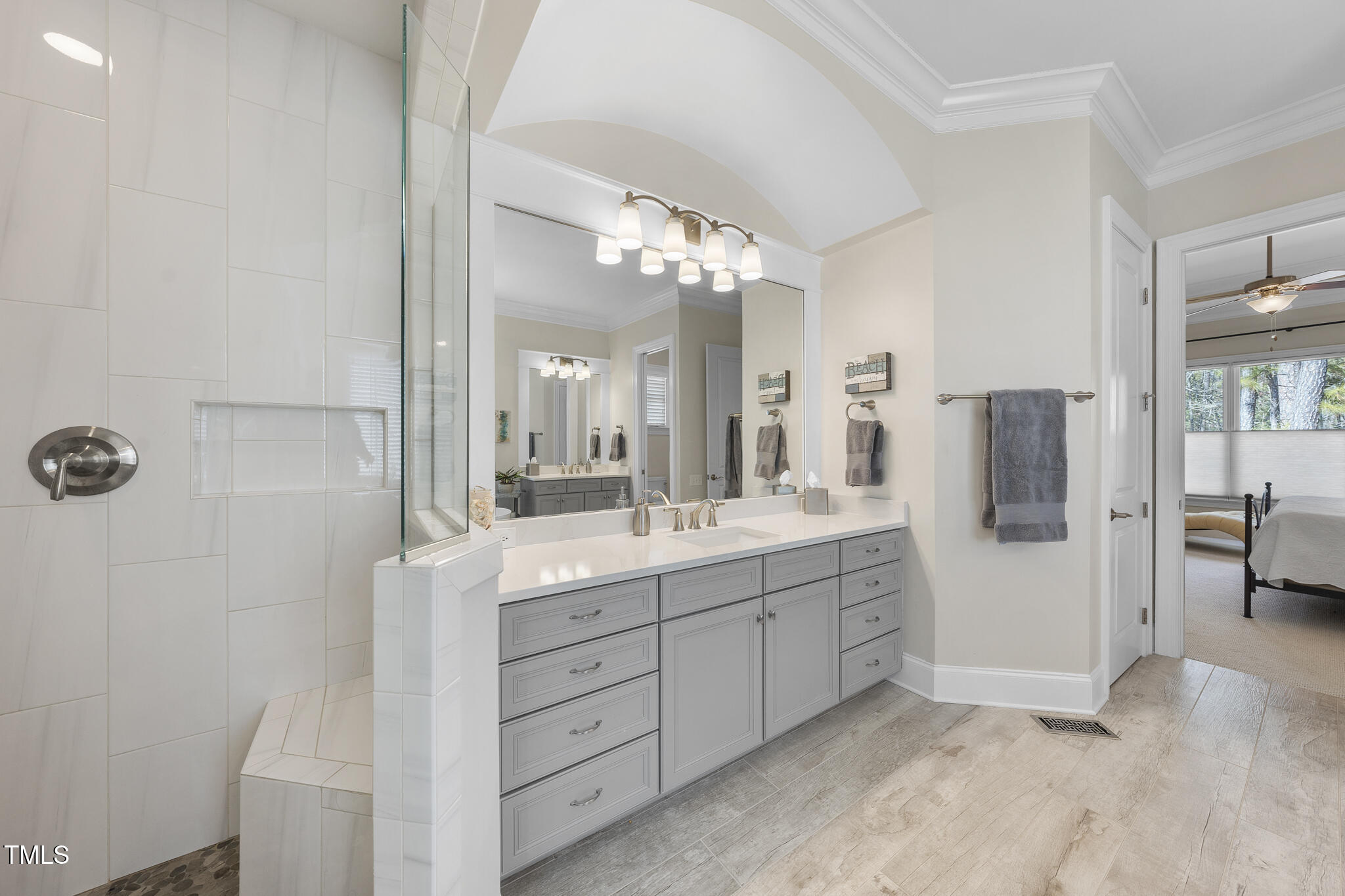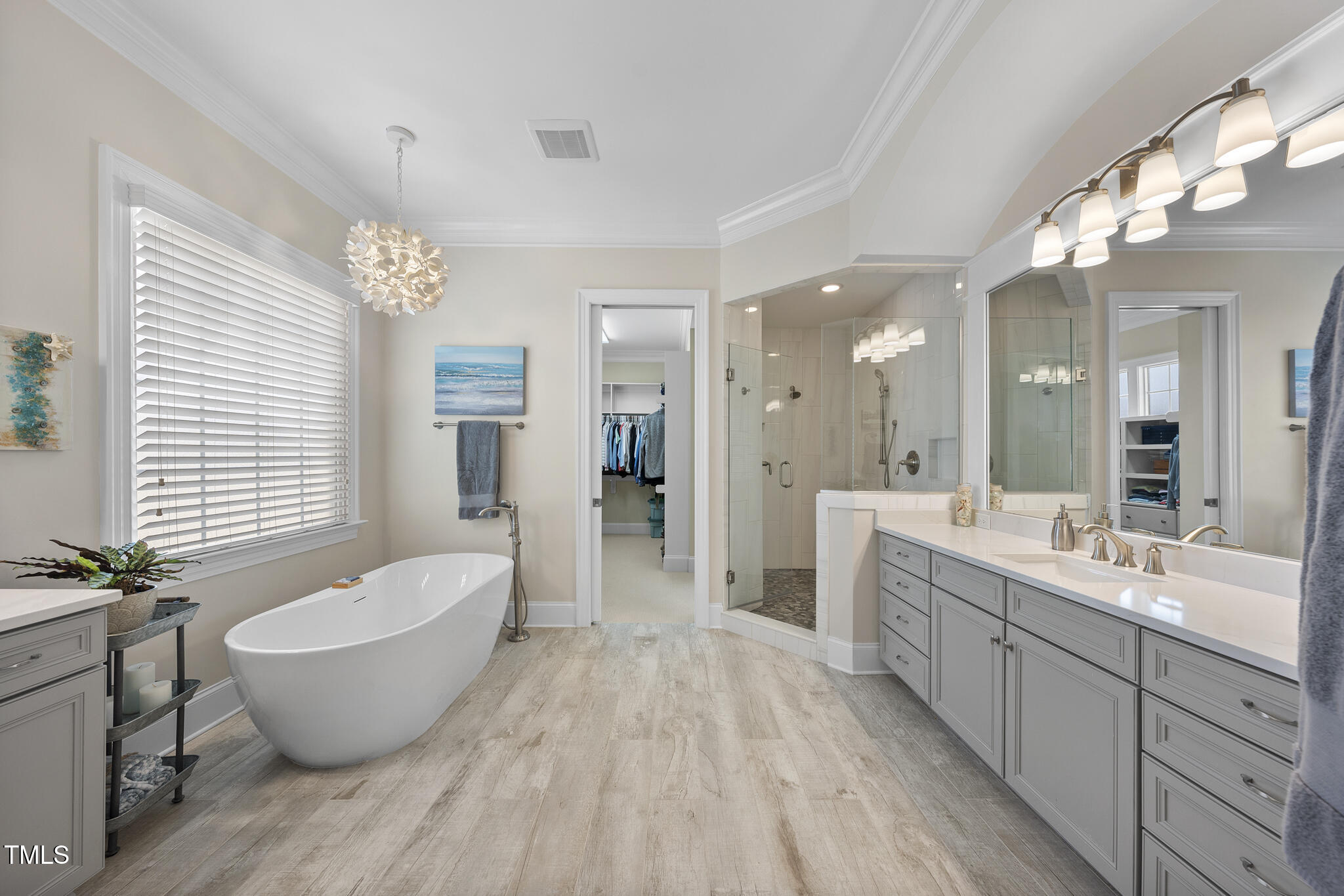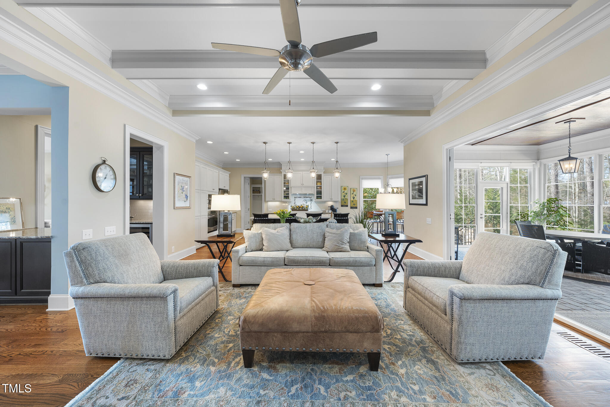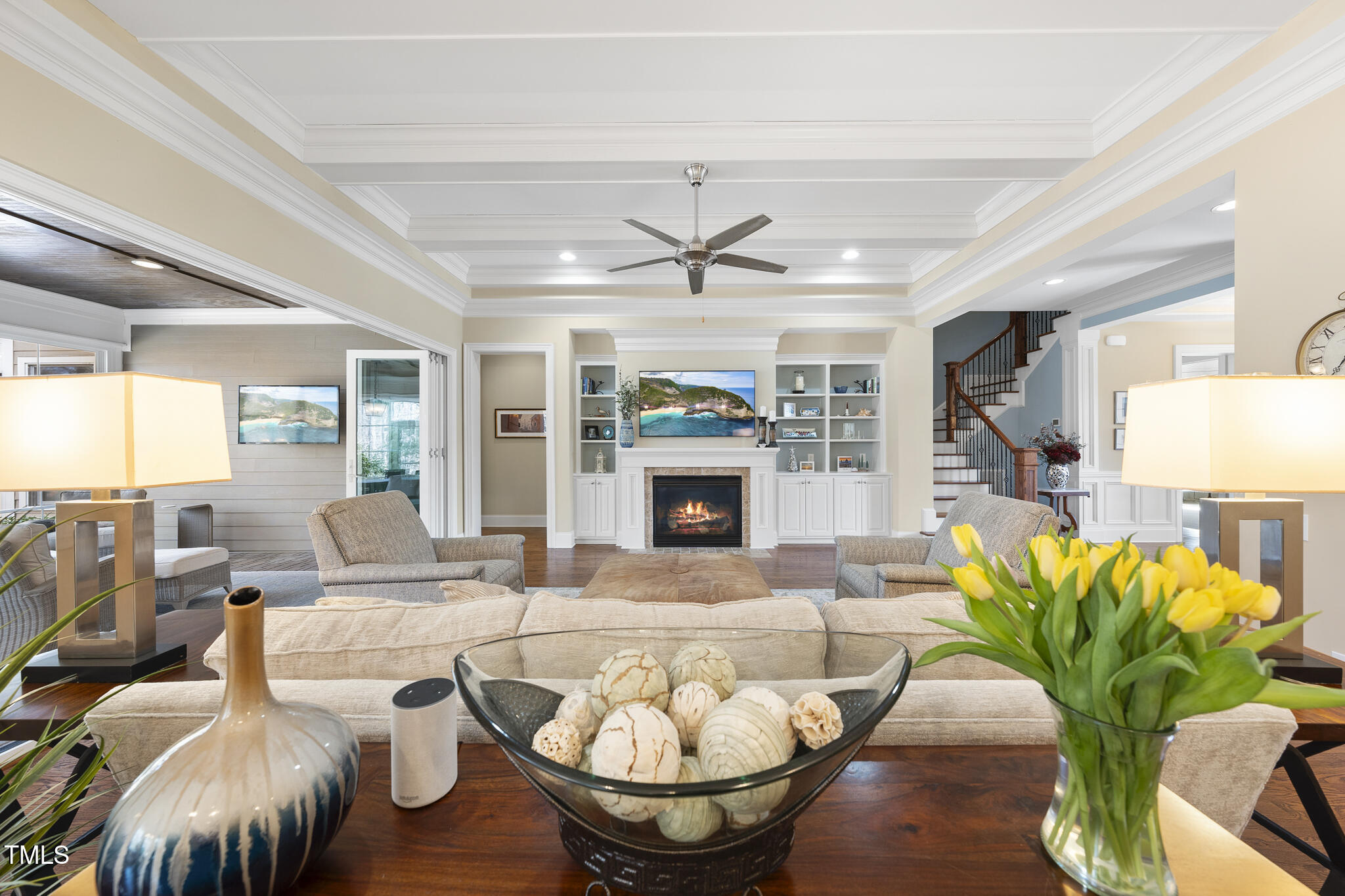• other interior Features Bar, Bathtub/Shower Combination, Bookcases, Built-in Features, Ceiling Fan(s), Chandelier, Coffered Ceiling(s), Crown Molding, Double Vanity, Dual Closets, Eat-in Kitchen, Entrance Foyer, Granite Counters, Kitchen Island, Open Floorplan, Pantry, Master Downstairs, Quartz Counters, Recessed Lighting, Separate Shower, Smart Thermostat, Smooth Ceilings, Storage, Tray Ceiling(s), Walk-In Closet(s), Walk-In Shower, Water Closet, Wet Bar, Wired for Data