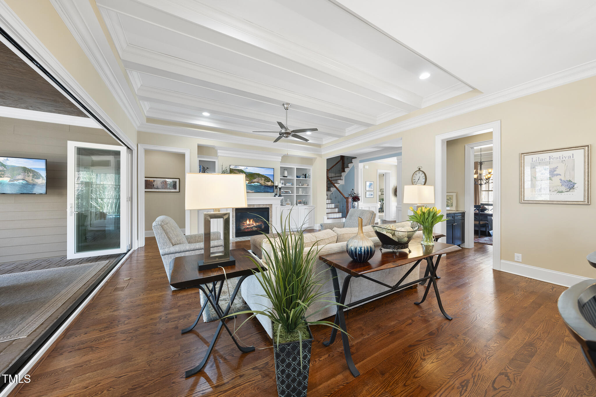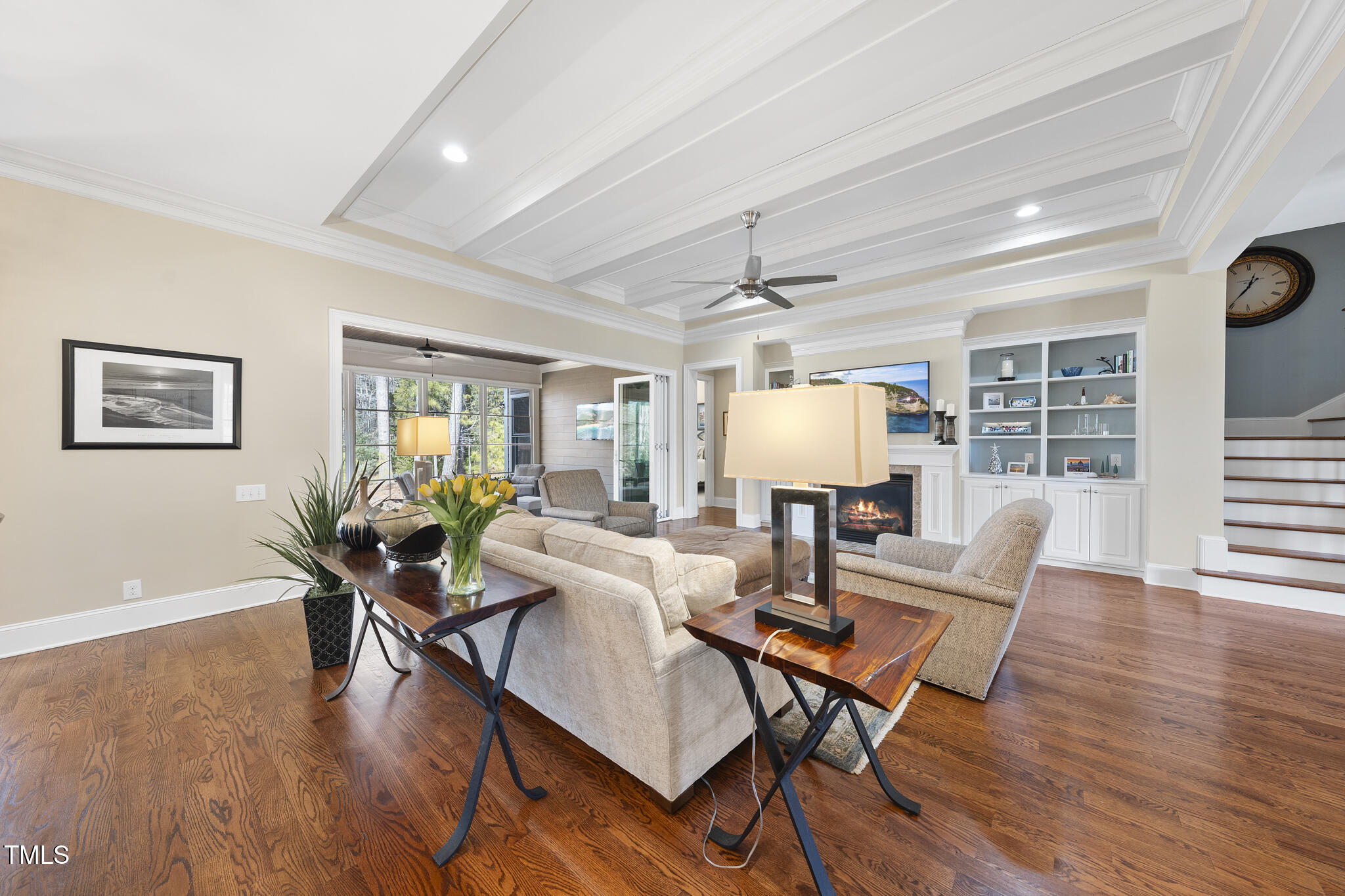 Beautiful, exceptionally well-maintained custom built and ENERGY STAR Certified home in Cary's quaint and desirable Weycroft Reserve subdivision. Backing to hardwood trees, a private neighborhood trail system and the exclusive Old Chatham Golf Club beyond, you are just steps away from the 26 mi long American Tobacco Trail. Inside, you'll find an open 1st floor plan and exquisite custom craftsmanship - from the gorgeous millwork to the trey and coffered ceilings, no shortcuts were taken. The kitchen features a large center island, quartz counter tops, stainless appliances, a ''hidden'' walk-in pantry and opens to a family room with coffered ceilings and a gas fireplace framed by built-ins. Accordion doors open to a sunroom that provides for 4-season usability thanks to the Eze-Breeze window system. 1st floor guest bedroom or office as well as a primary bedroom with a recently remodeled, spectacular and must-see en-suite bath and closet! Upstairs there is a large bonus room, two bedrooms with en-suite baths and access to extensive floored storage. Two-car garage with storage optimization and a powered lift for additional parking or storage for a 3rd car. Recently replaced HVAC systems and hot water tank.