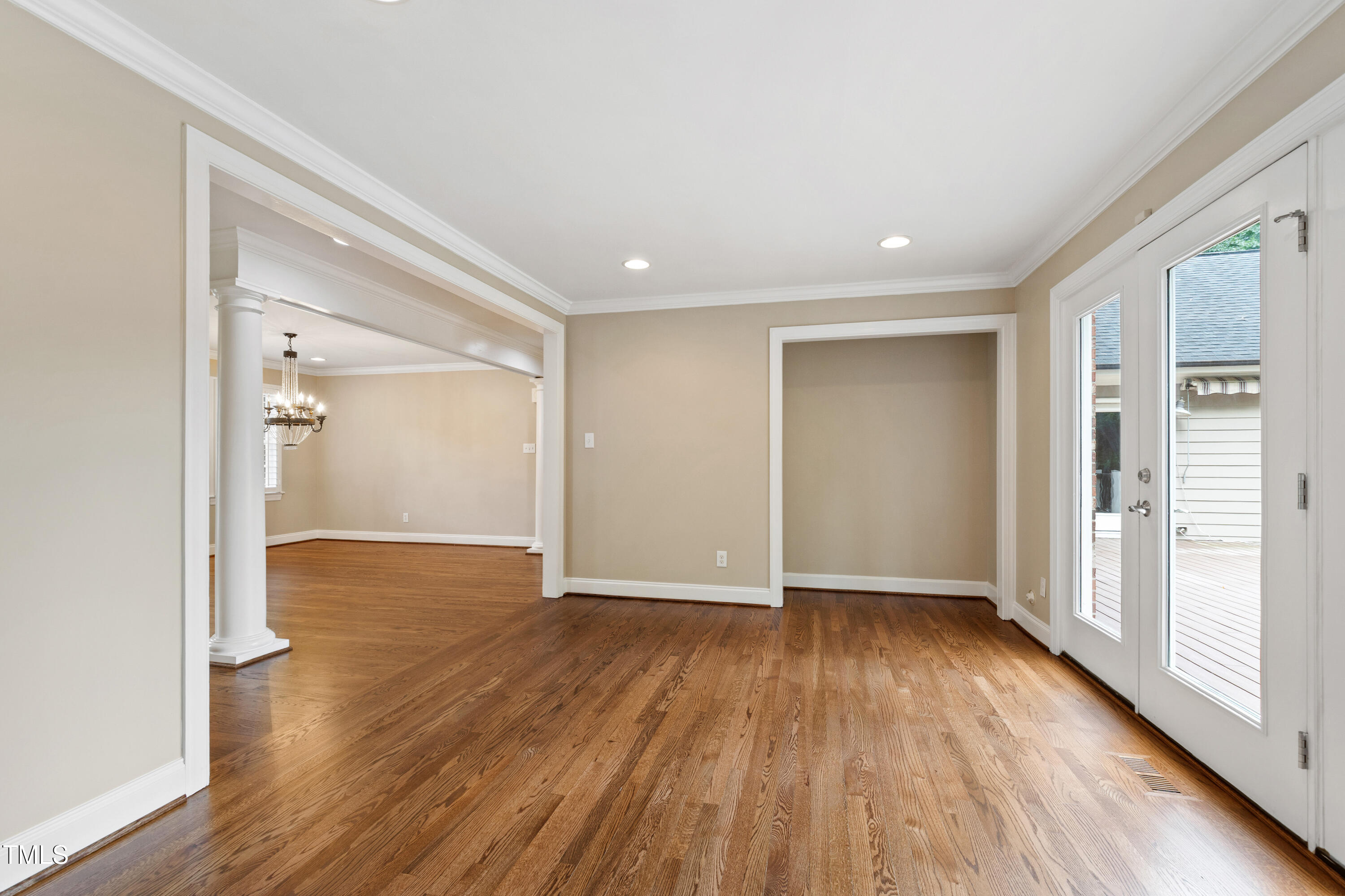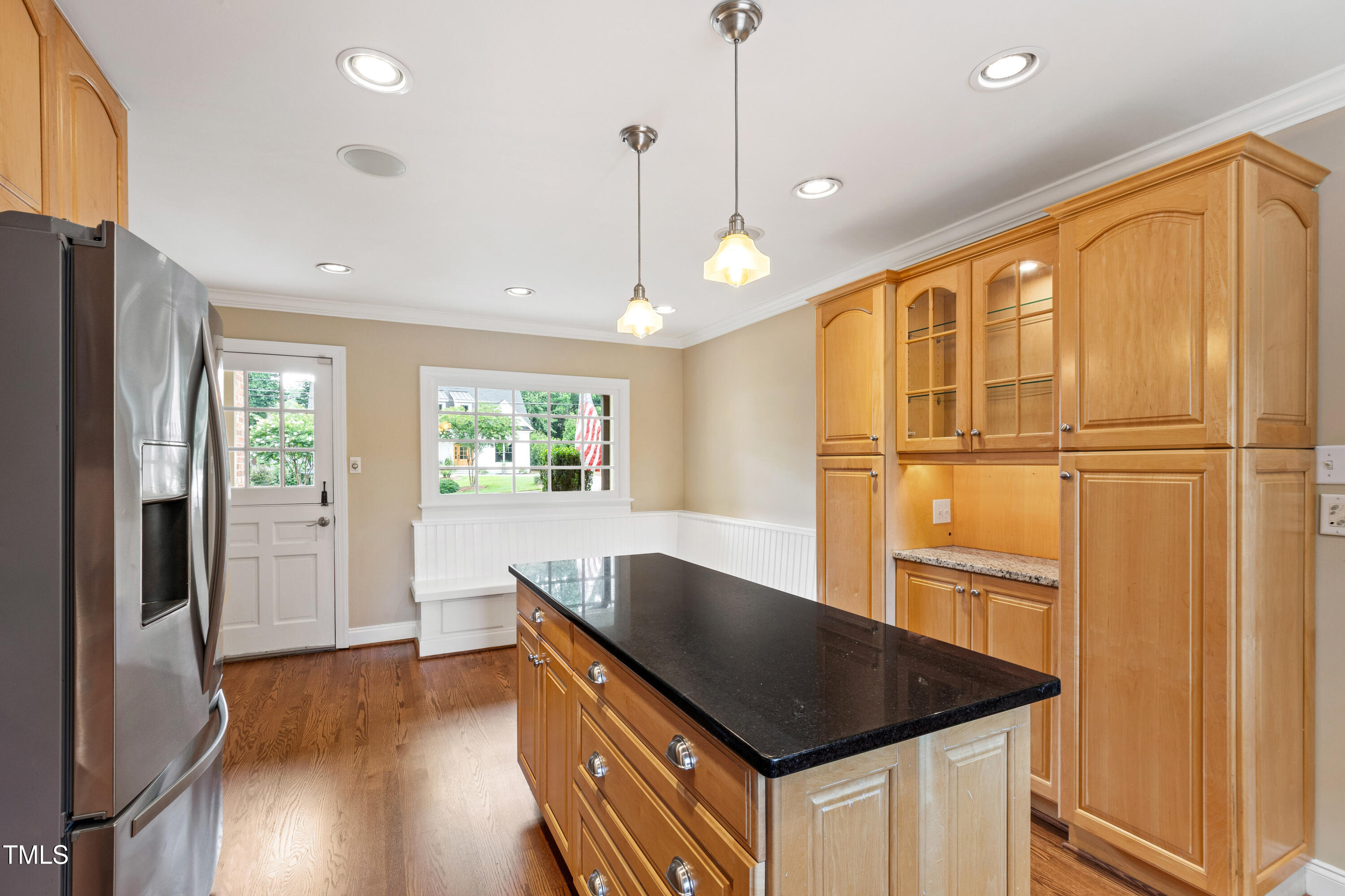 Nestled in the heart of North Hills, this charming traditional Cape Cod home offers timeless appeal and a flexible floor plan ideal for modern living. The welcoming facade leads into beautifully appointed interiors, featuring hardwood floors, classic moldings, and two fireplaces that bring warmth and character to the living and family rooms. The main level primary suite provides a peaceful retreat with a spacious walk-in closet and easy access to the main living areas.