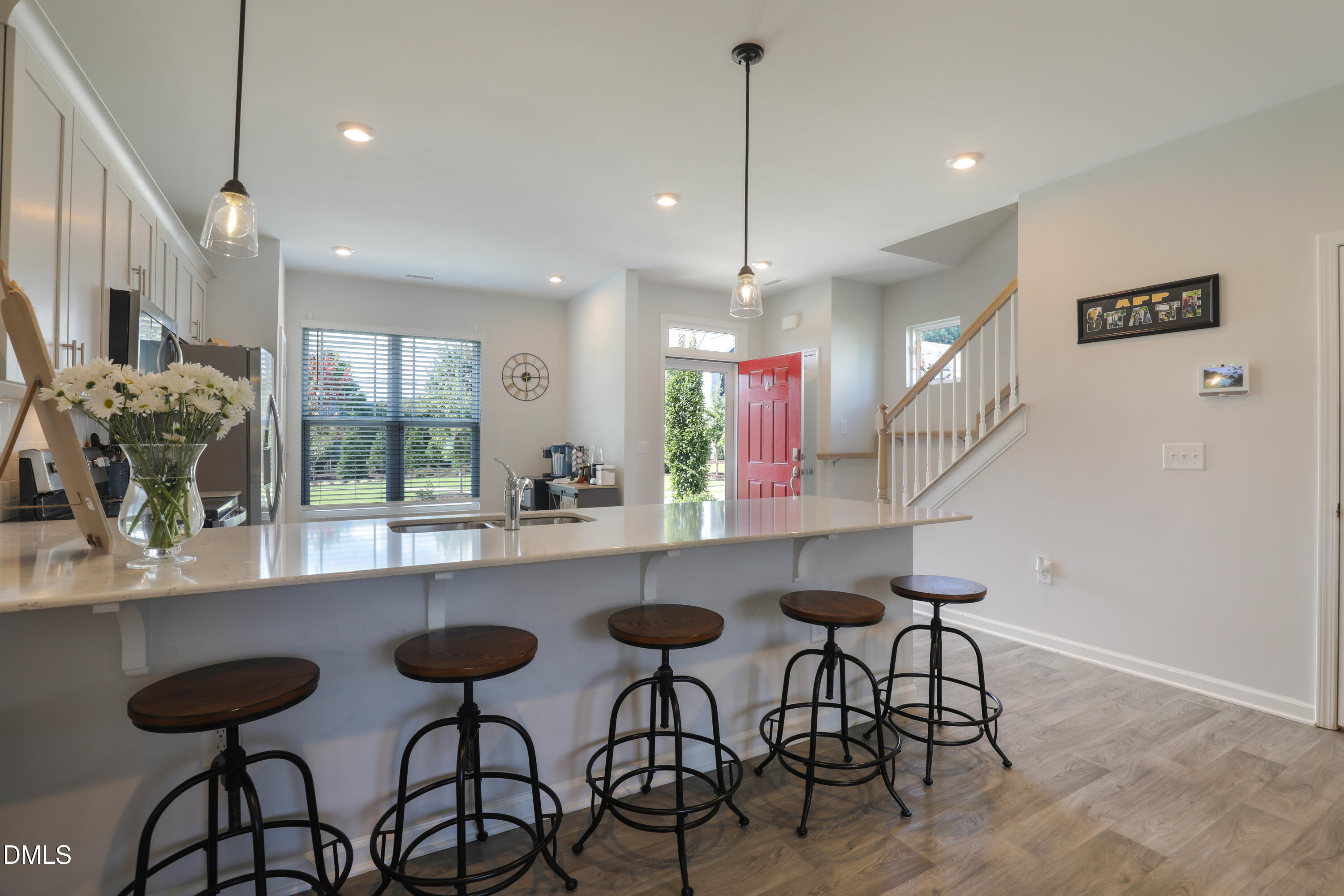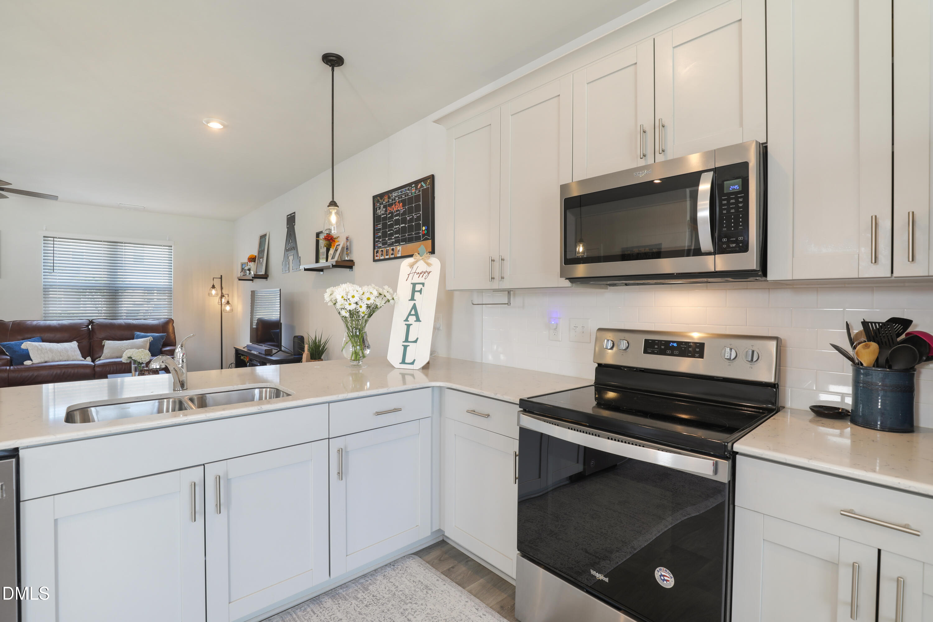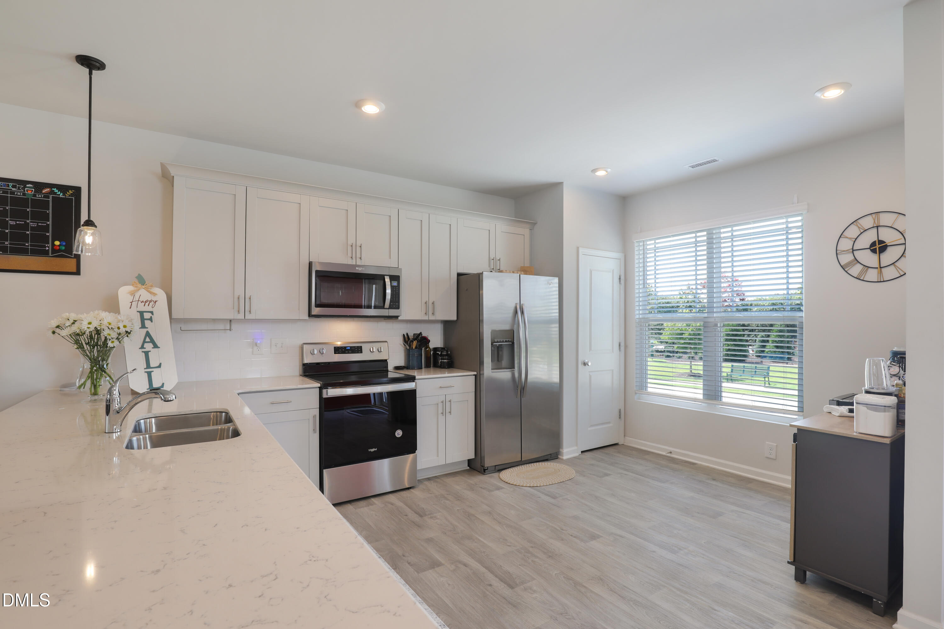 Prime Location! Welcome to this 3BR/2.5BA end-unit townhome in the heart of Clayton, offering 1,492 sq ft of modern living with unbeatable access to Wake & Johnston County. WHY THIS ONE? This rare end unit stands out with beautiful green space views right outside the front door, unlike any others in the community! You'll enjoy the peaceful park setting and visitor parking directly in front, perfect for guests. 48 Enterprise feels different, and it is!! Sellers love the coffee shop, all the groceries and restaurants, and especially love the Culvers so close! Commuting anywhere is easy and just 5 min to downtown Clayton, 12 to White Oak and 20 to downtown Raleigh. You can even get to the outlet malls in Smithfield in 24 minutes! Enjoy an open-concept floorplan with stylish finishes throughout, including a spacious kitchen with light gray cabinets, quartz countertops, subway tile backsplash, and stainless steel appliances. Main floor features a large family room and convenient half bath, and perfect for entertaining! Upstairs primary bedroom with walk in closet, two secondary bedrooms, full guest bath, and laundry complete the second floor. Rarely do you find a townhome where you look out your large kitchen windows to a park! You will love it!