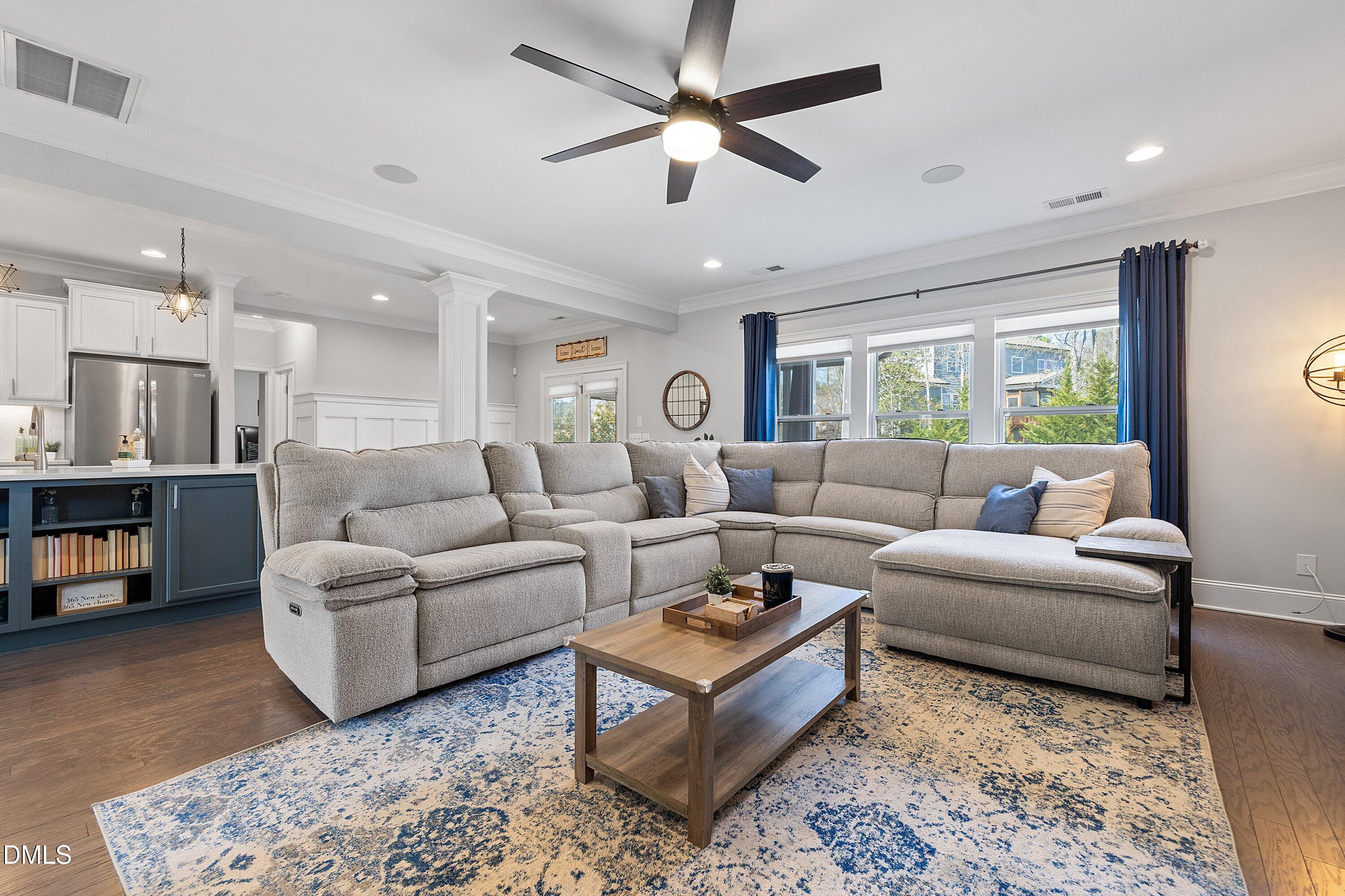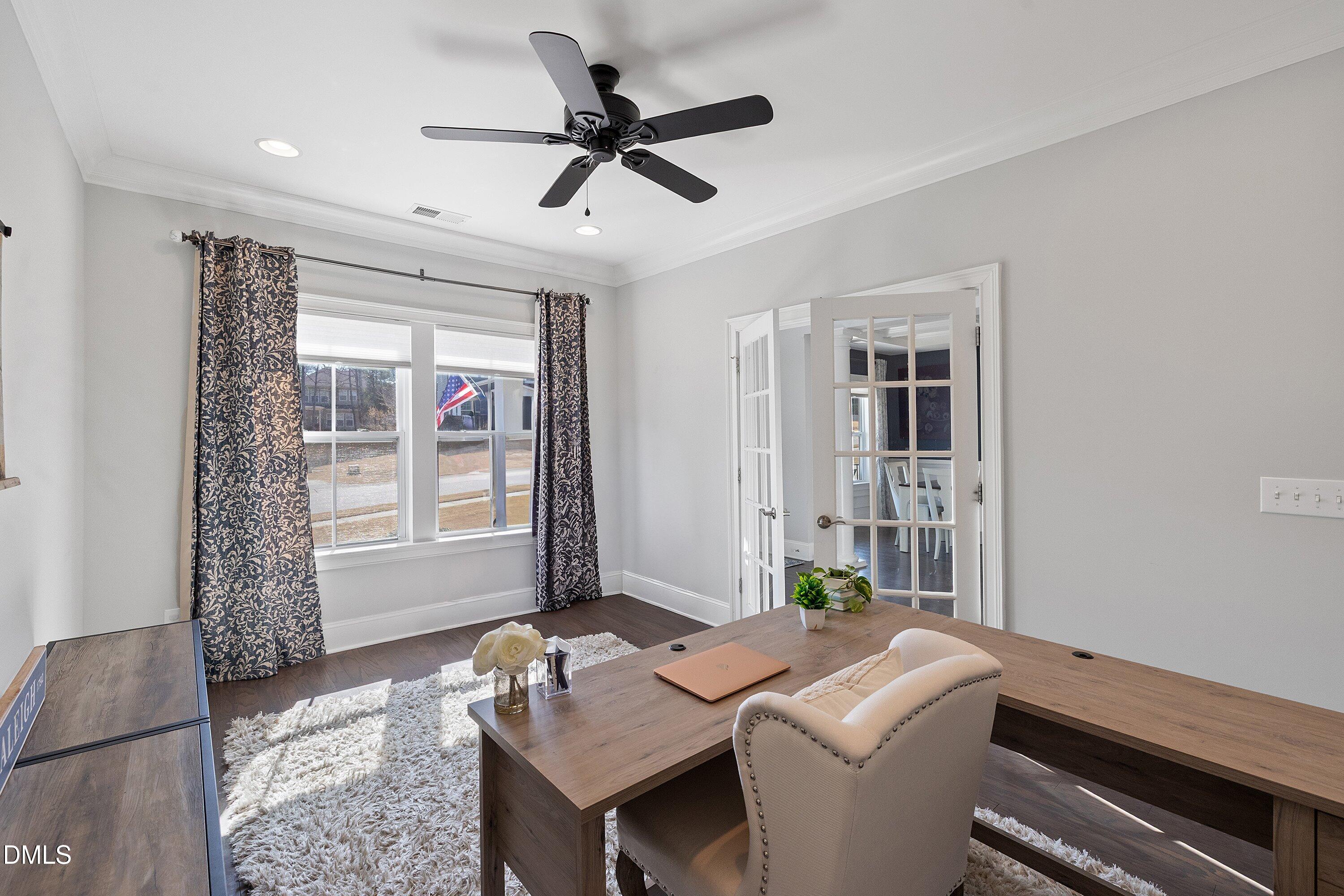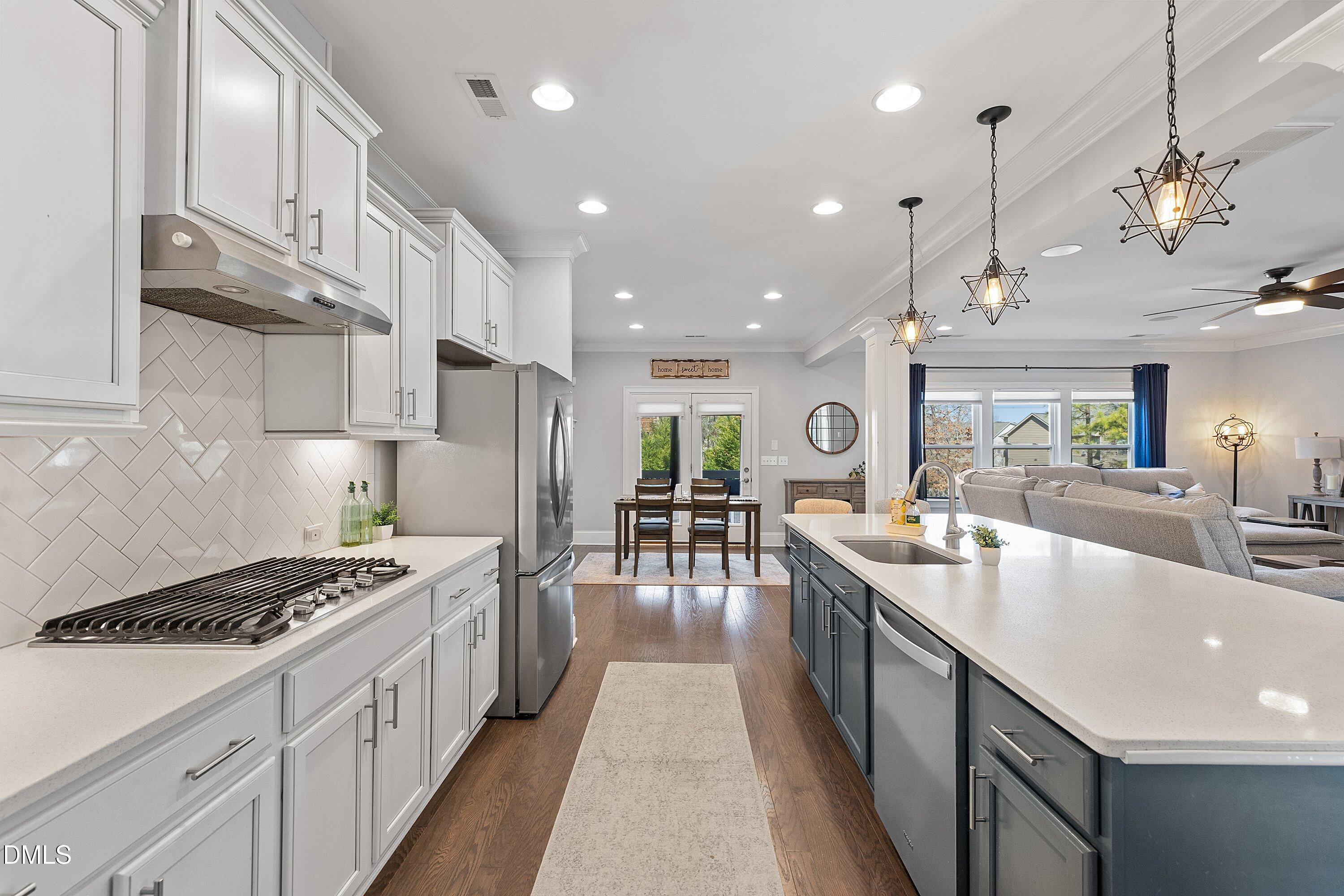 Step inside this stunning Wake Forest home with a bright, open floor plan and a grand two-story foyer! Perfectly designed for modern living and entertaining, this home features a formal dining room, private office, and a stunning kitchen with custom cabinets, stainless steel appliances, gas cooktop, tile backsplash, and a massive island that flows into the family room with a gorgeous stone fireplace and surround sound.