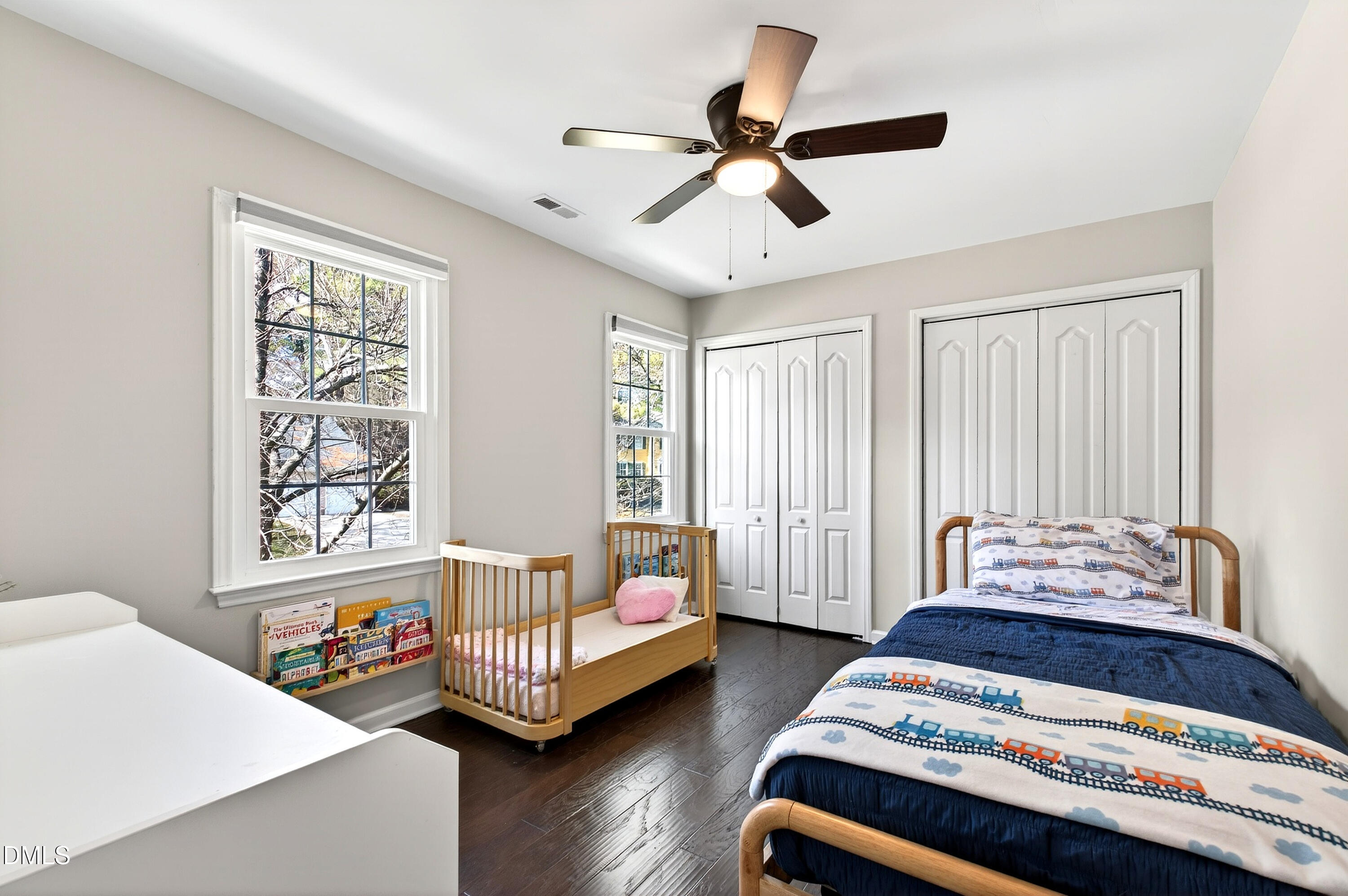 A light-filled home featuring engineered wood floors, brand-new windows, and updated kitchen with stainless steel appliances. All bedrooms are thoughtfully located on the second floor, including a spacious primary suite with a fully renovated bath (2020), offering double vanities and spacious walk-in shower. The third floor offers a versatile flex space with brand new carpet (2024)--perfect for a home office, playroom, or media room. Step outside to the deck and patio (2022) and spacious fenced backyard perfect for pets, play, or entertaining.