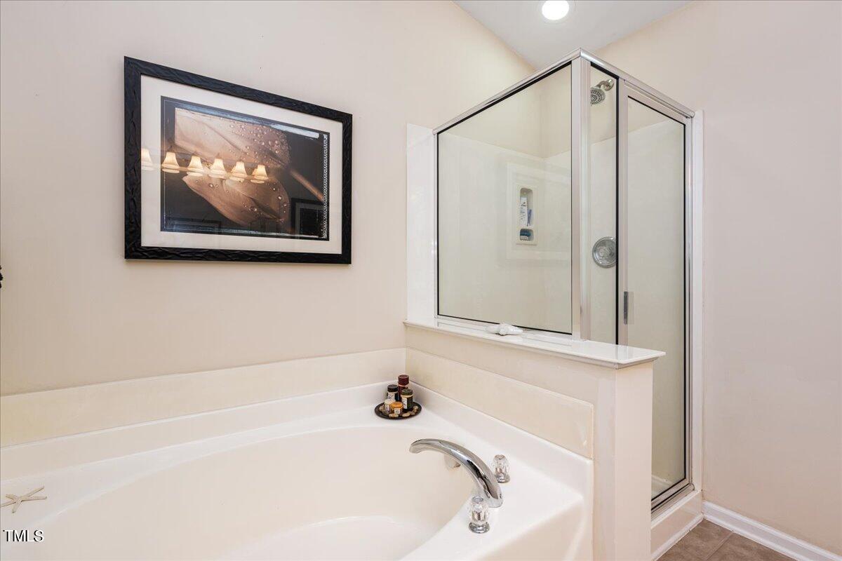 Step out onto the deck from the kitchen and enjoy the tranquility and privacy offered by mature trees. The primary suite is a luxurious retreat, featuring a tray ceiling, dual vanity, garden tub, separate shower, and a spacious closet.