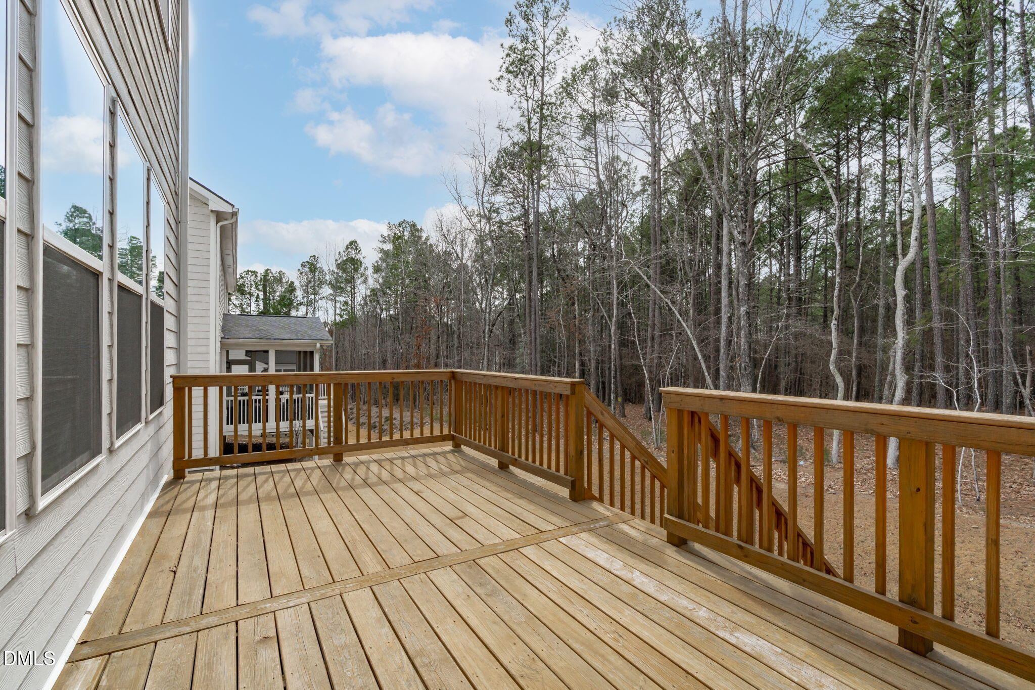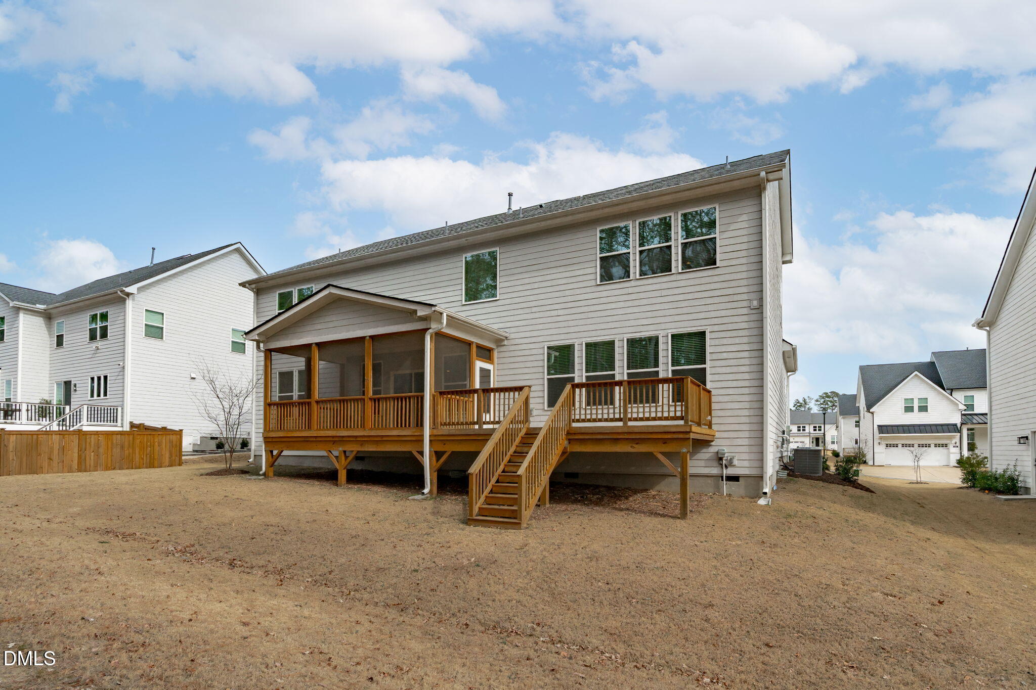 Outdoor living is enhanced by a screened porch and extended deck overlooking a private rear setting backed by mature trees. The rear orientation provides a meaningful sense of separation and privacy. An irrigation system is in place, and a three-car garage with EV charging capability adds modern convenience.
