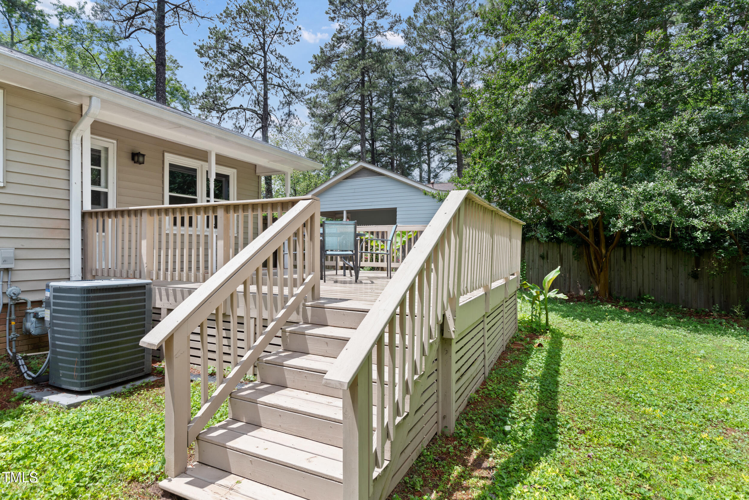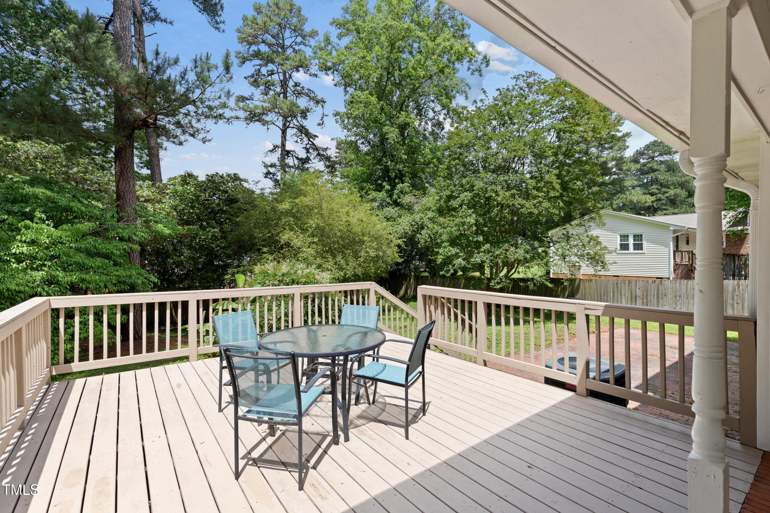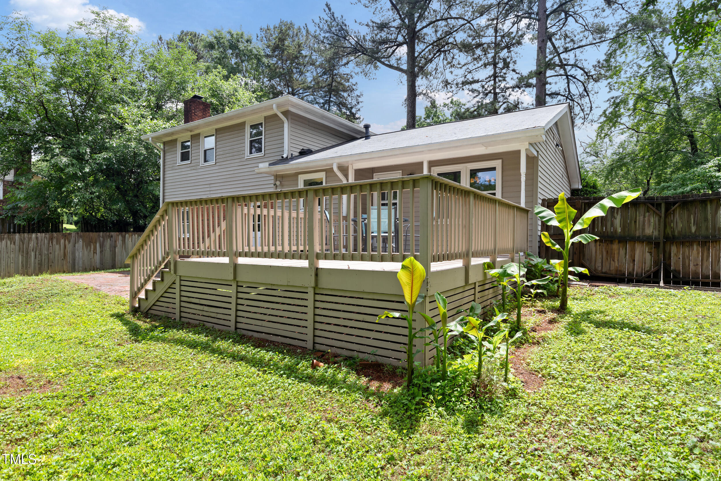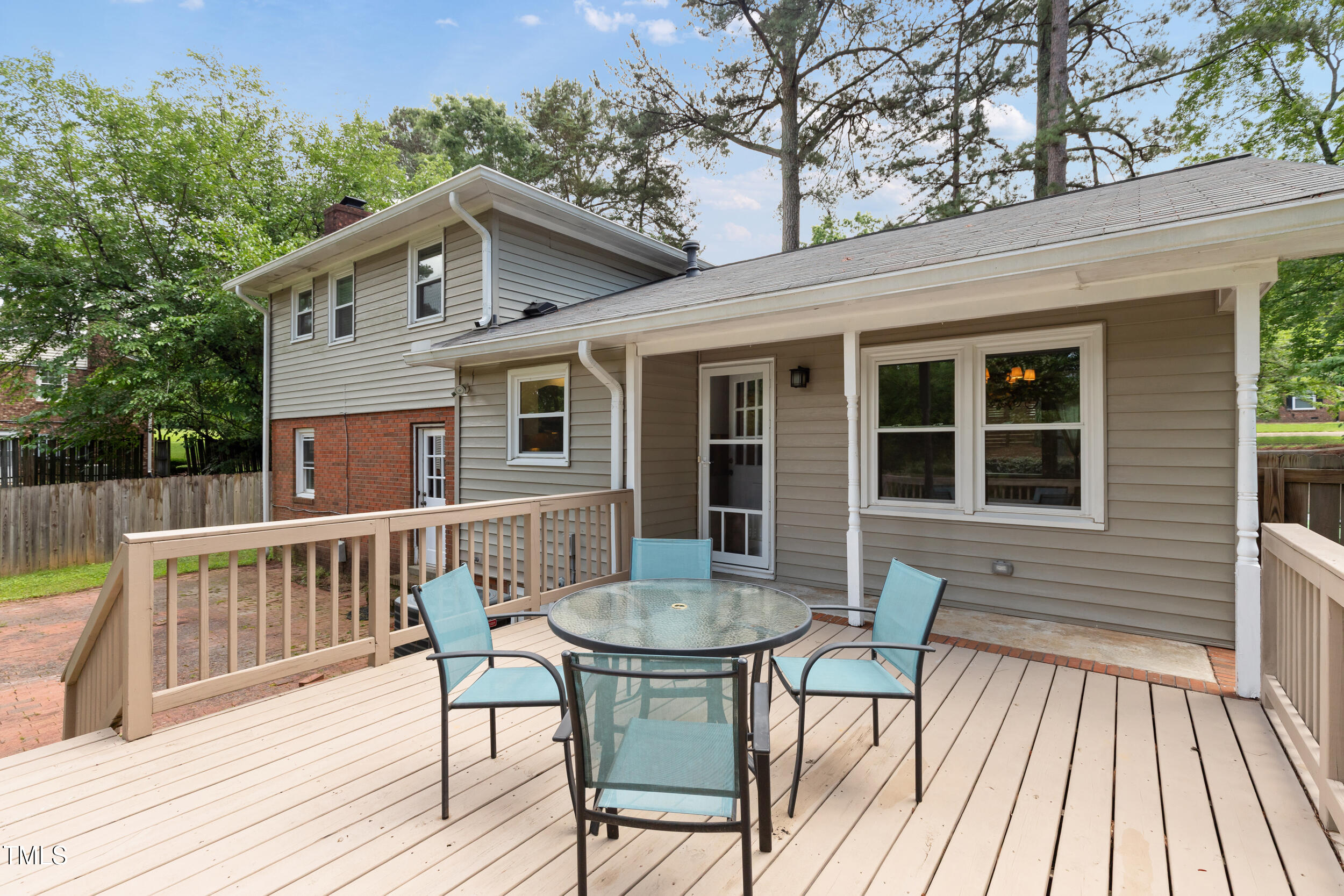 Outside, the 0.28-acre lot is a private oasis with a fenced yard, mature hardwood trees, and a 16x14 deck perfect for entertaining. The partially covered porch adds charm, while the landscaped grounds enhance curb appeal.