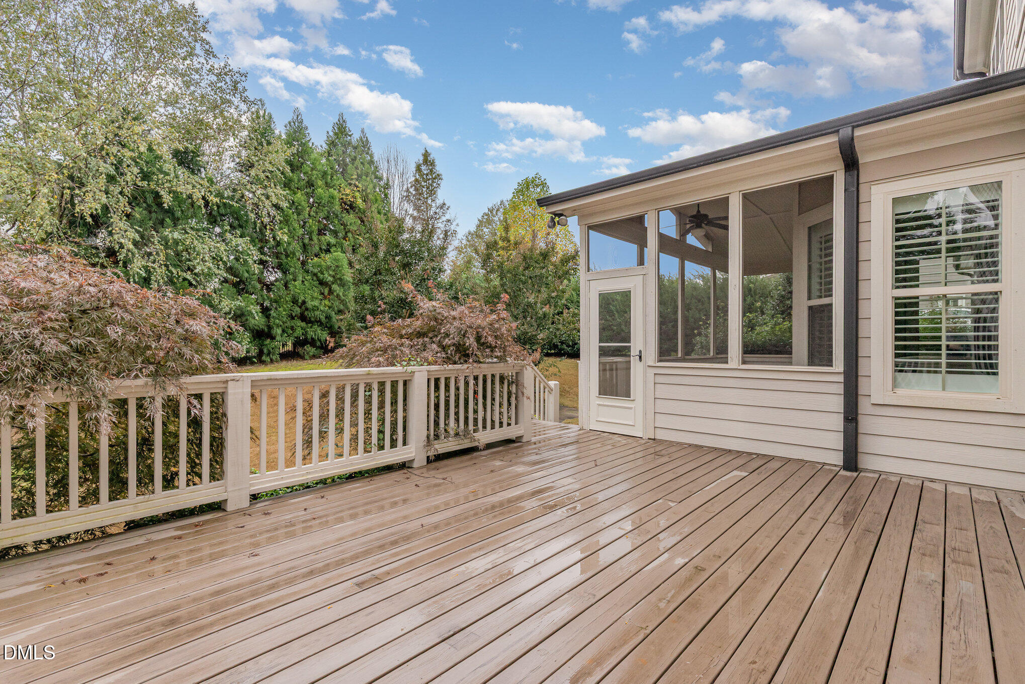 Welcome to your new home at 5112 Pomfret Point, just in time for the Holidays! The inviting rocking chair front porch sets the tone for this beautiful property, offering a perfect blend of comfort and sophistication. The thoughtfully designed floor plan features a main-level office with built-ins, a guest suite with a private bath, and a recently updated chef's kitchen featuring a Wolf range, Sub-Zero refrigerator & walk-in pantry. The spacious living room features elegant coffered ceilings, built-ins, and a gas fireplace with a granite surround that adds both warmth & character. Upstairs features four additional bedrooms, including one en suite and a Jack and Jill bath. The primary suite exudes luxury with dual walk-in closets and a breathtaking bath that features dual vanities, a spa-inspired shower, and a stunning soaking tub that serves as the room's centerpiece. The bonus room, complete with built-in shelving, offers a versatile space ideal for a media room, game room, or home gym. Enjoy multiple outdoor living spaces, including a screened porch, deck, and patio with a fireplace, all overlooking the fenced-in backyard, perfect for relaxing and entertaining. Walk-up 3rd floor attic offers excellent storage/potential for future expansion. 3-car garage with an EV charger adds convenience and perfectly complements the home's gracious living. The Hamptons at Umstead offers a tranquil retreat in the heart of the Triangle. This beautiful community features a resort-style clubhouse and pool, along with tree-lined sidewalks, surrounded by the natural beauty of Umstead State Park. Enjoy the tranquility of the setting while staying close to premier shopping, dining, the NC Museum of Art, and excellent health-care facilities. Don't miss your opportunity to live in one of Raleigh's most sought-after neighborhoods.