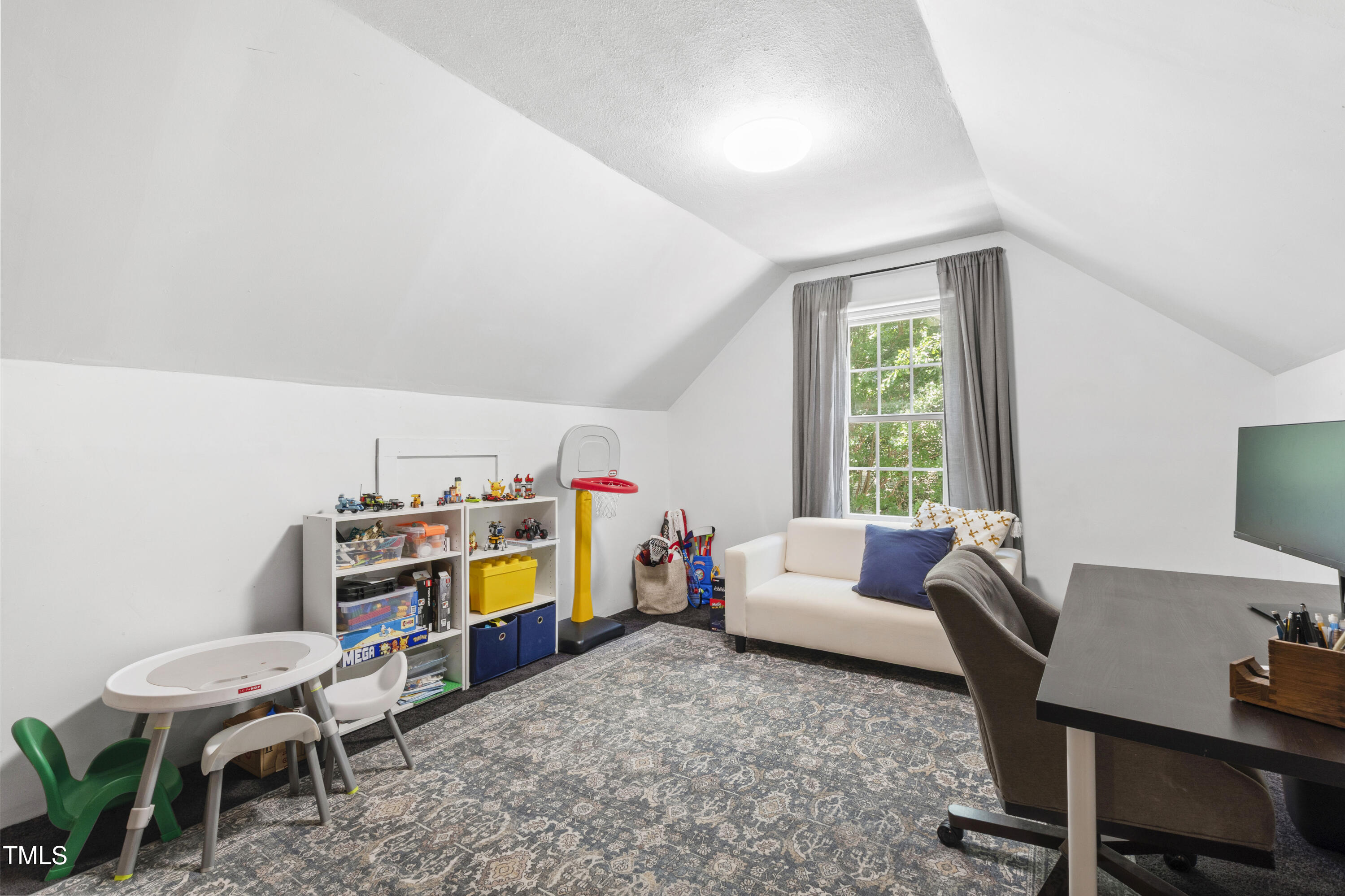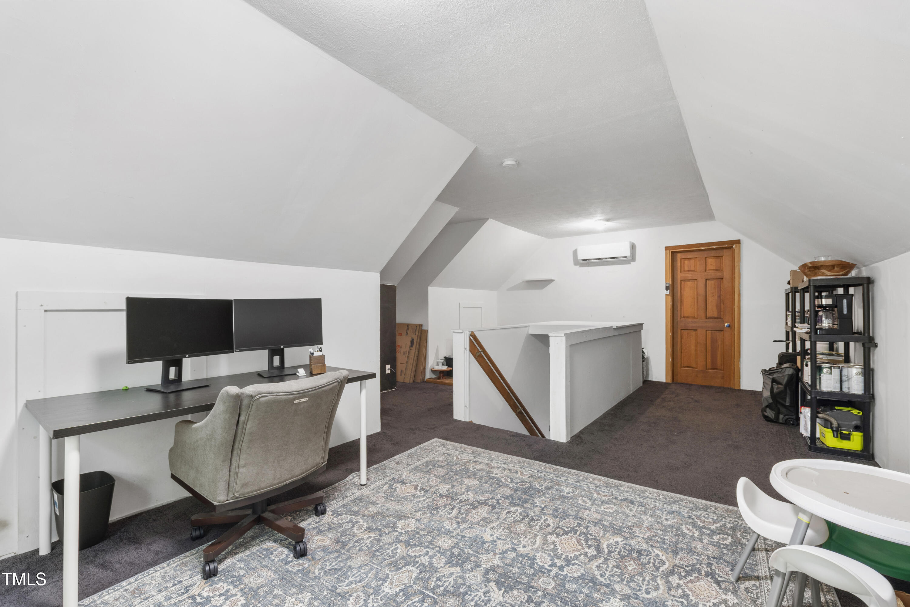 Inside, a sun-drenched breakfast nook features built-in bench seating with hidden storage, while the kitchen is outfitted with classic stainless steel appliances. All bedrooms and full baths are conveniently located on the main level. Upstairs, a 372 square feet finished bonus area (unpermitted; completed by a previous owner and not included in the MLS living area) is served by a GREE mini-split system added in 2020--ideal for a home office, playroom, or hobby space. There's also an additional 453 square feet of walk-in attic storage with rough plumbing in place, offering exciting potential for future expansion.