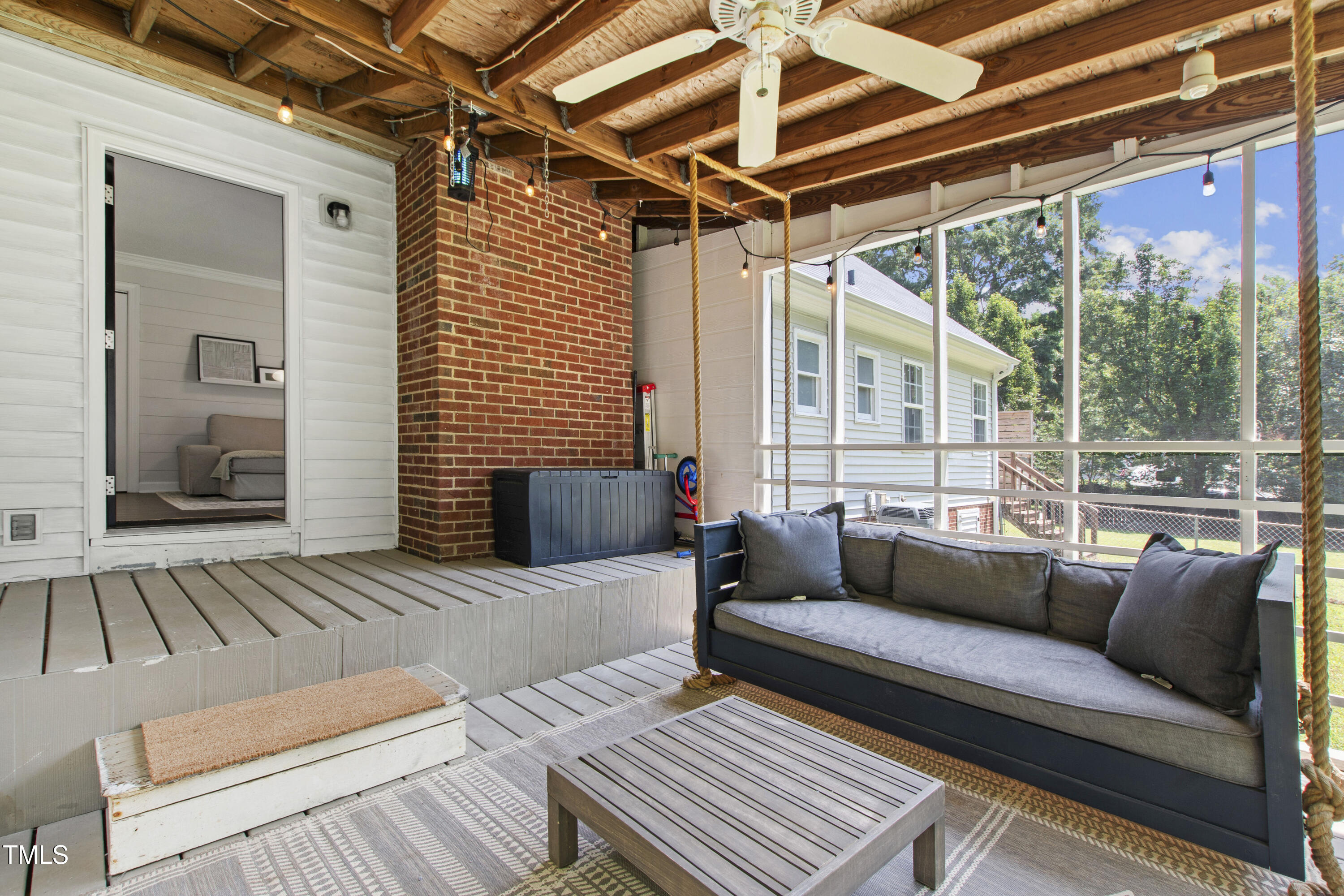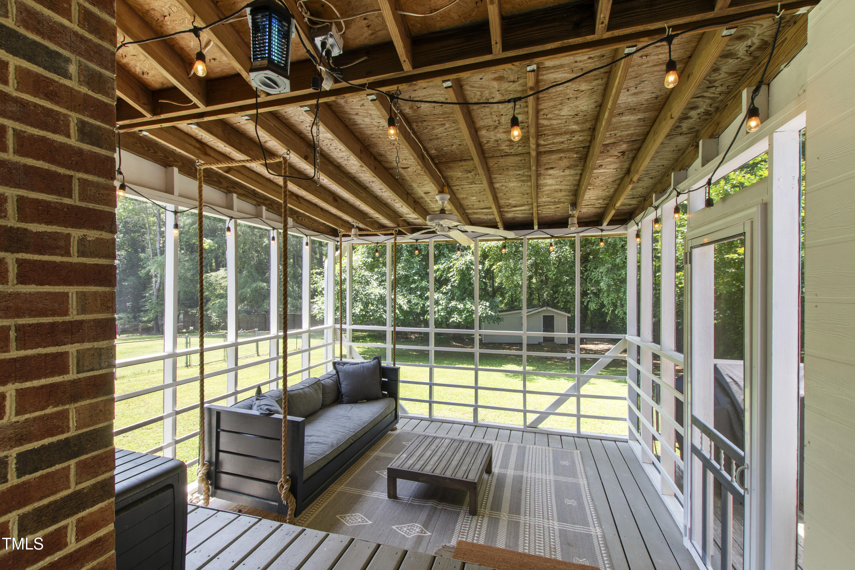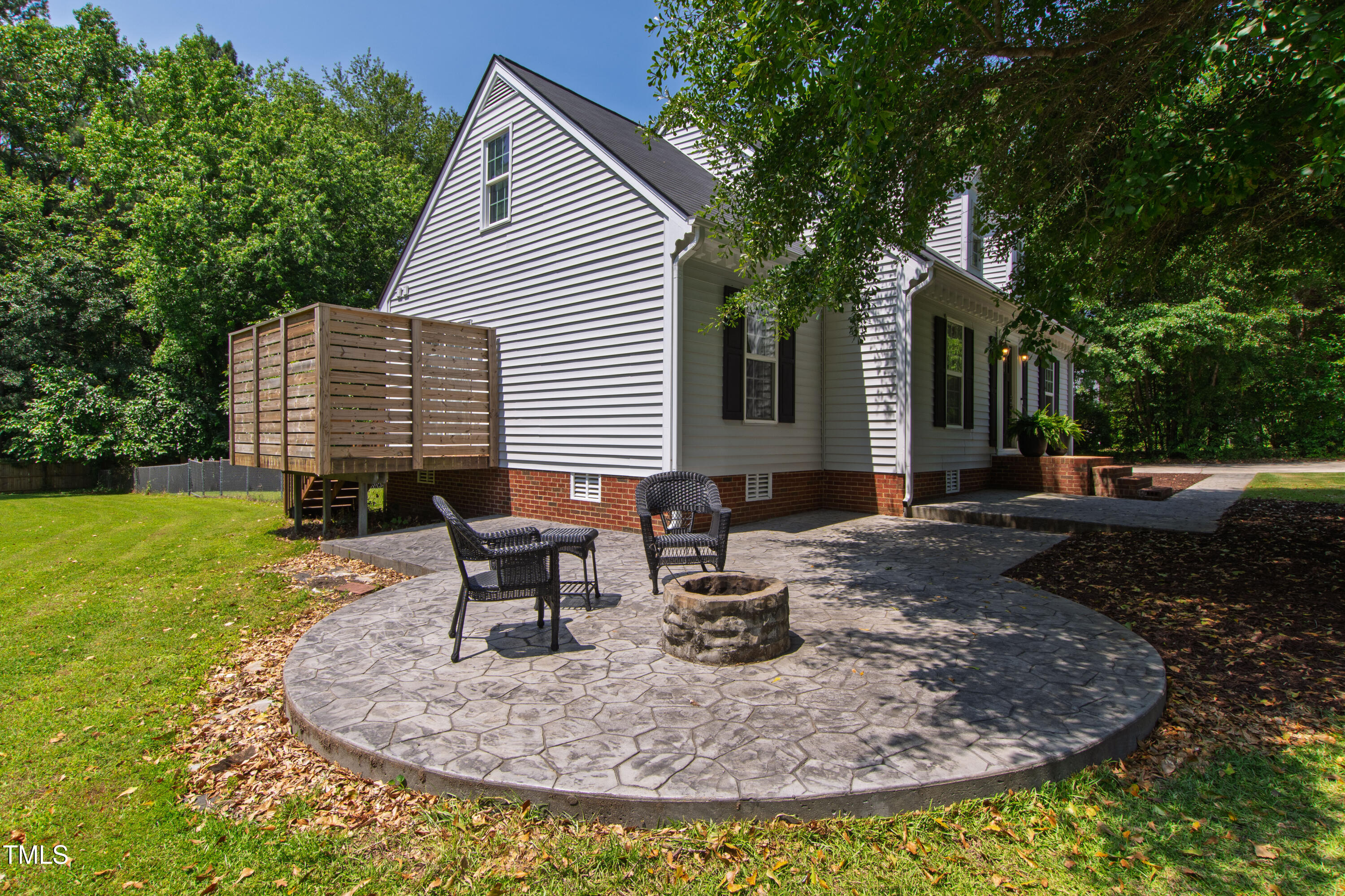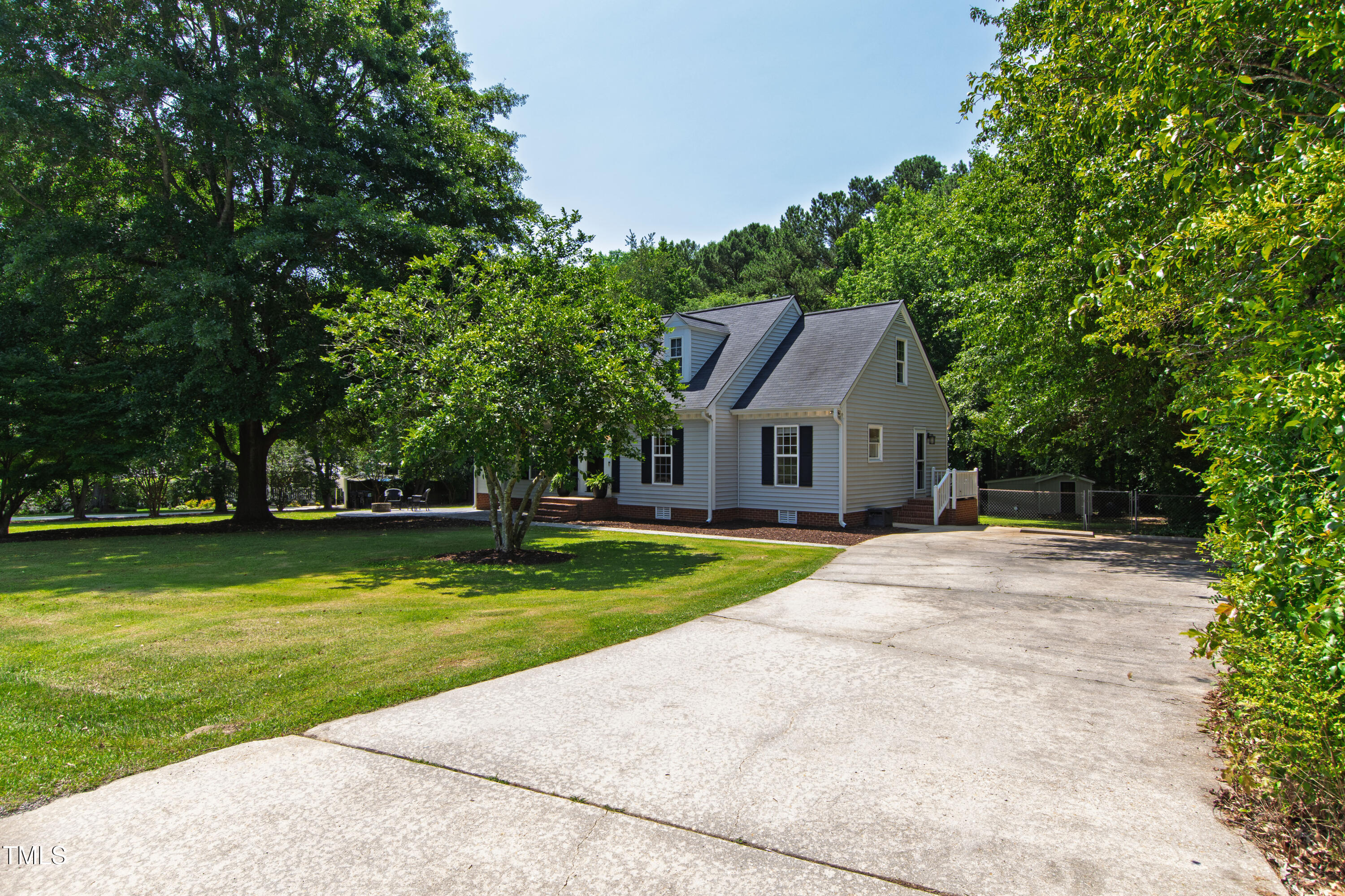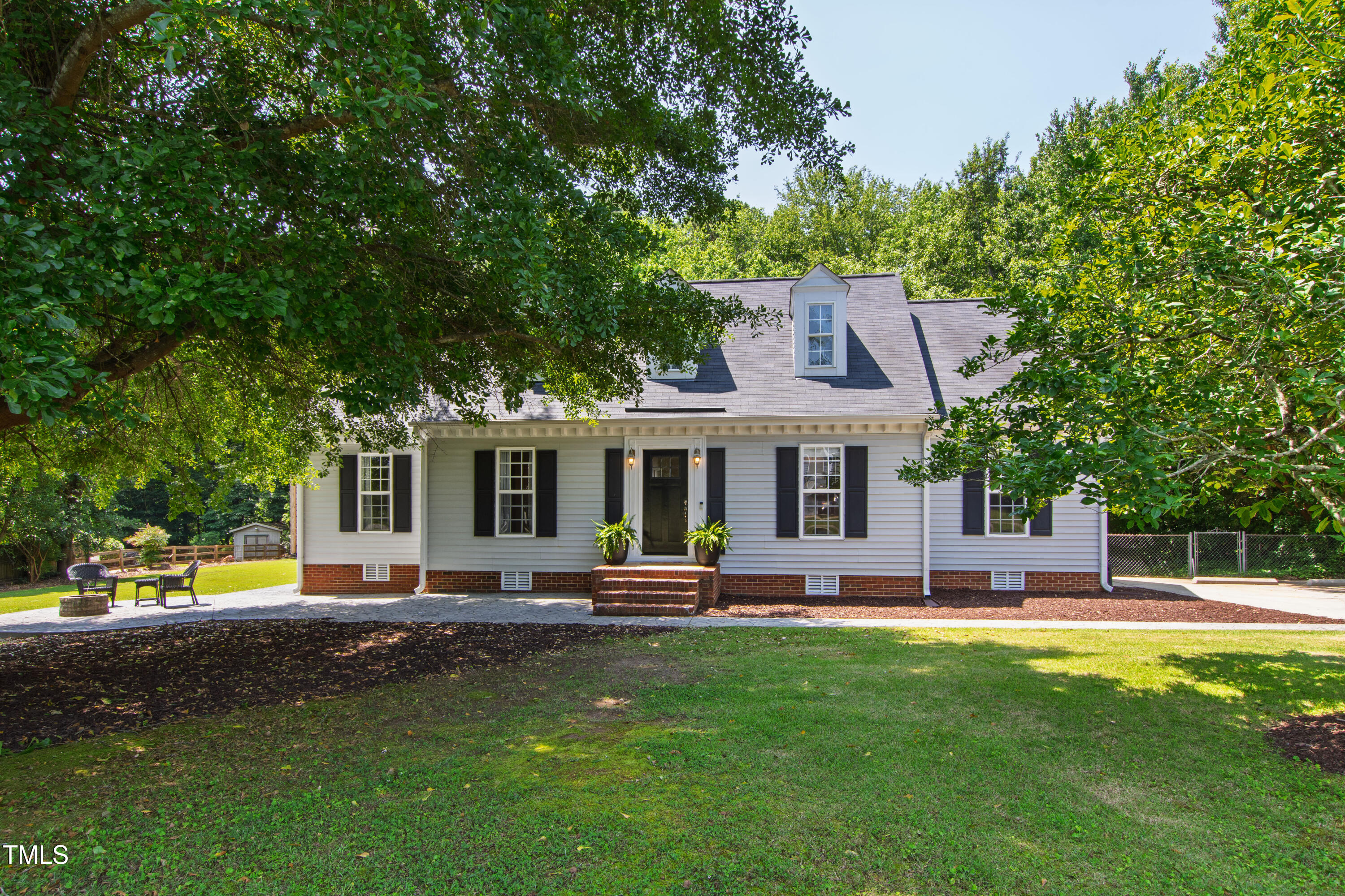 Charming and full of character, this 3-bedroom, 2-bath Cape Cod sits on a beautifully large, flat lot in Apex--offering the benefit of Wake County taxes only. The property extends past the left boundary, providing additional space to spread out, garden, or play. Outdoor living shines here with a fire pit gathering area, a wired storage shed, and a screened porch complete with a custom-built swing--perfect for relaxing evenings or weekend hosting. The private deck off the primary suite is ideal for enjoying your morning coffee, and motorized blackout shades add a thoughtful touch of comfort.